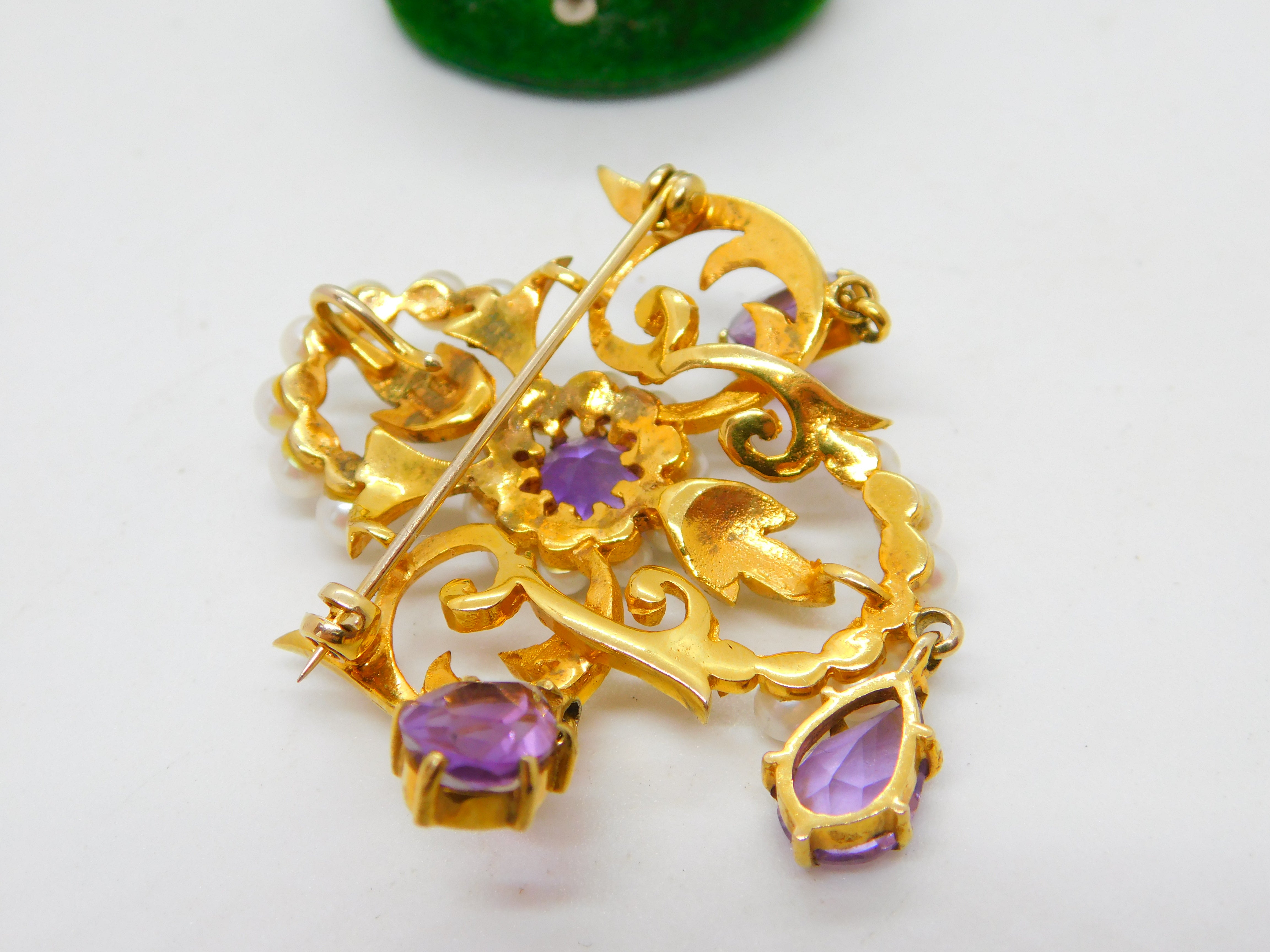 9ct Yellow Gold, Amethyst & Pearl Large Lavalier Drop Pendant Vintage 1971 London