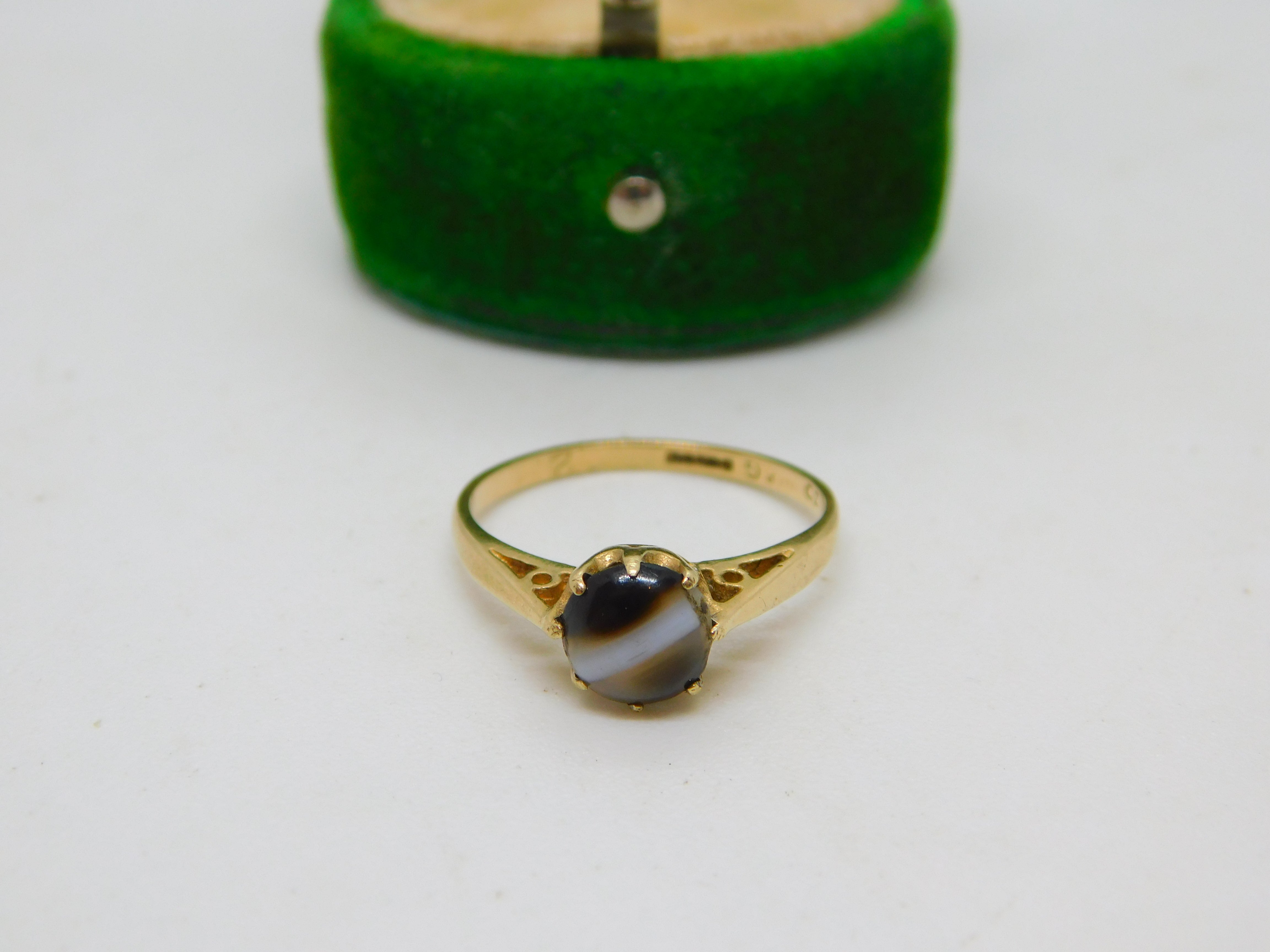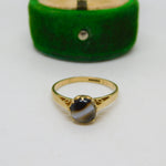 9ct Yellow Gold & Banded Agate Dress Ring Vintage 1983 Birmingham
