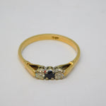 9ct Yellow Gold, Brilliant Cut Diamond & Sapphire Dress Ring Vintage c1970