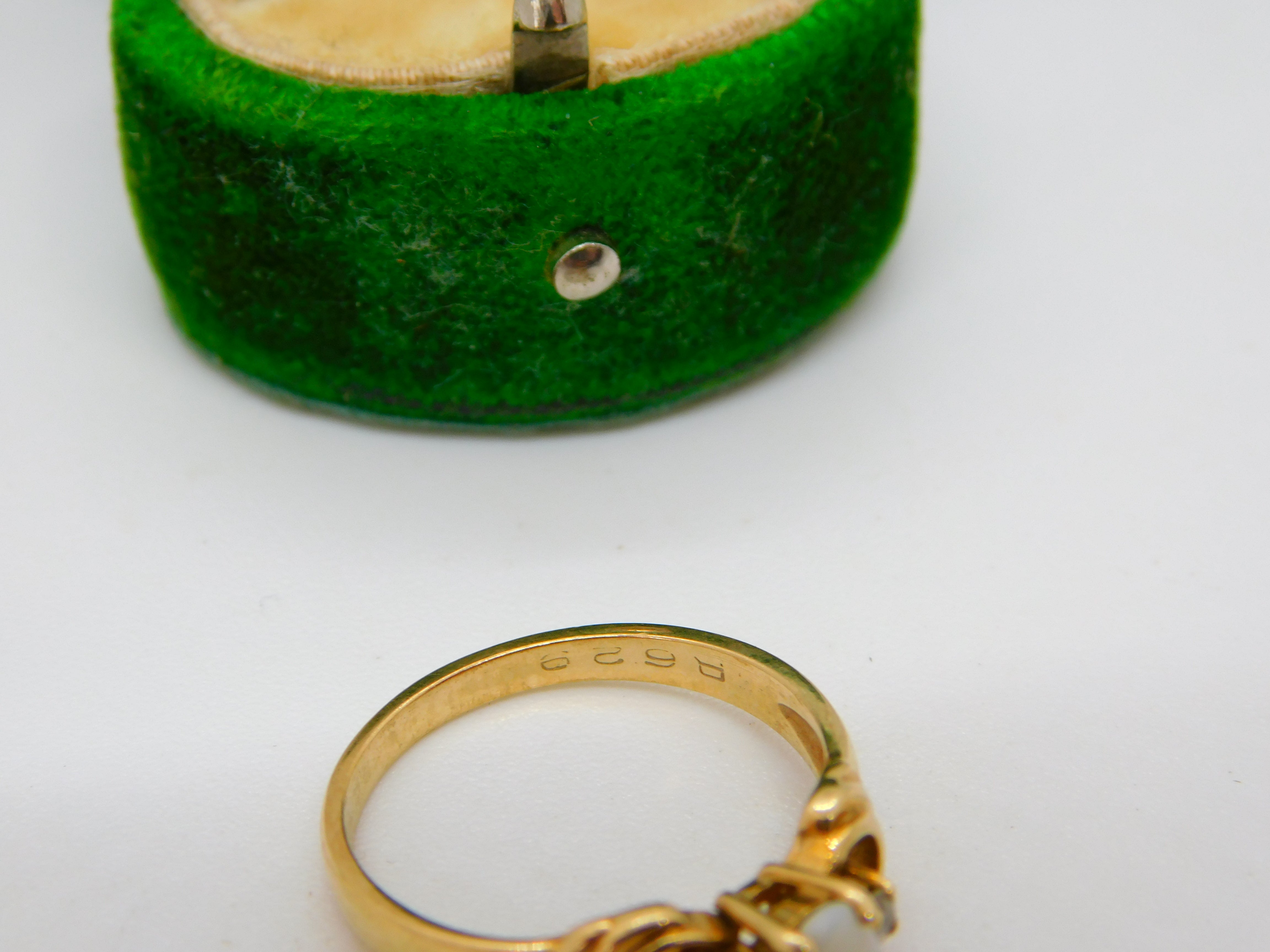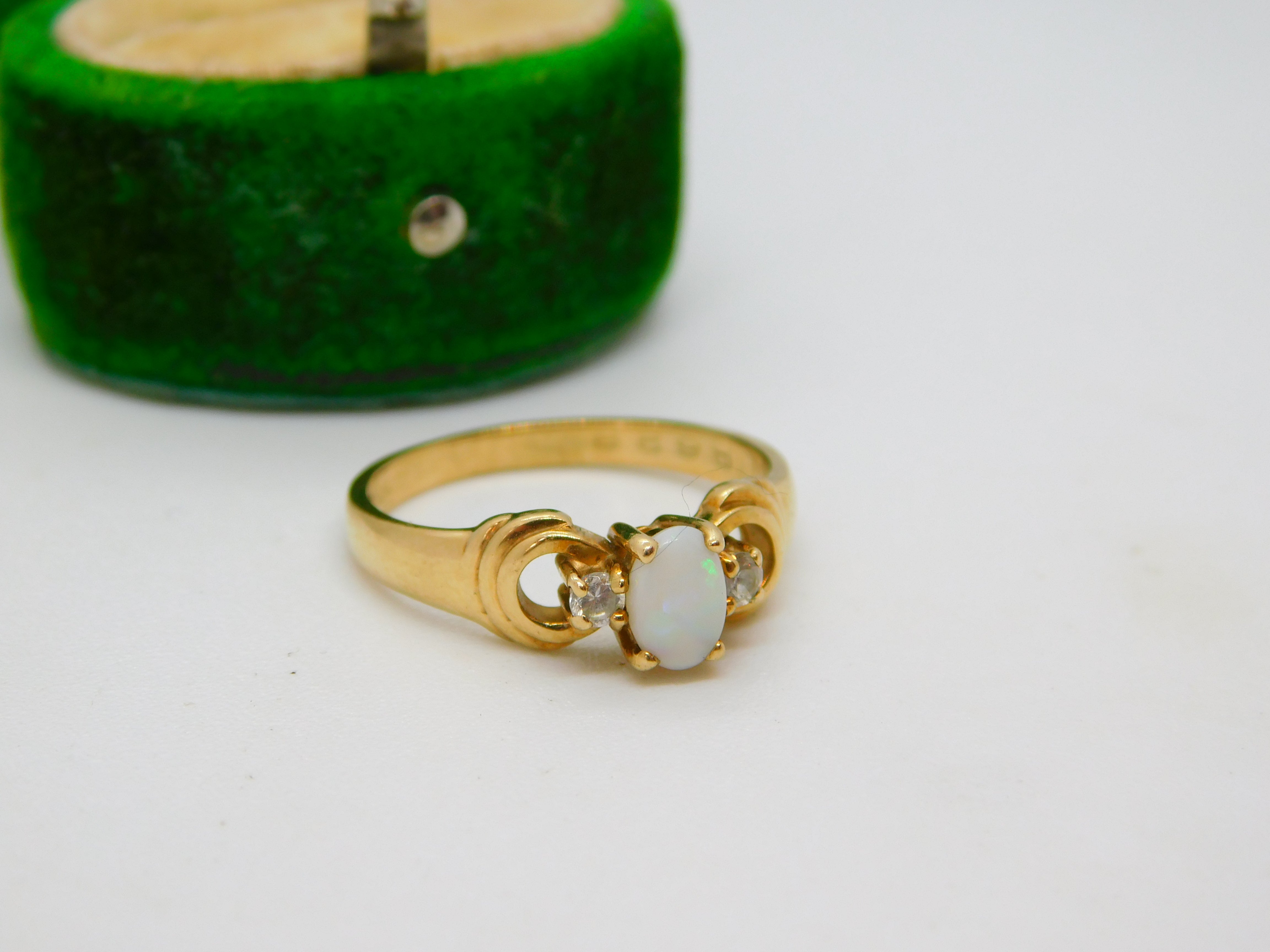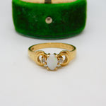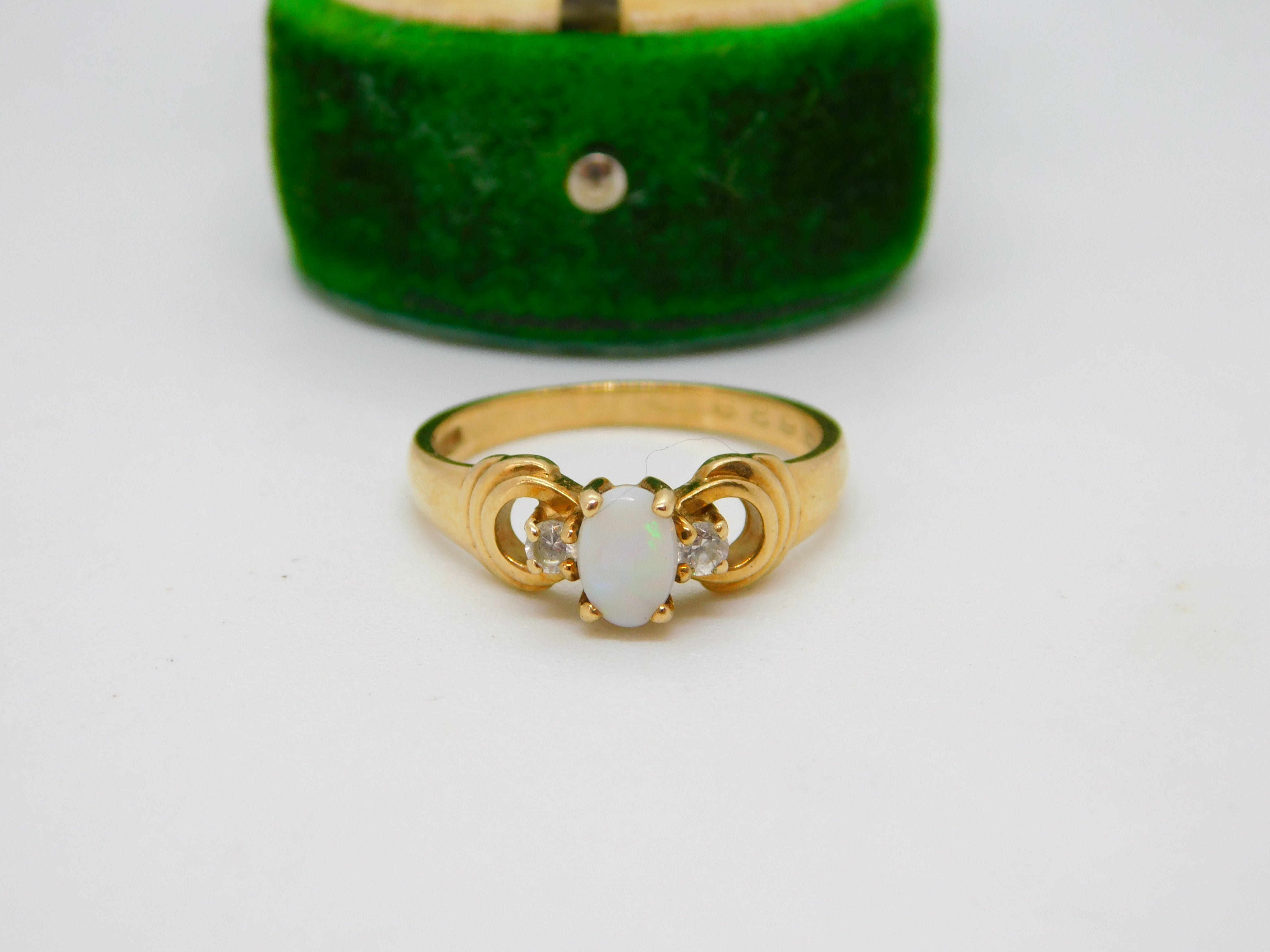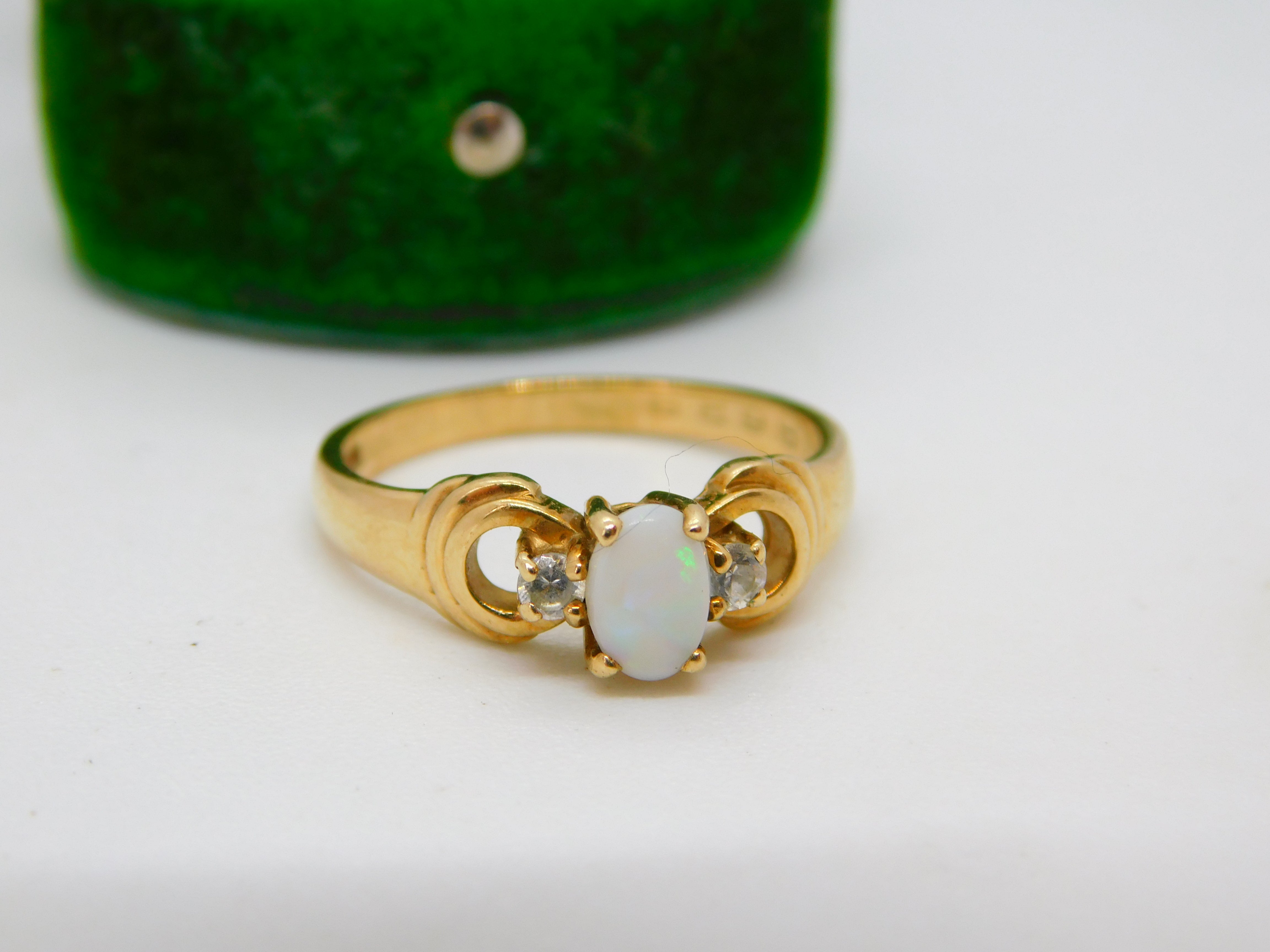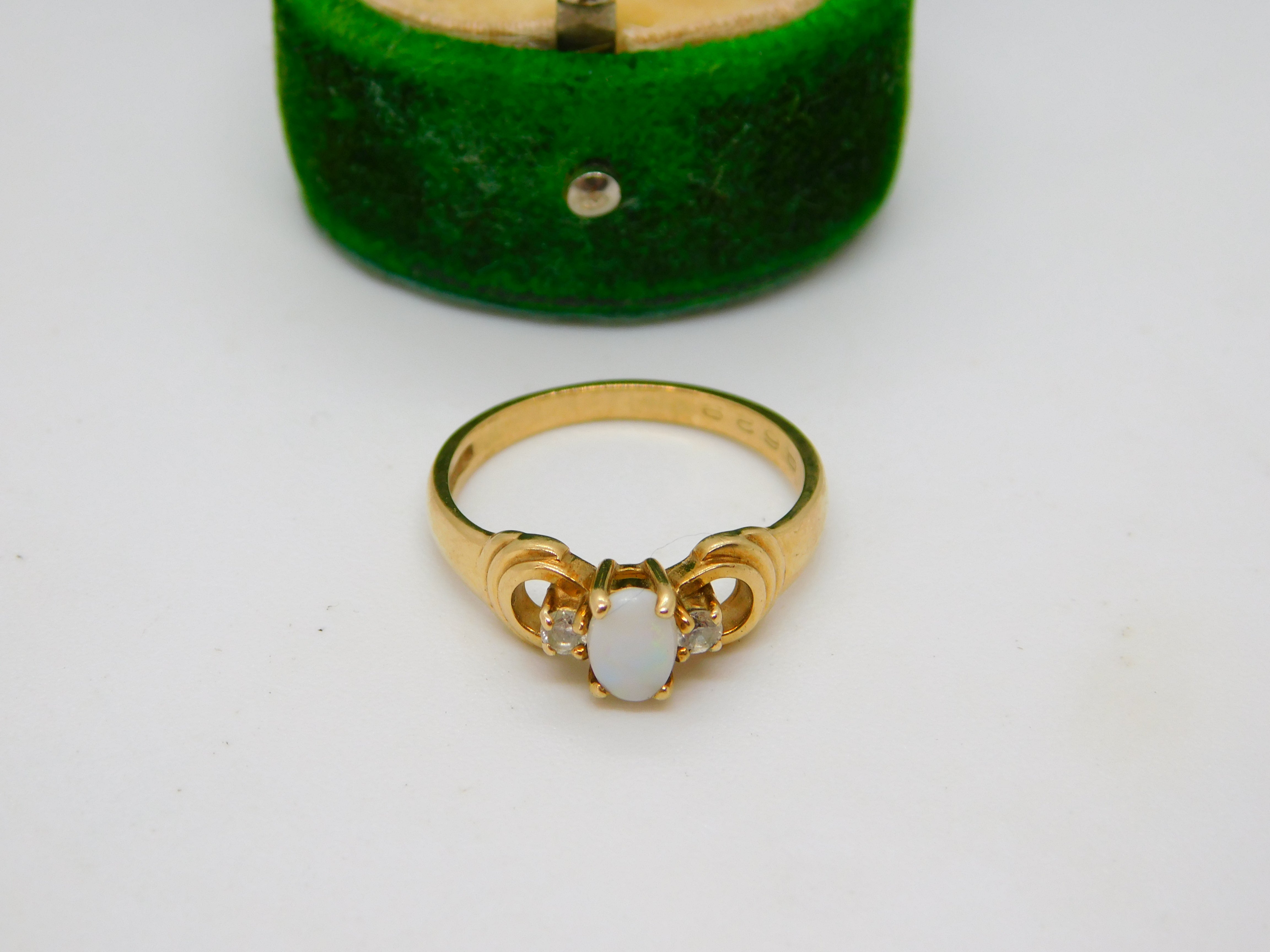 9ct Yellow Gold Cabochon Opal & Spinel Set Dress Ring Vintage 1995 Sheffield
