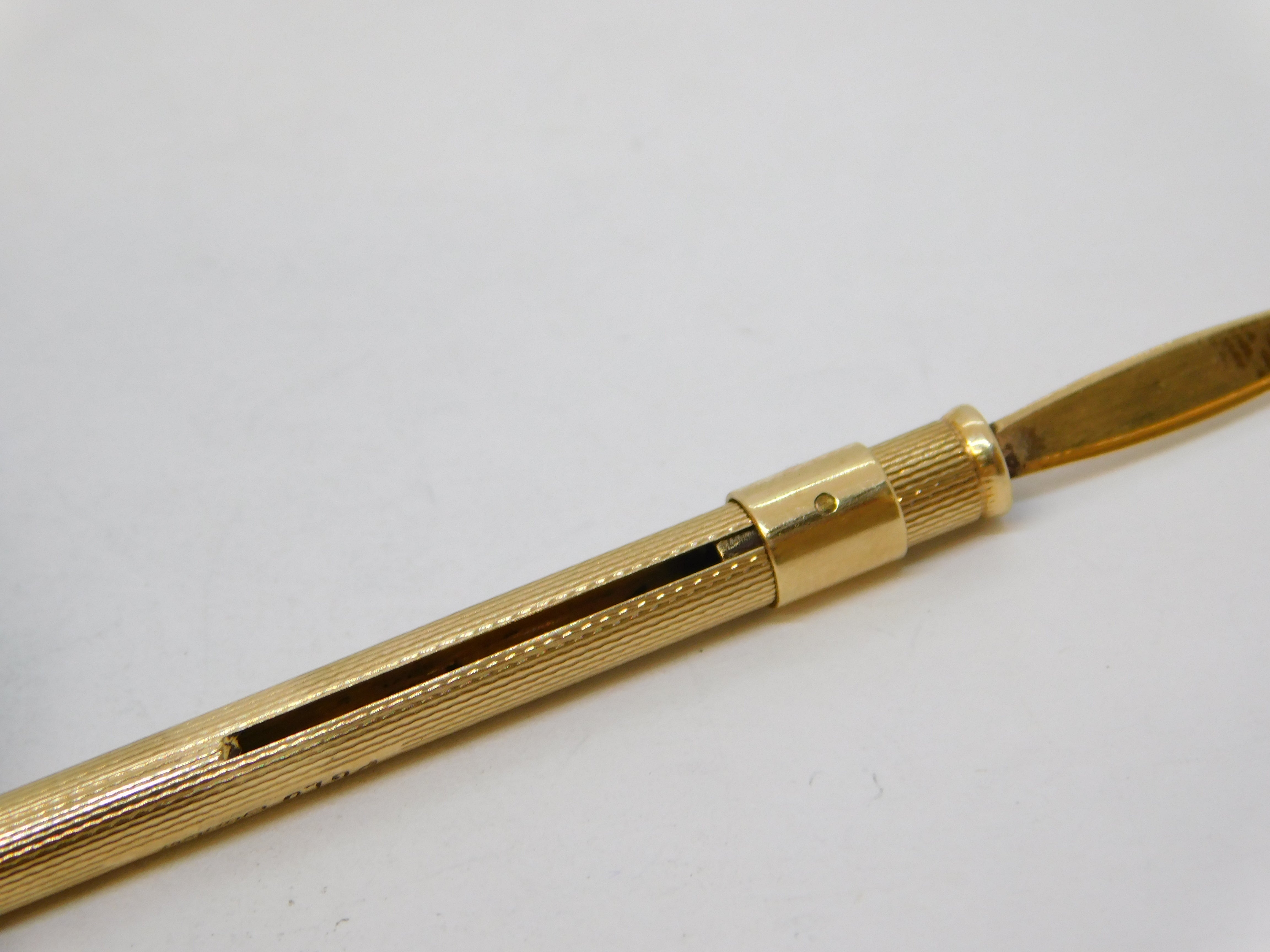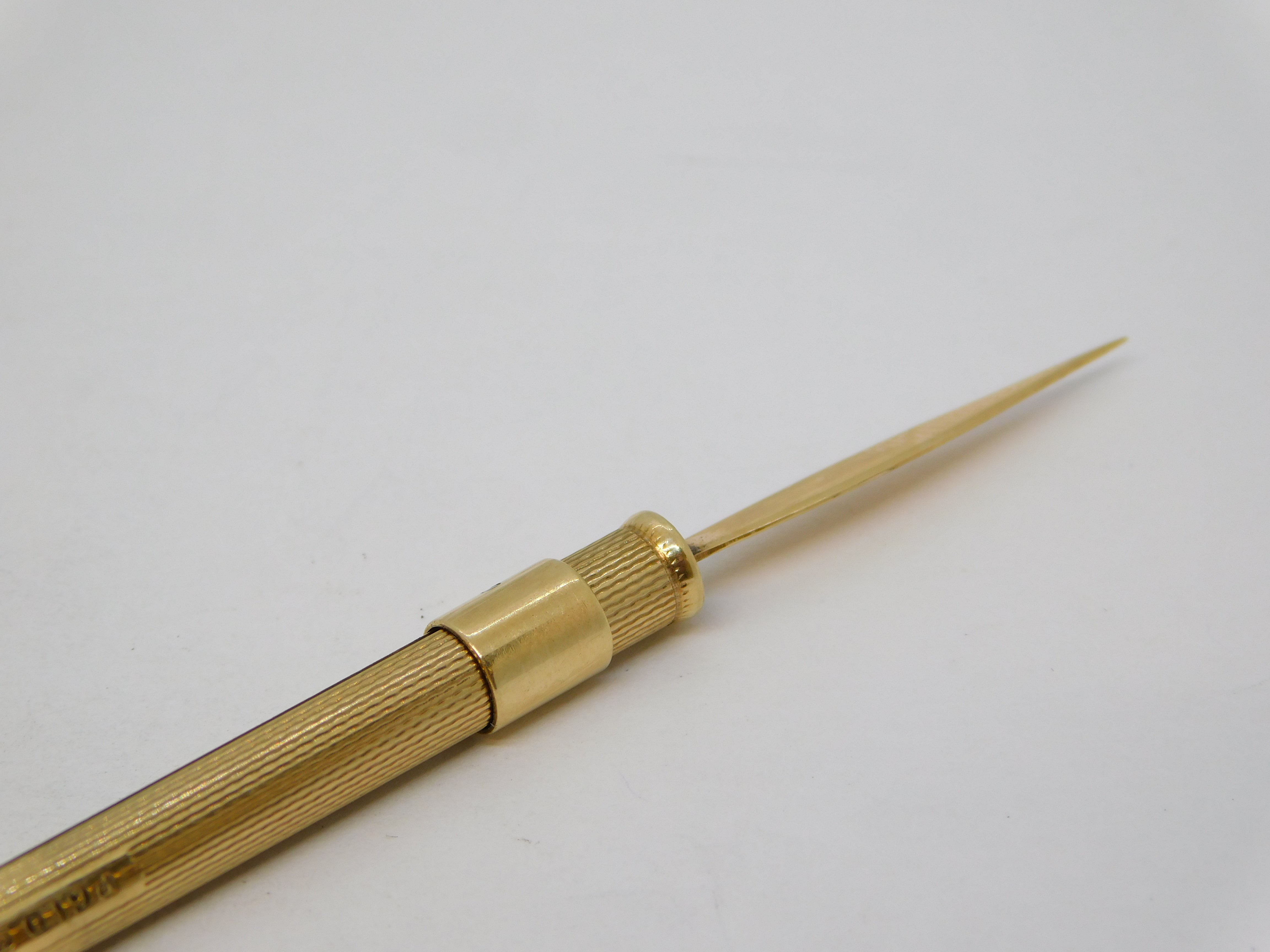 9ct Yellow Gold Engine Turned Propelling Toothpick Vintage 1975 Birmingham
