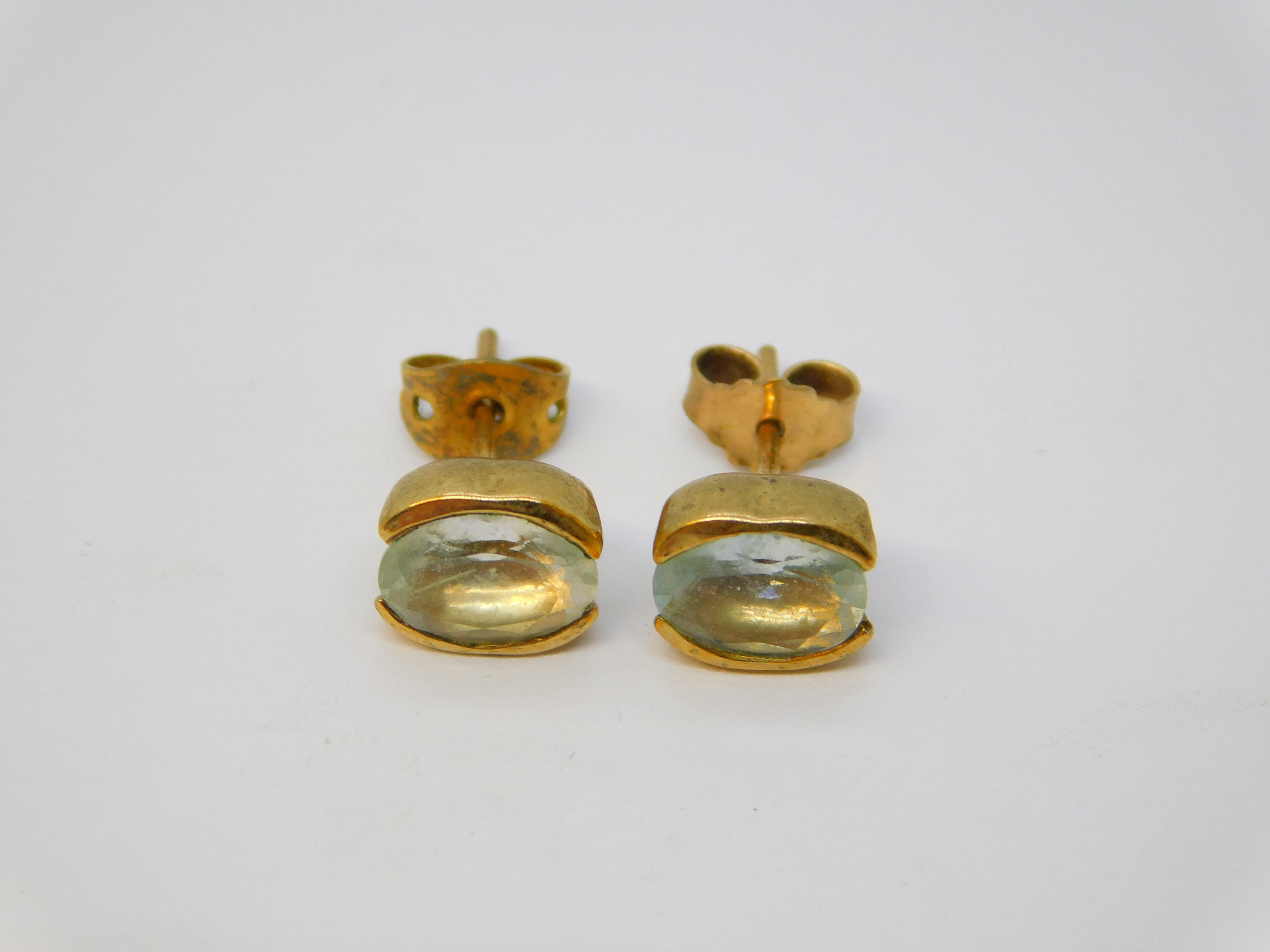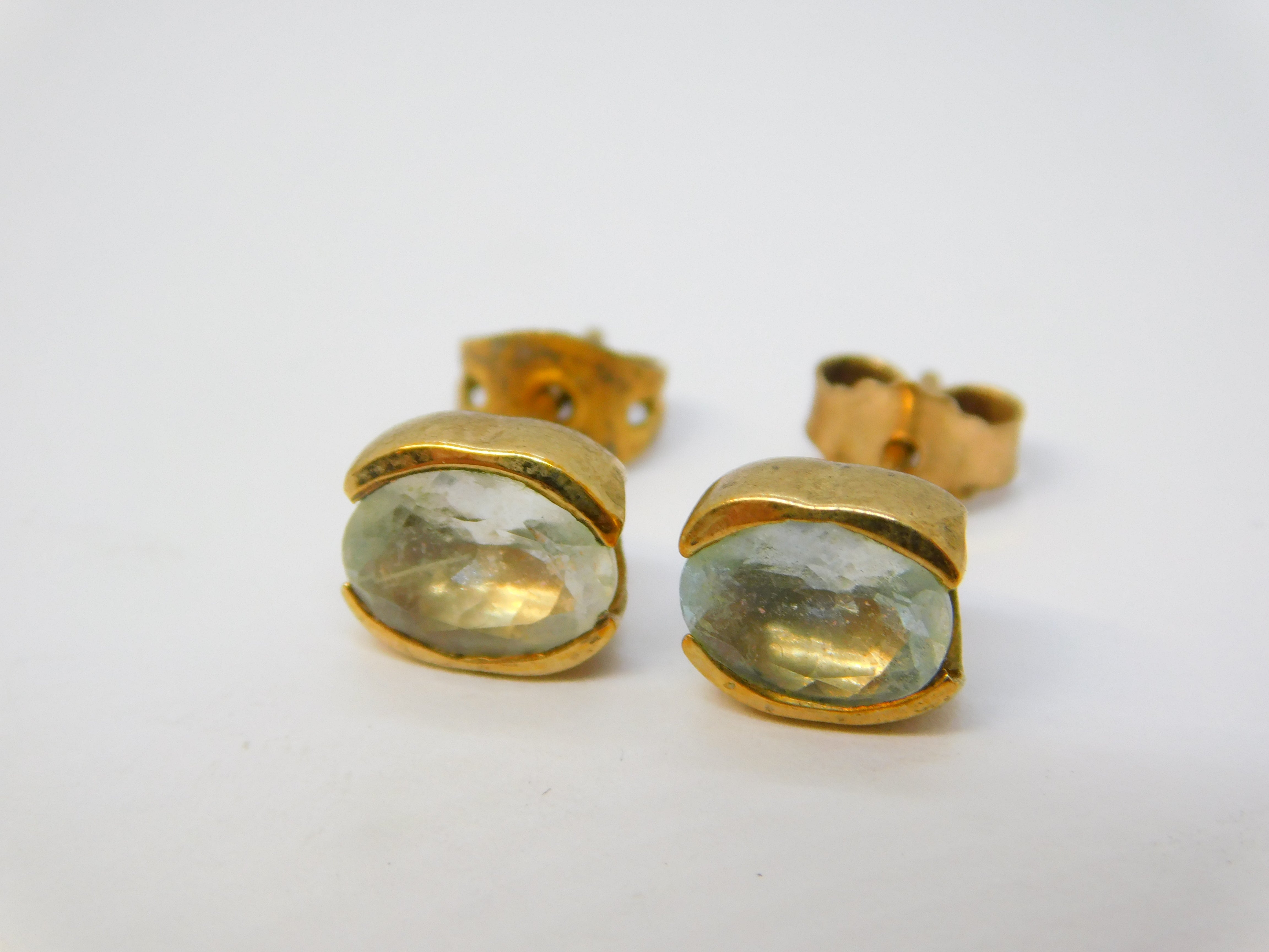 9ct Yellow Gold Faceted Pale-Blue Topaz Stud Earrings Vintage 2010 Birmingham