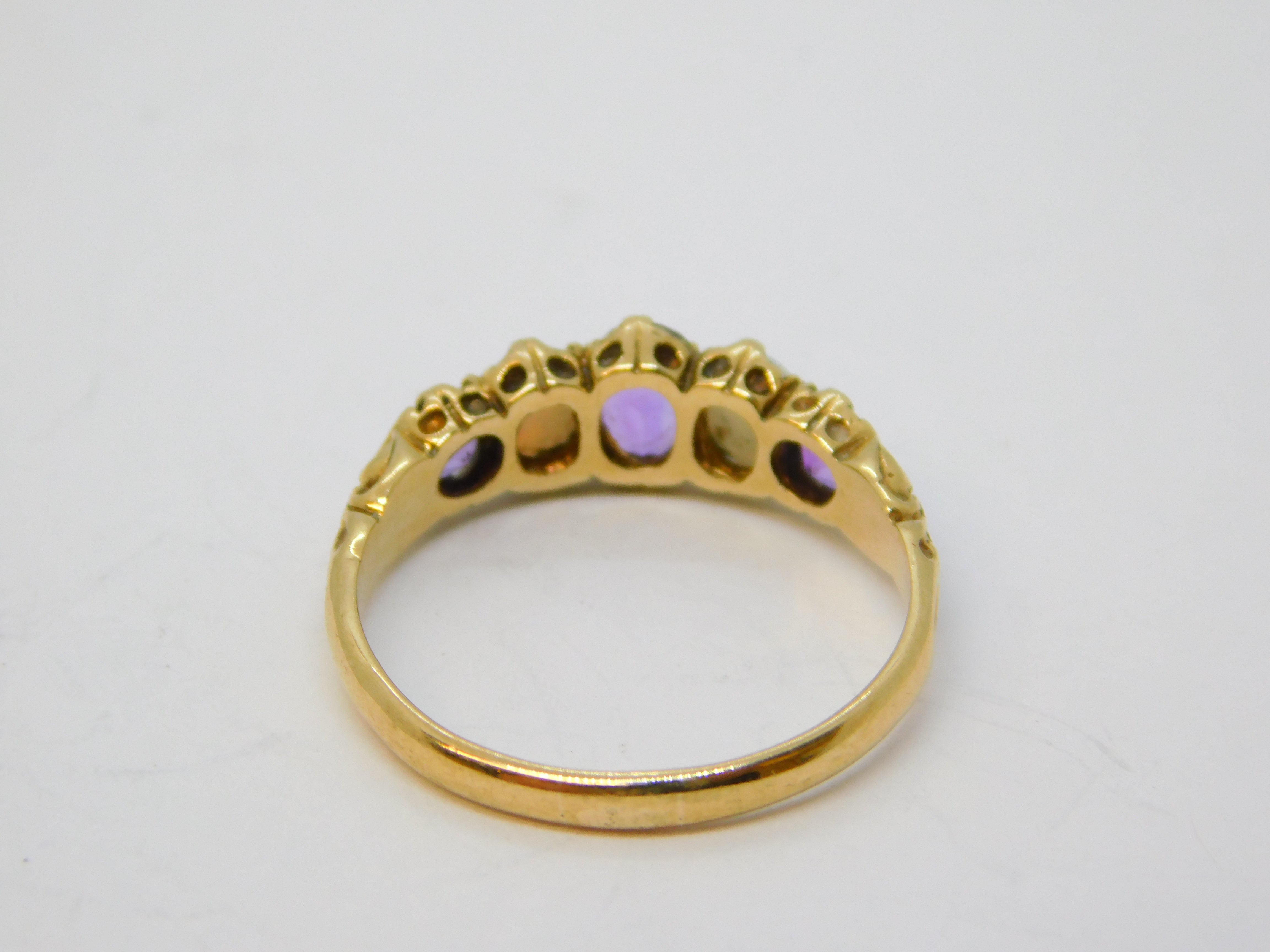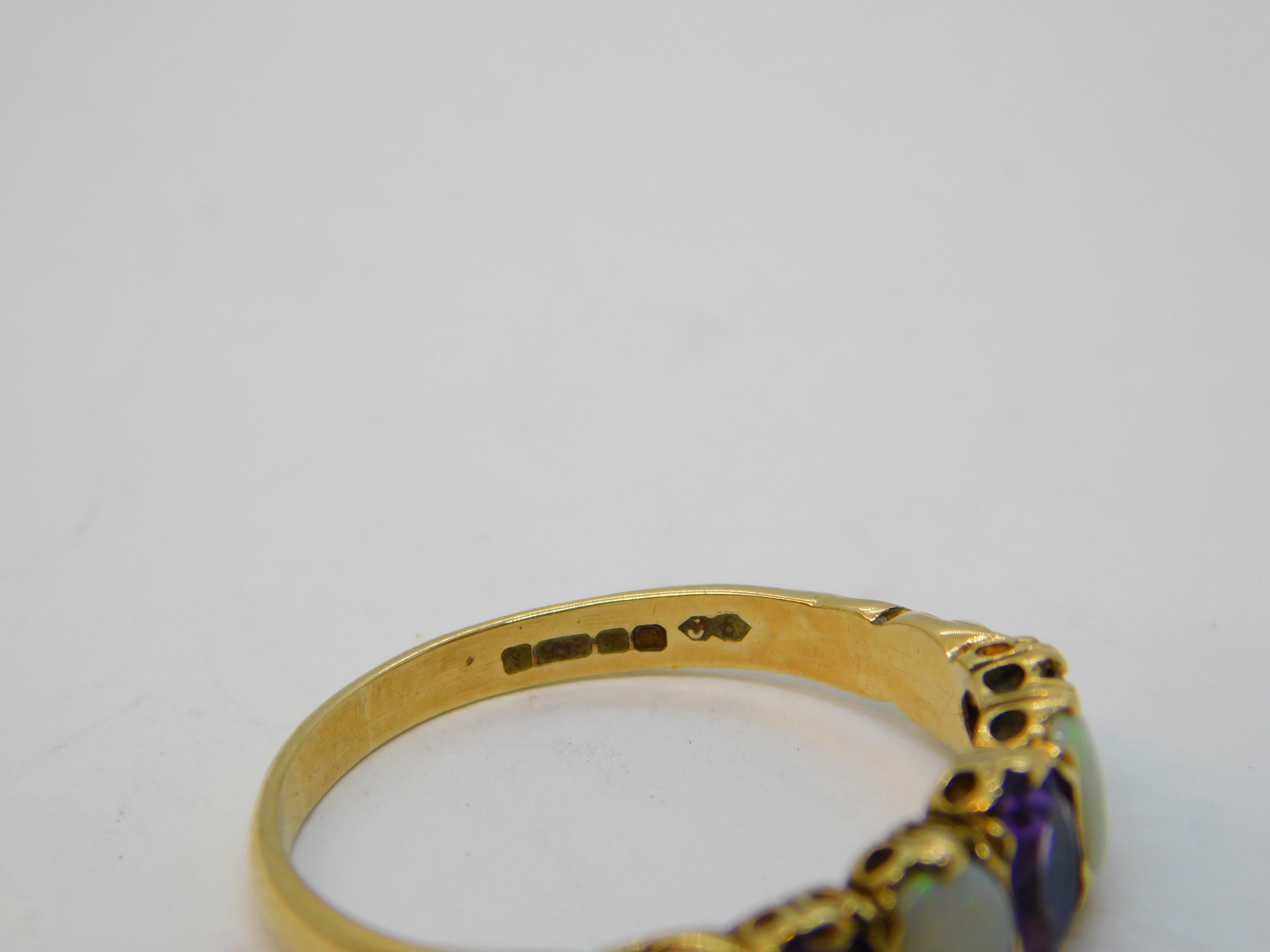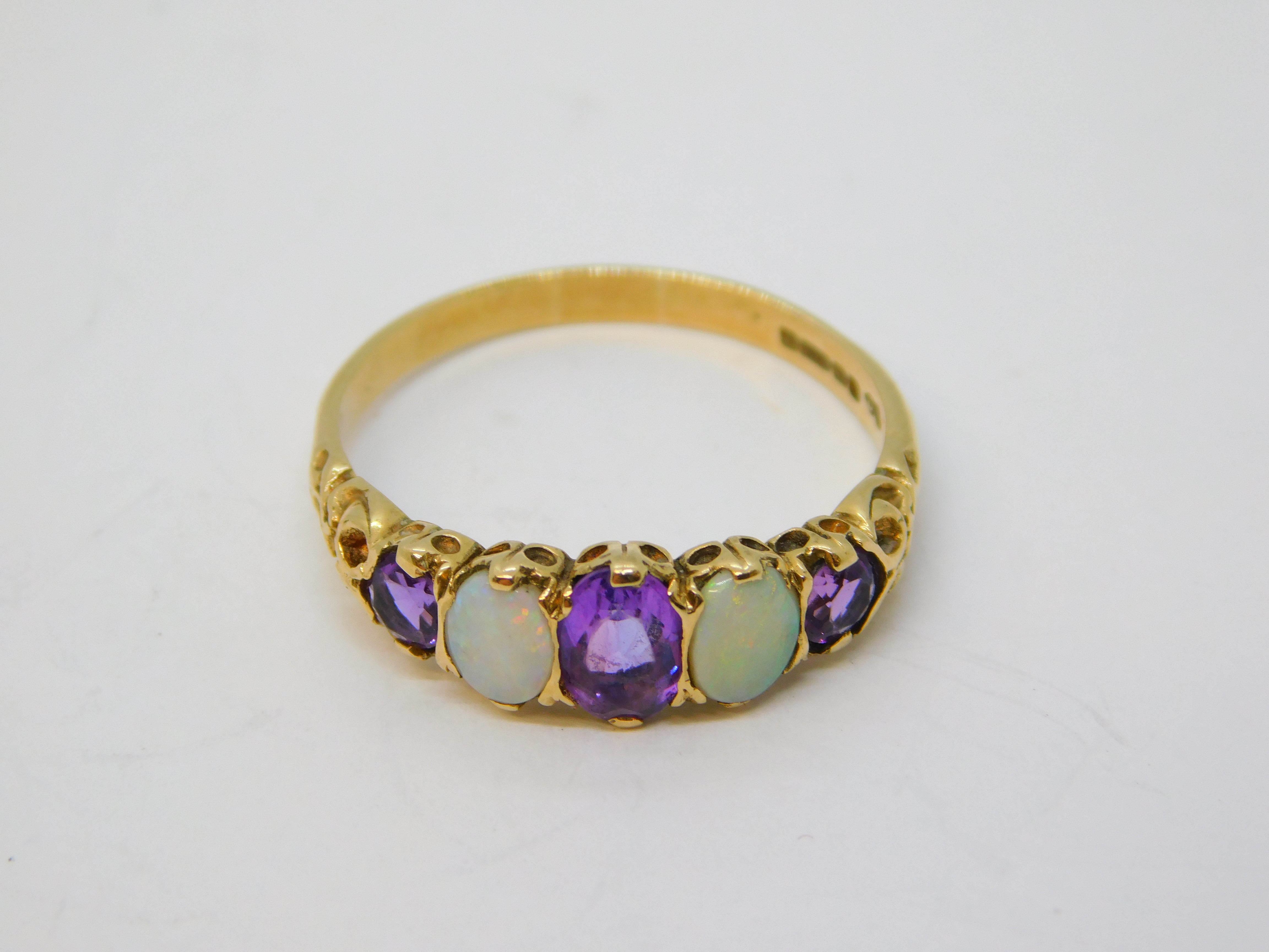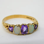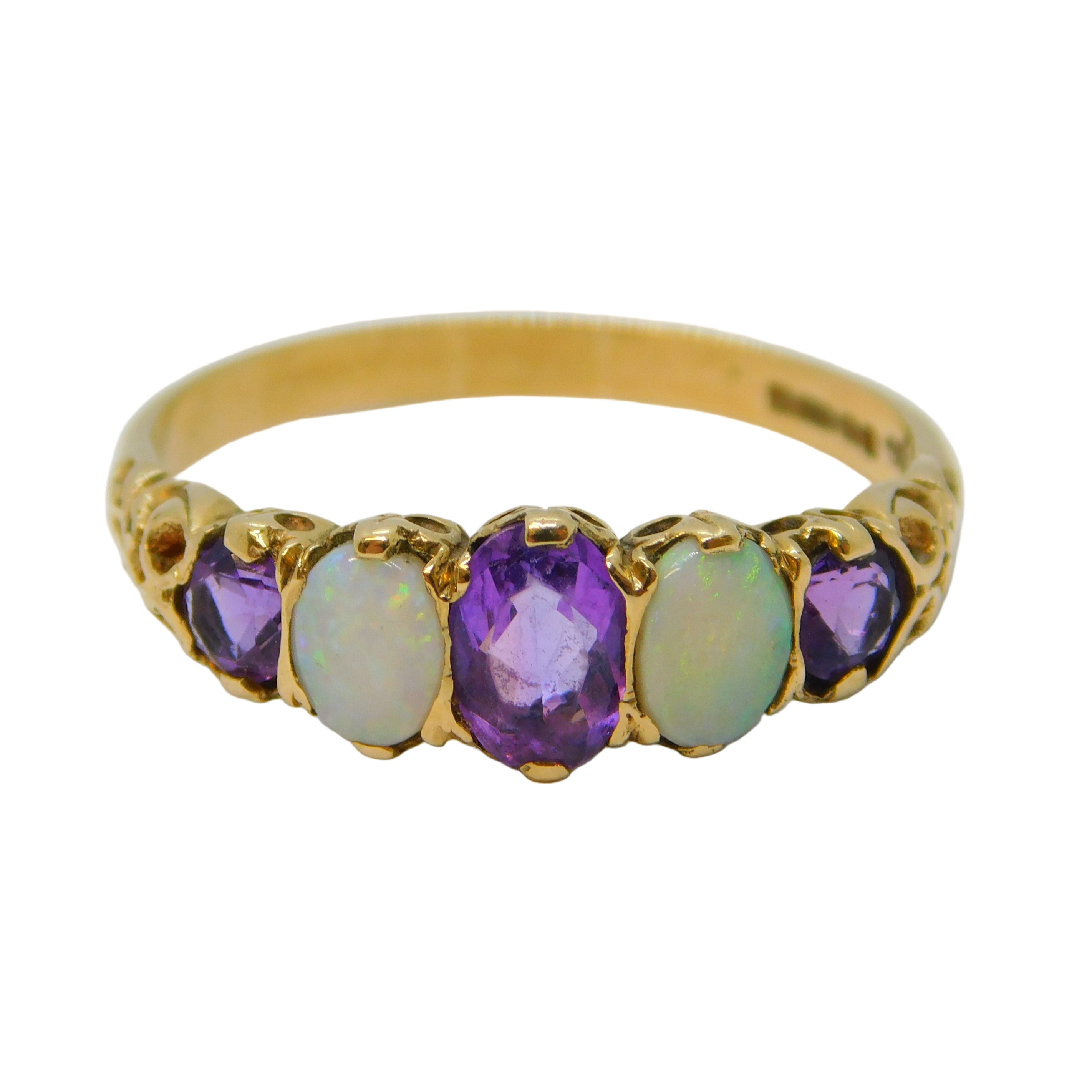 9ct Yellow Gold Graduating Amethyst & Opal Boat Ring Vintage 1993 Sheffield