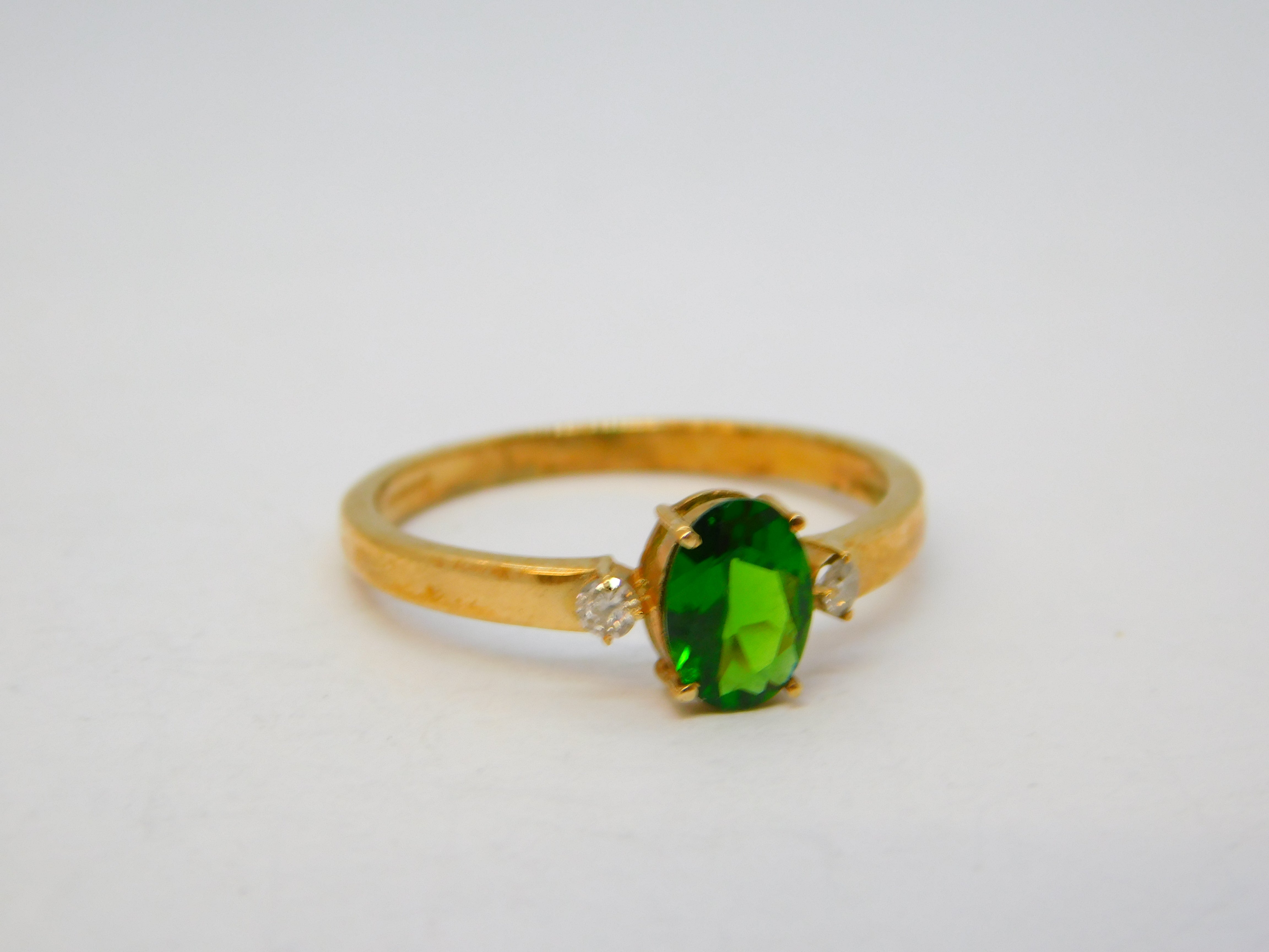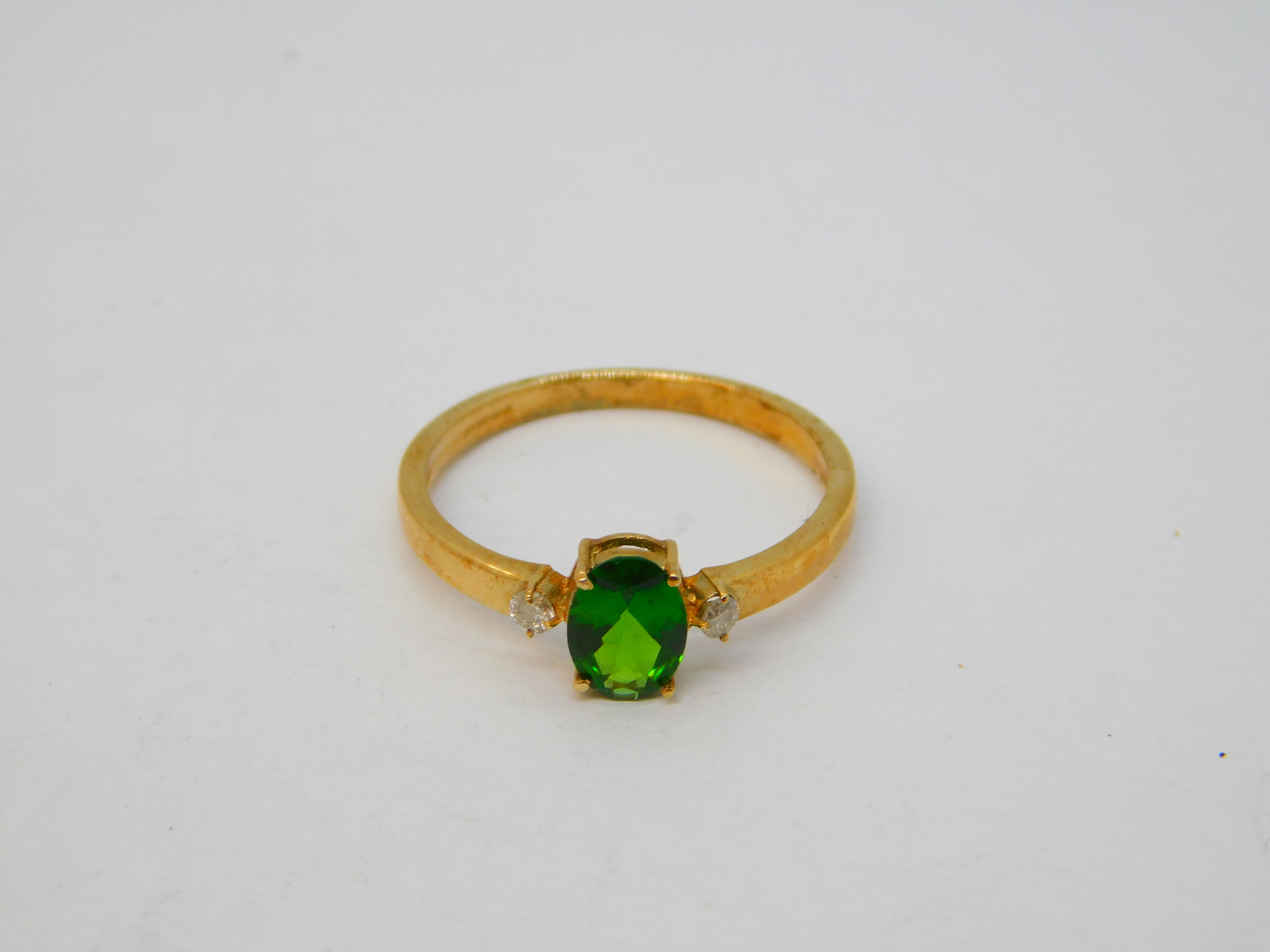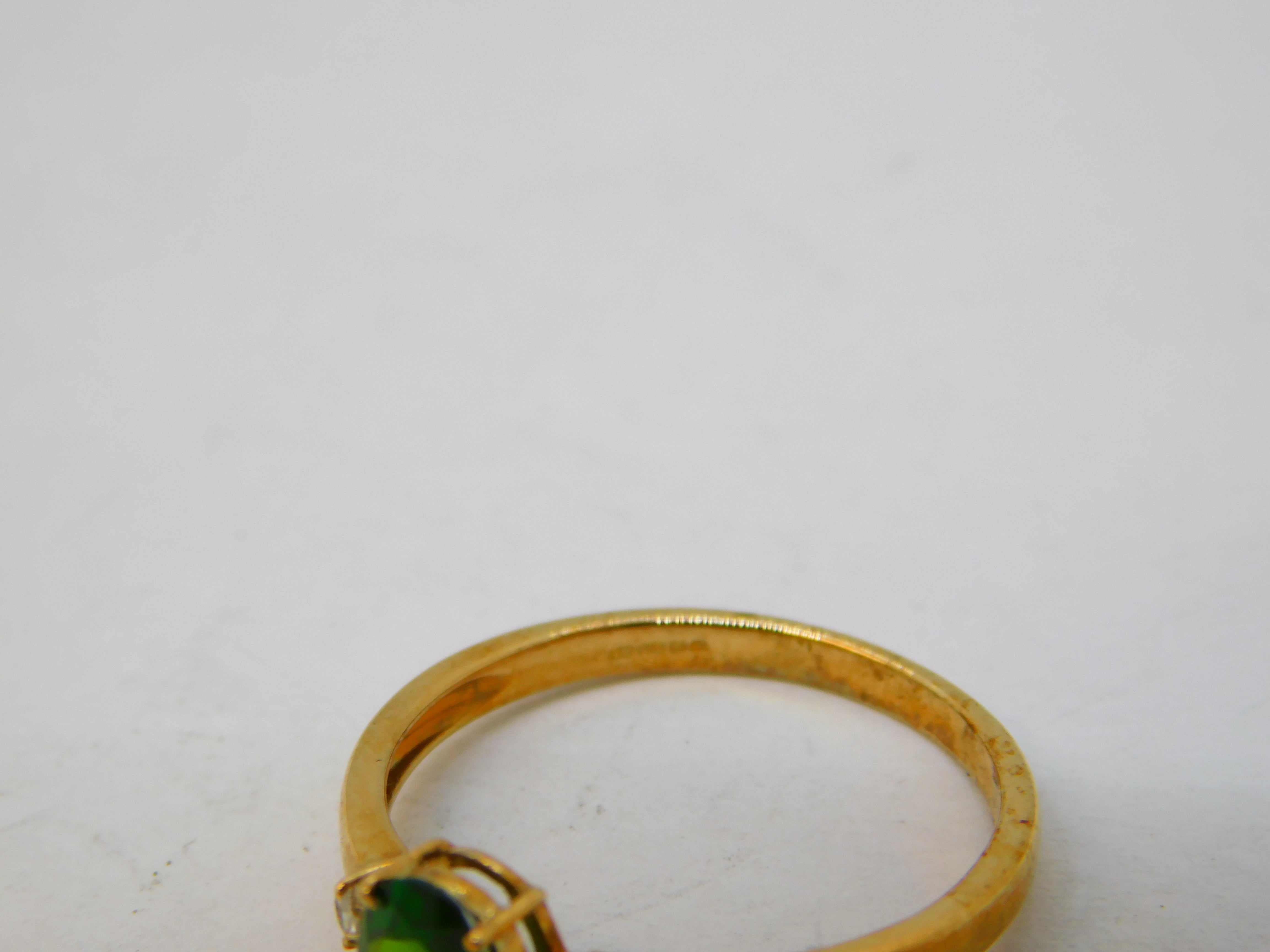 9ct Yellow Gold, Green Topaz & White Sapphire Dress Ring Vintage 2010 Birmingham