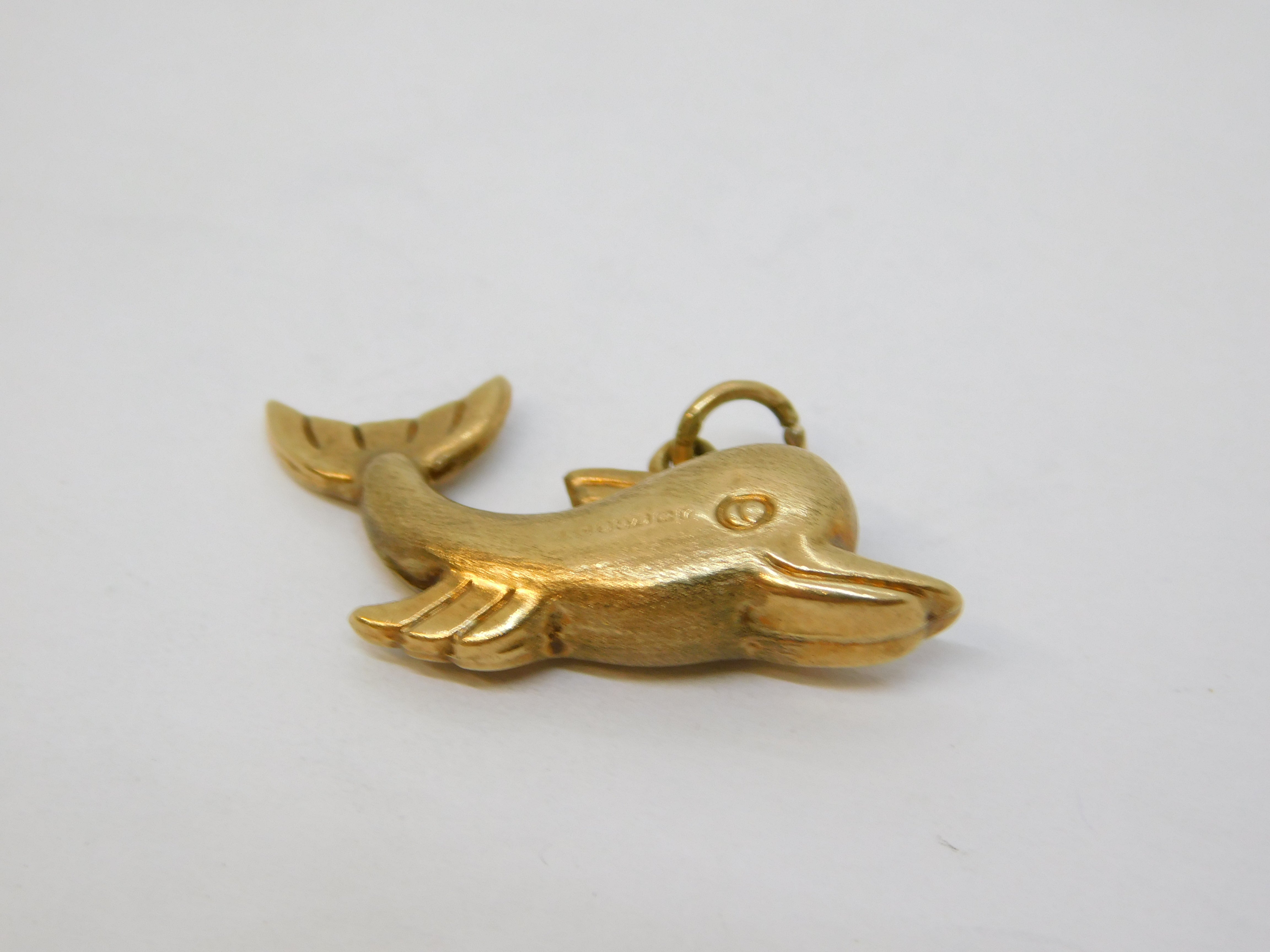 9ct Yellow Gold Happy Dolphin Charm Pendant Vintage 1973 Birmingham
