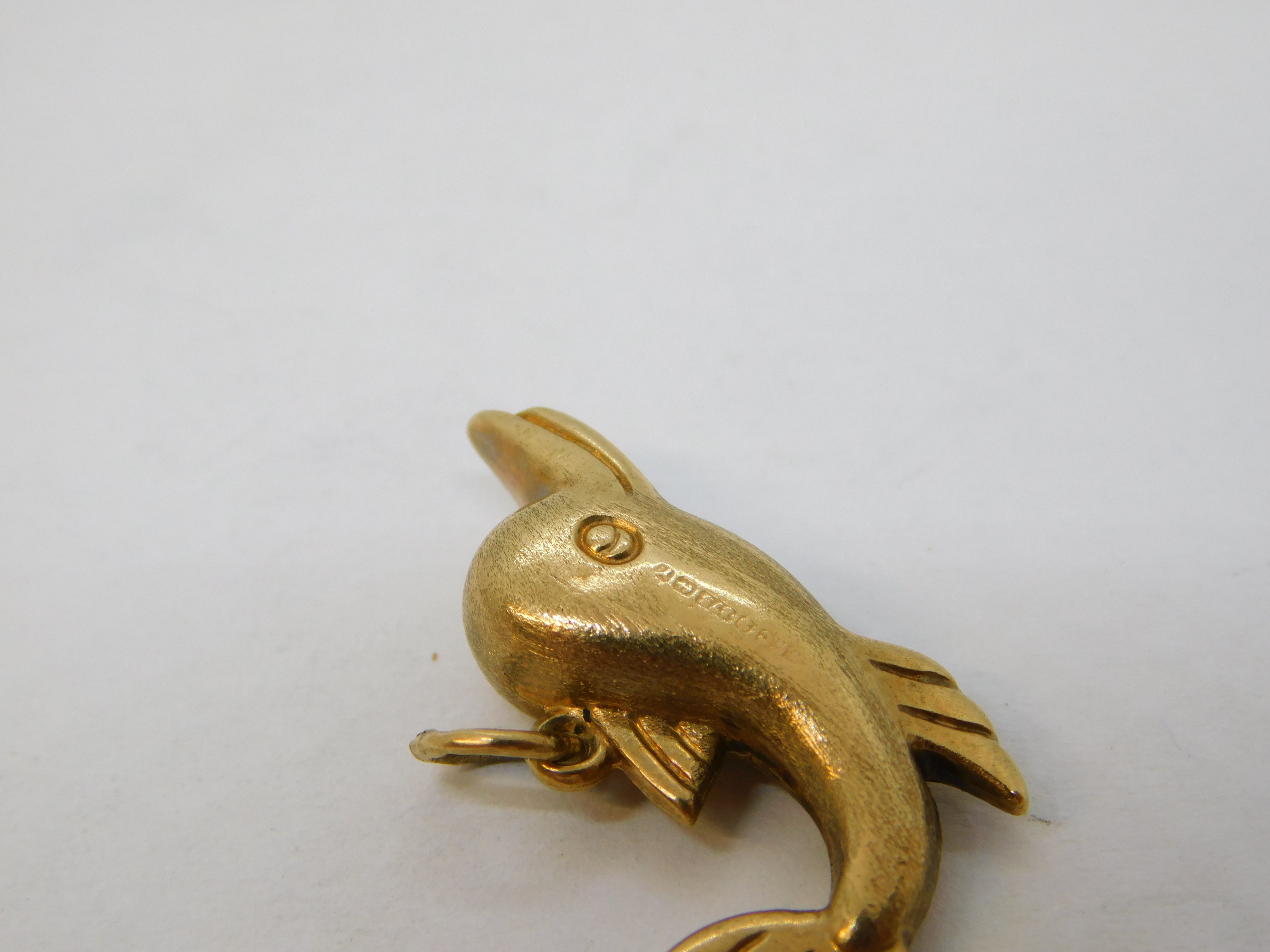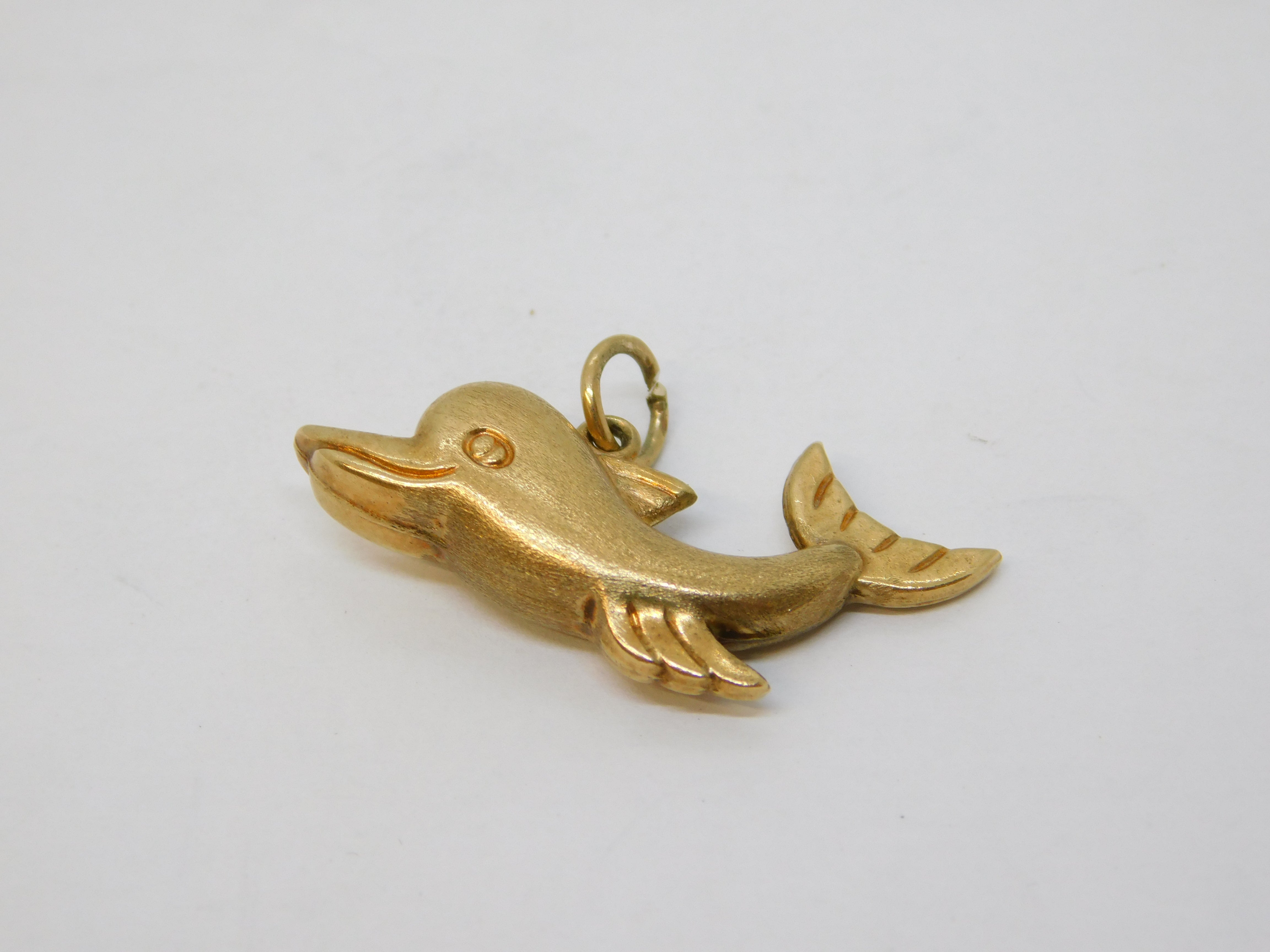 Details: A fantastic and wonderfully designed vintage 9ct yellow gold happy dolphin charm pendant with lovely detailing hallmarked Birmingham 1973 to the edge. This is a wonderful item that would make a perfect gift or addition to any collection.