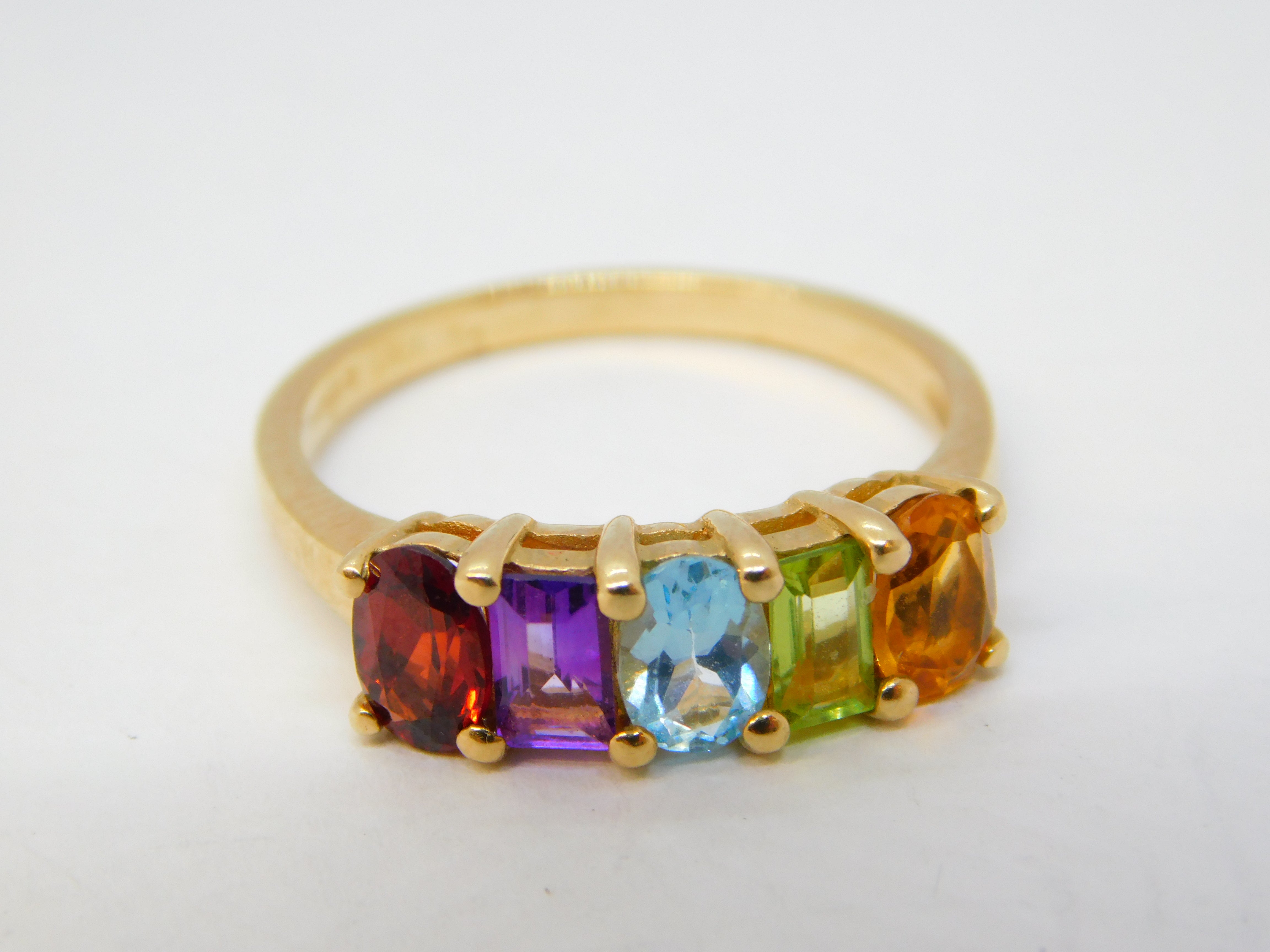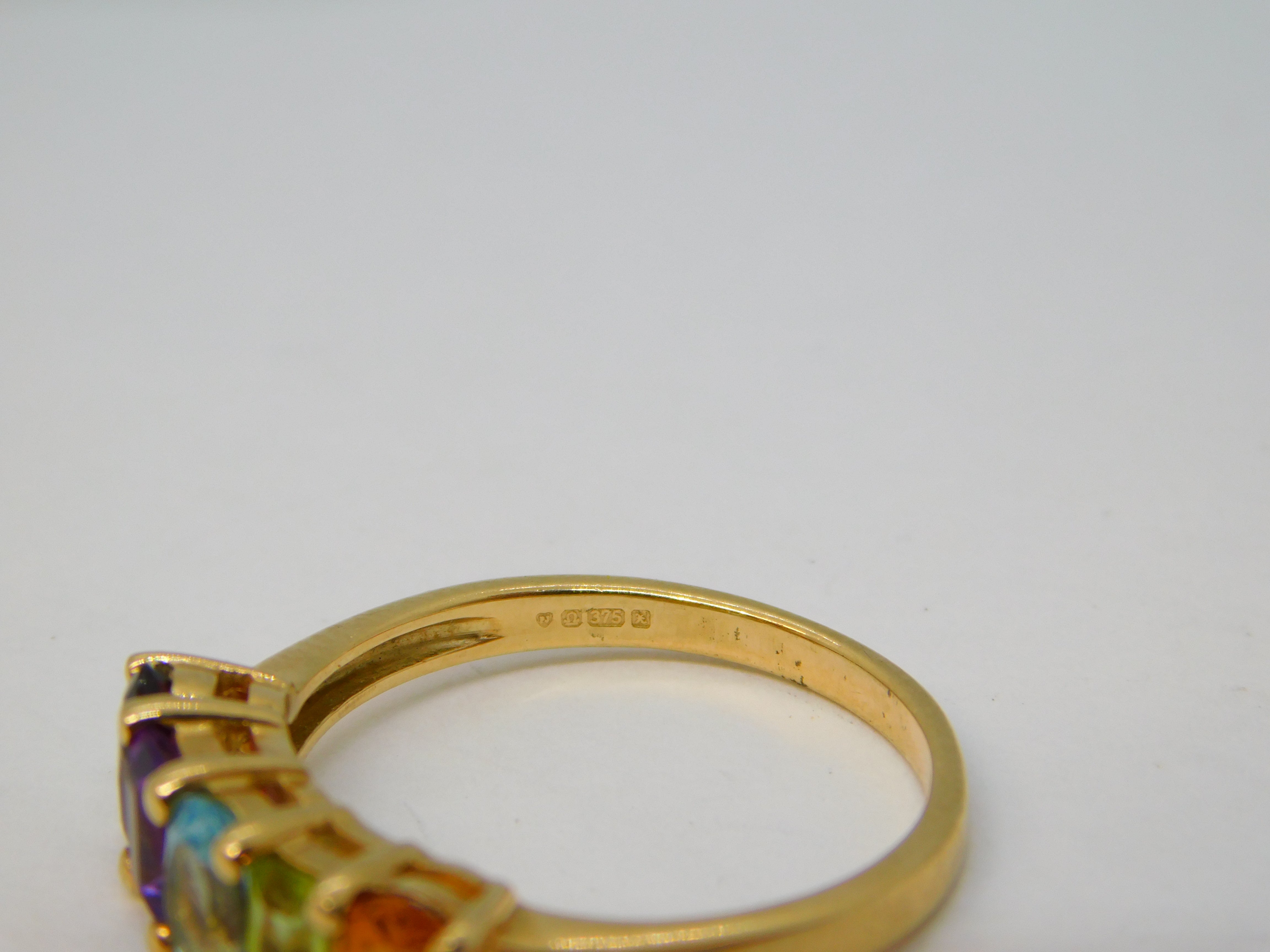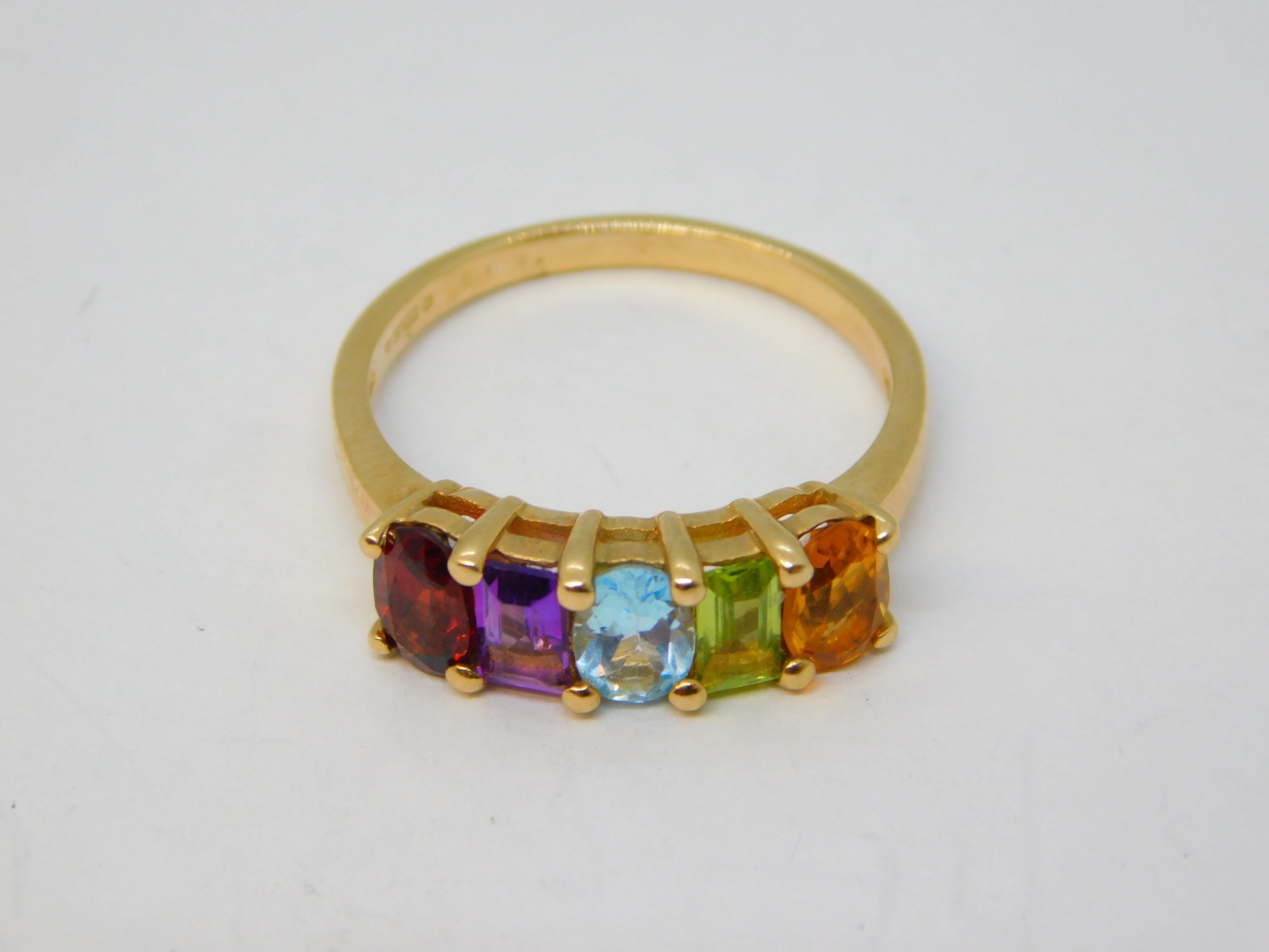 9ct Yellow Gold & Multi-Gem Set Dress Ring Vintage 1997 Birmingham