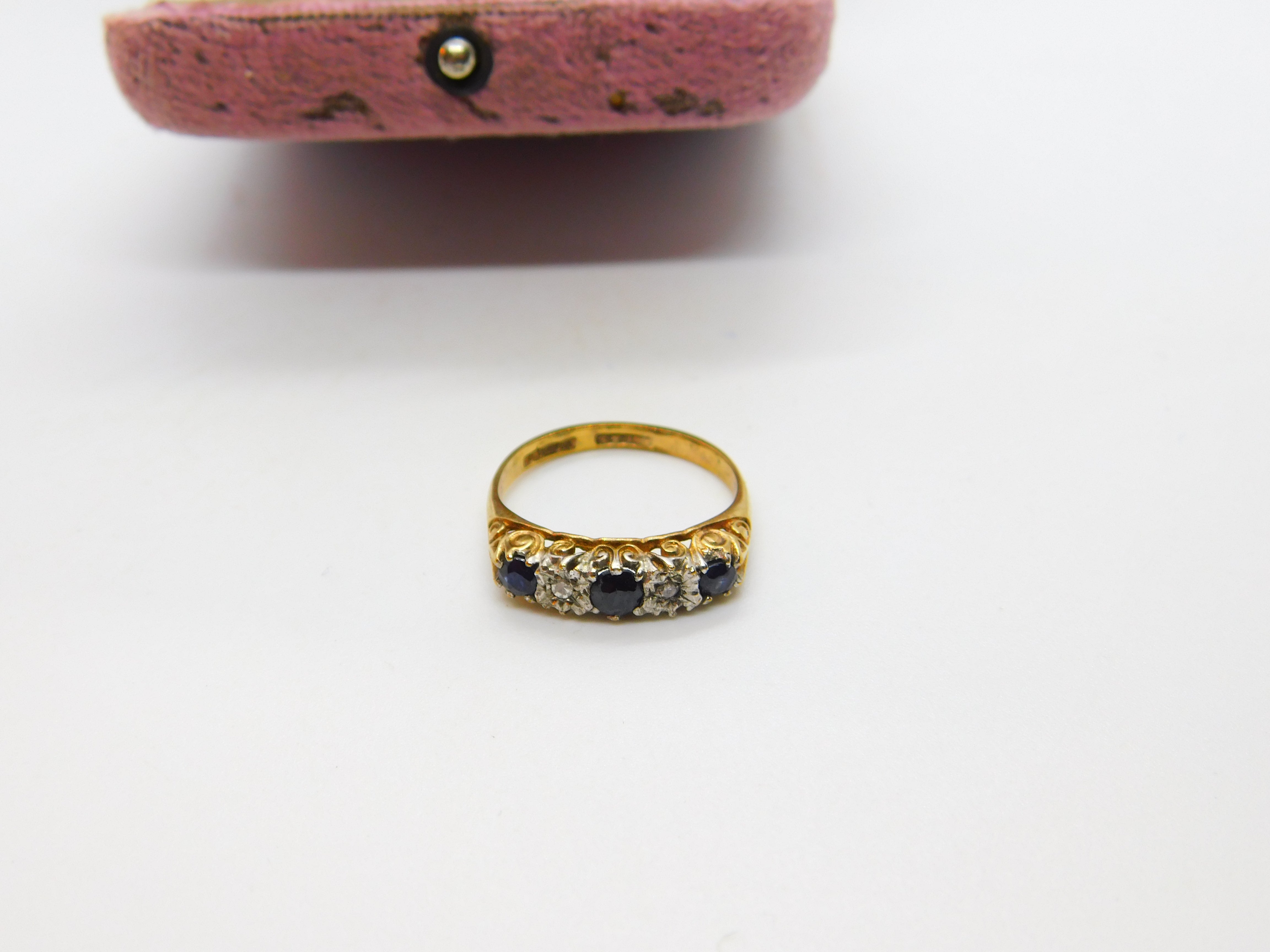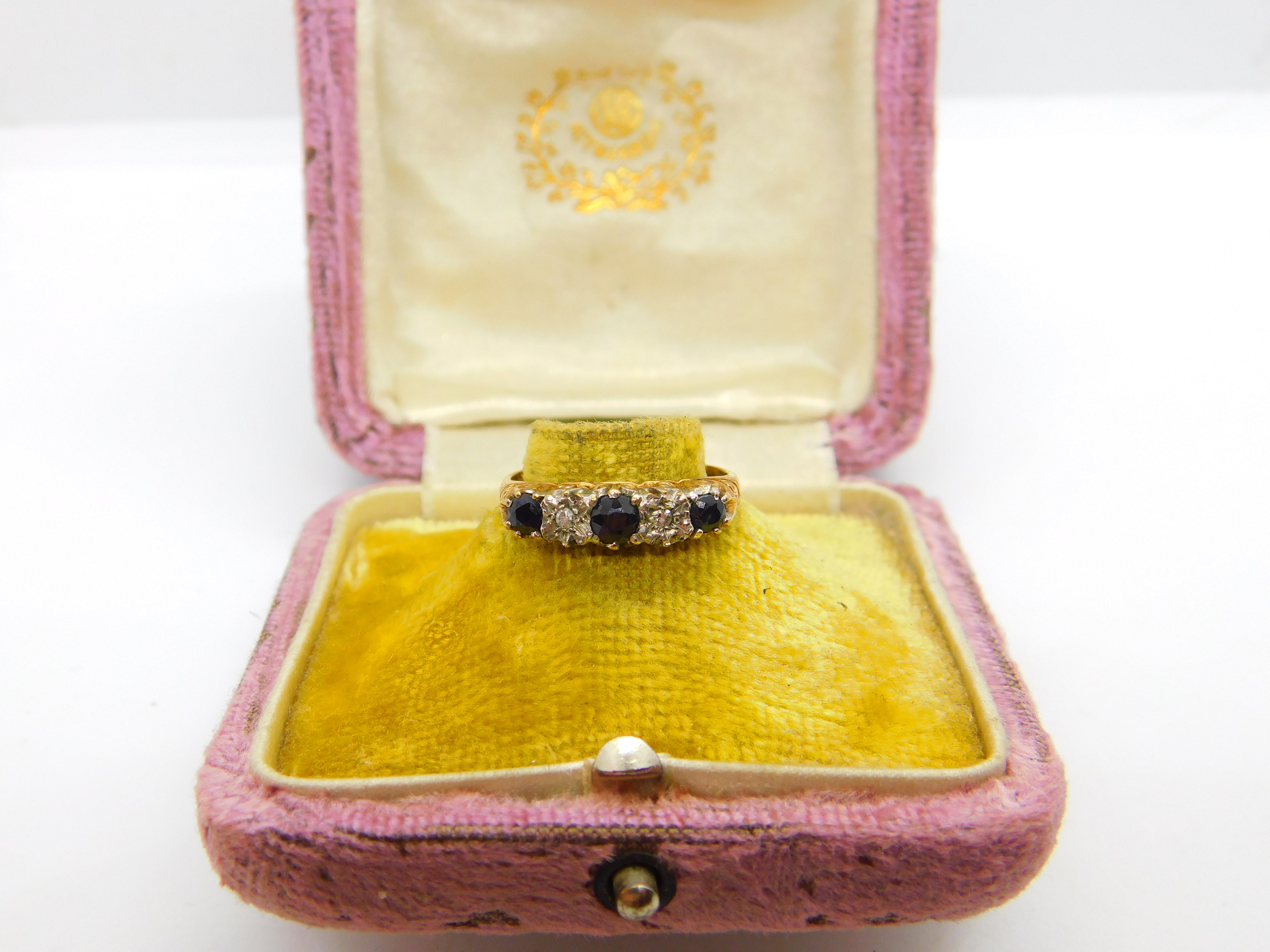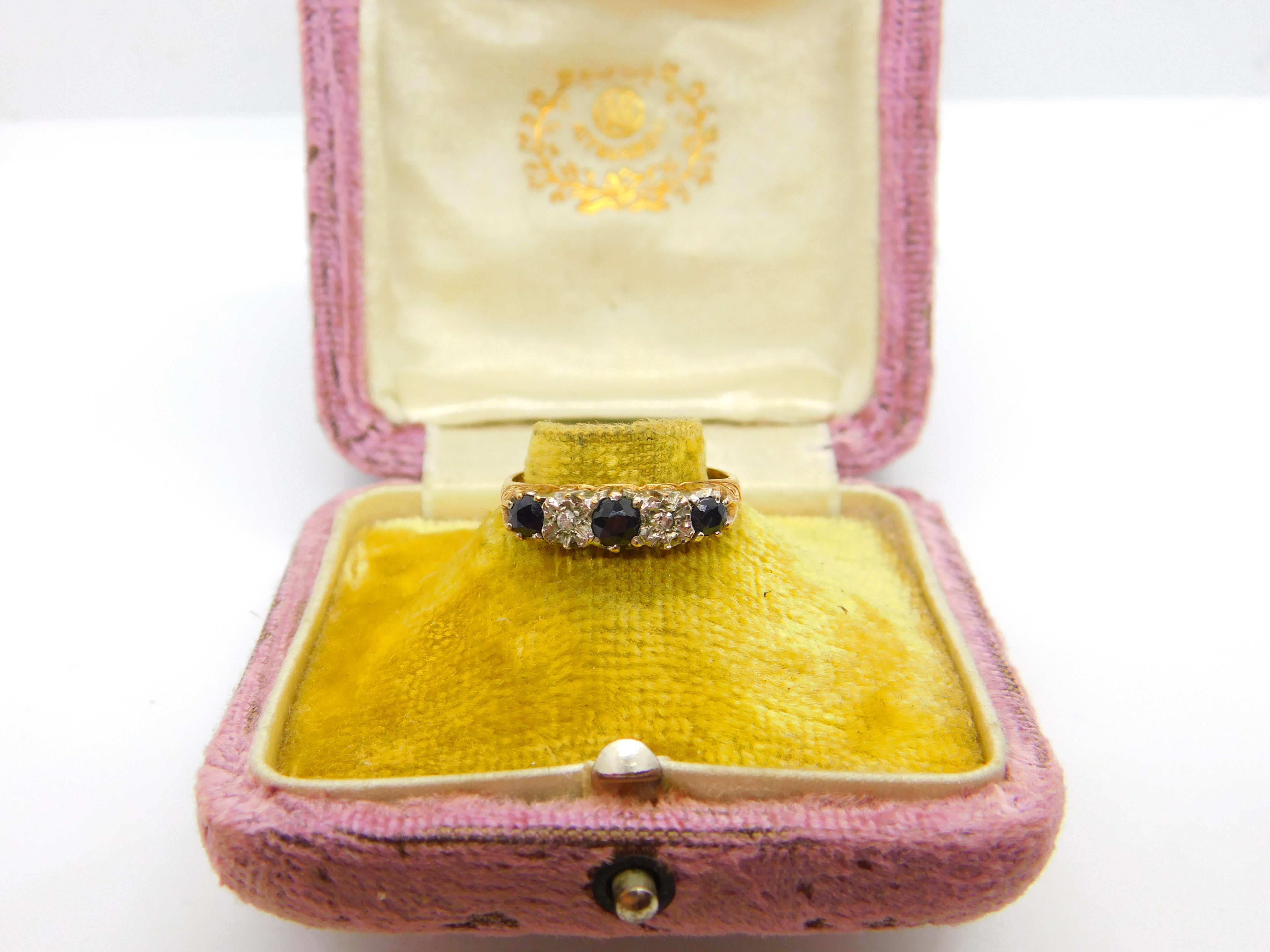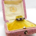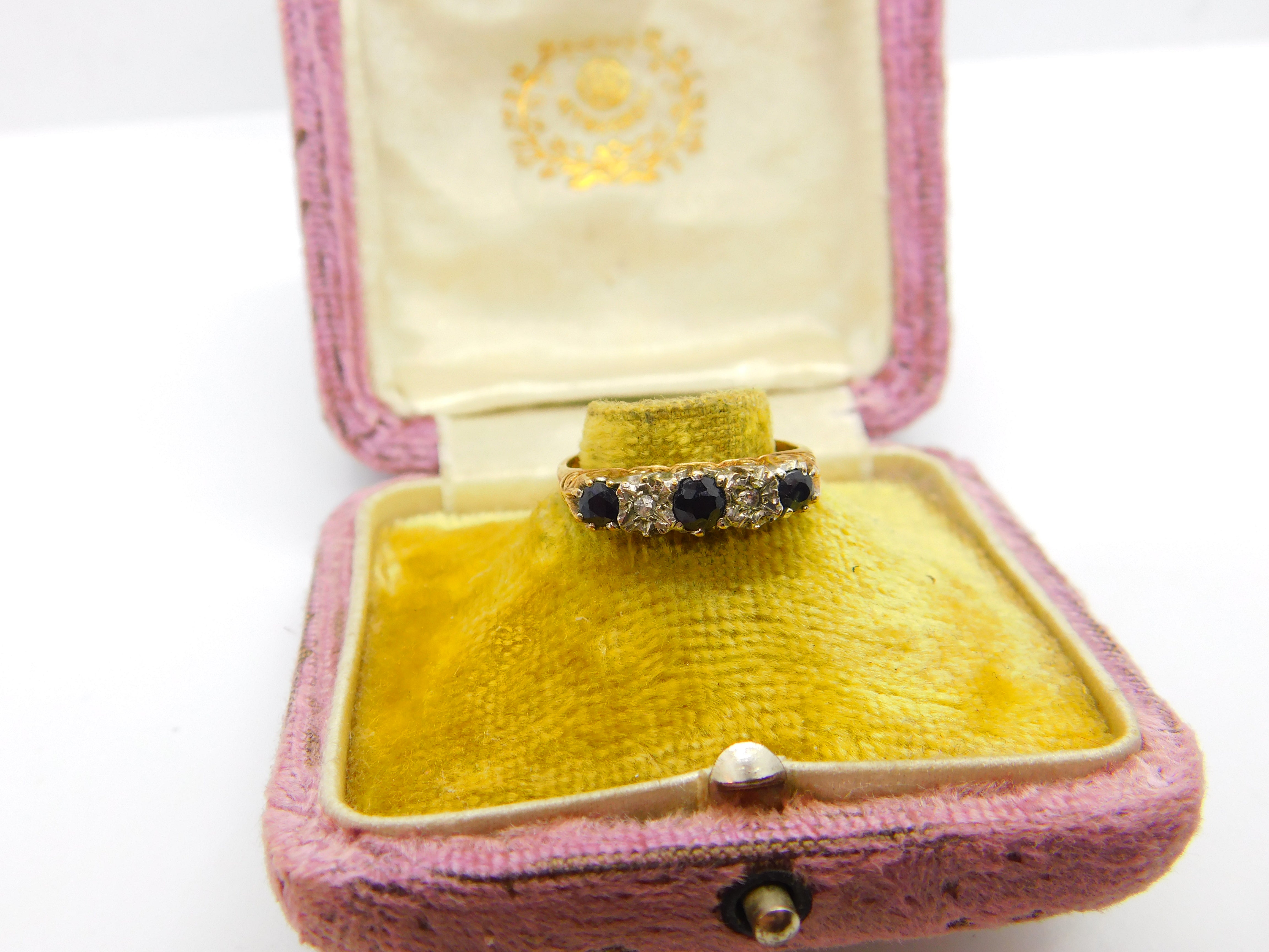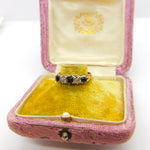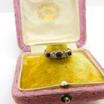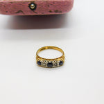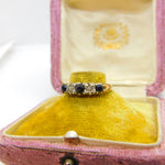 9ct Yellow Gold, Sapphire & Diamond Boat Ring 1982 Edinburgh Vintage