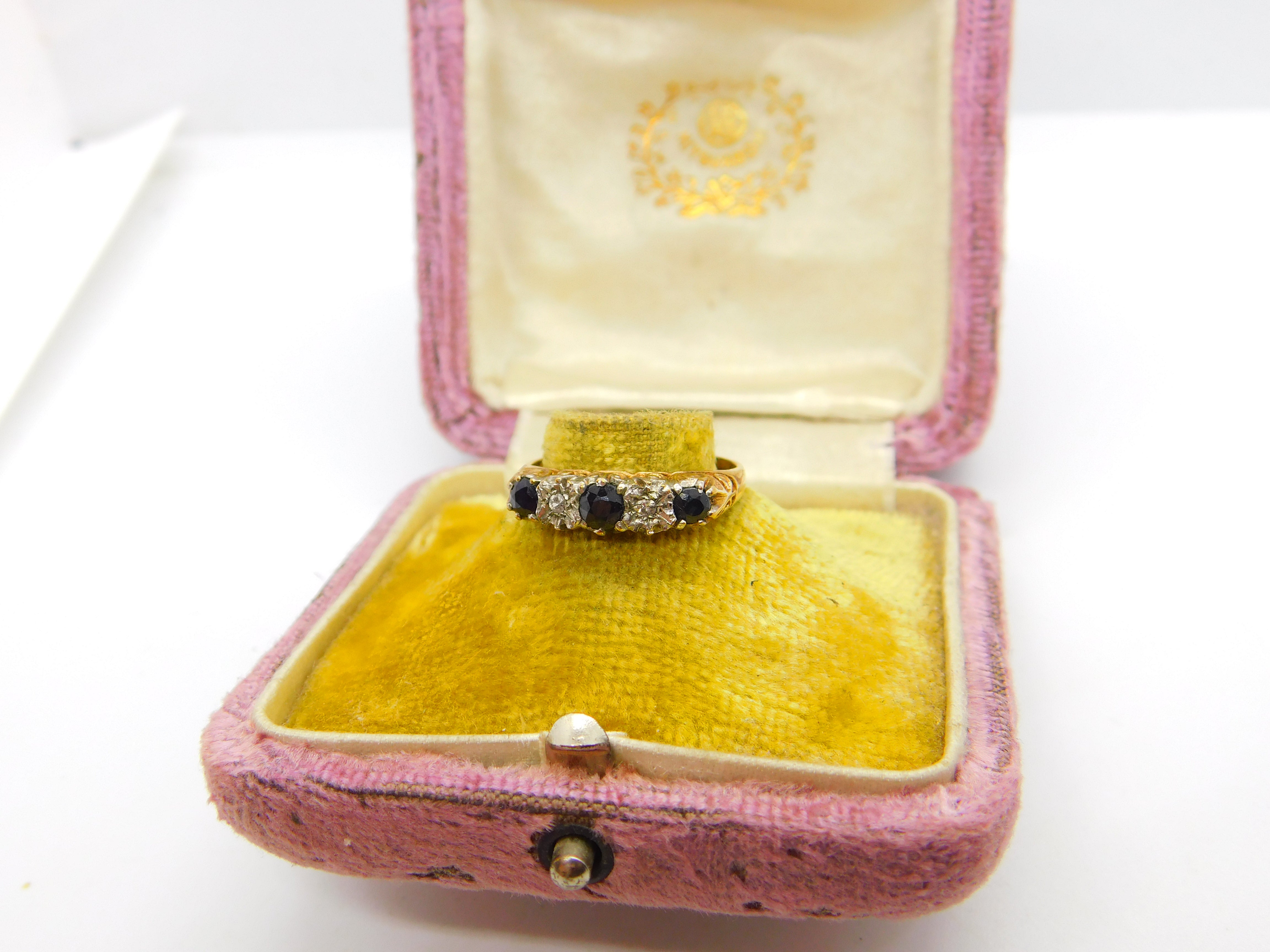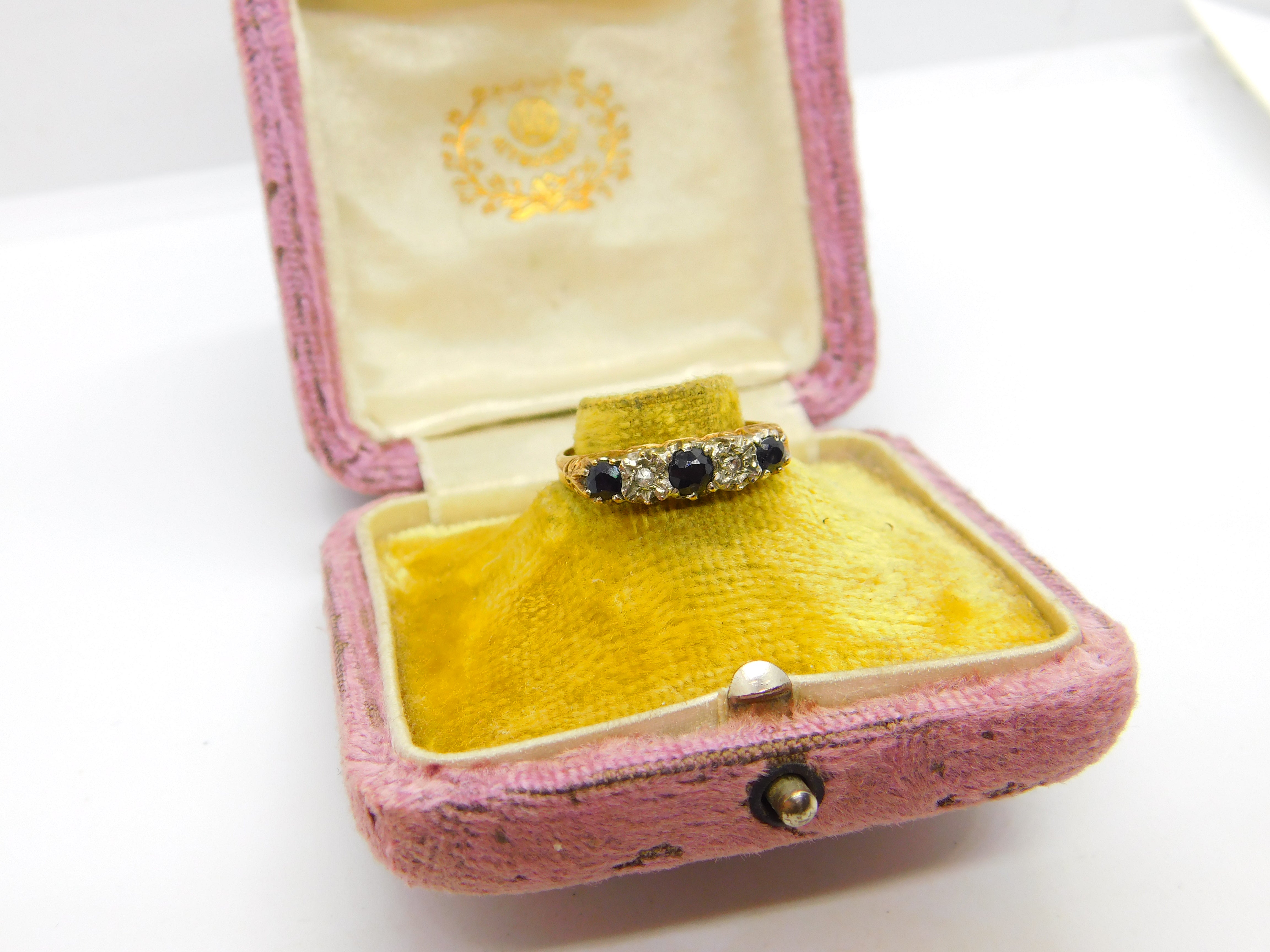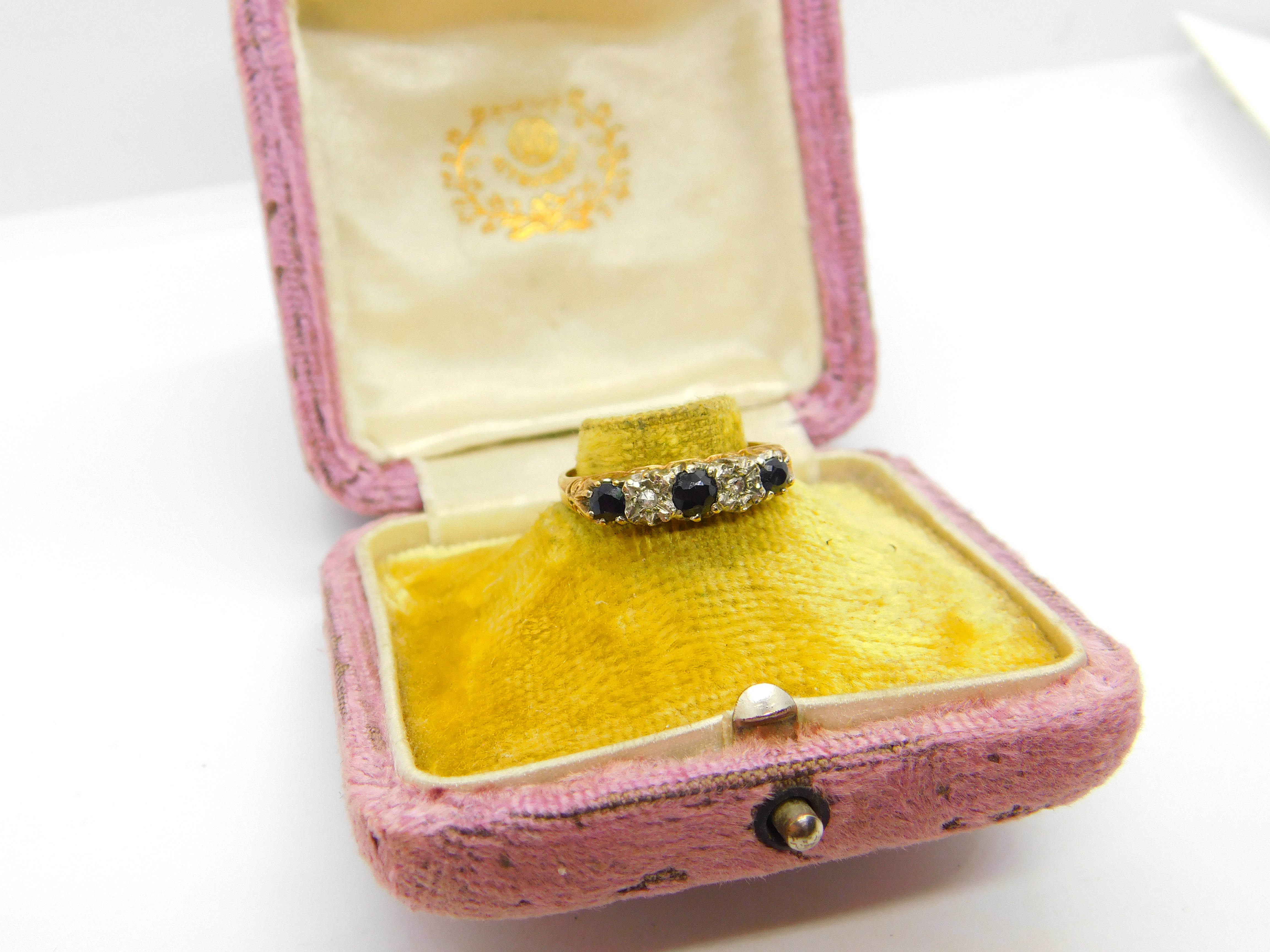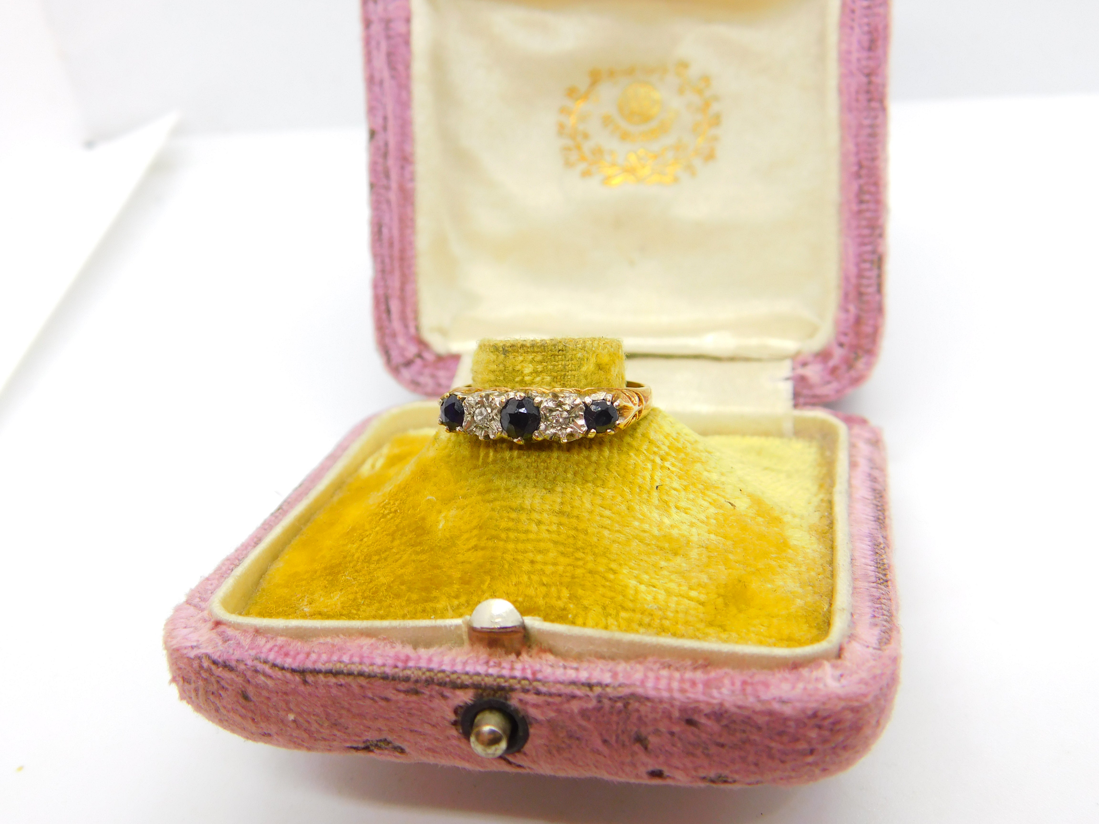 9ct Yellow Gold, Sapphire & Diamond Boat Ring 1982 Edinburgh Vintage