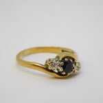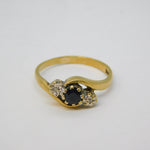 9ct Yellow Gold, Sapphire & Diamond Crossover Ring Vintage 1990 Birmingham