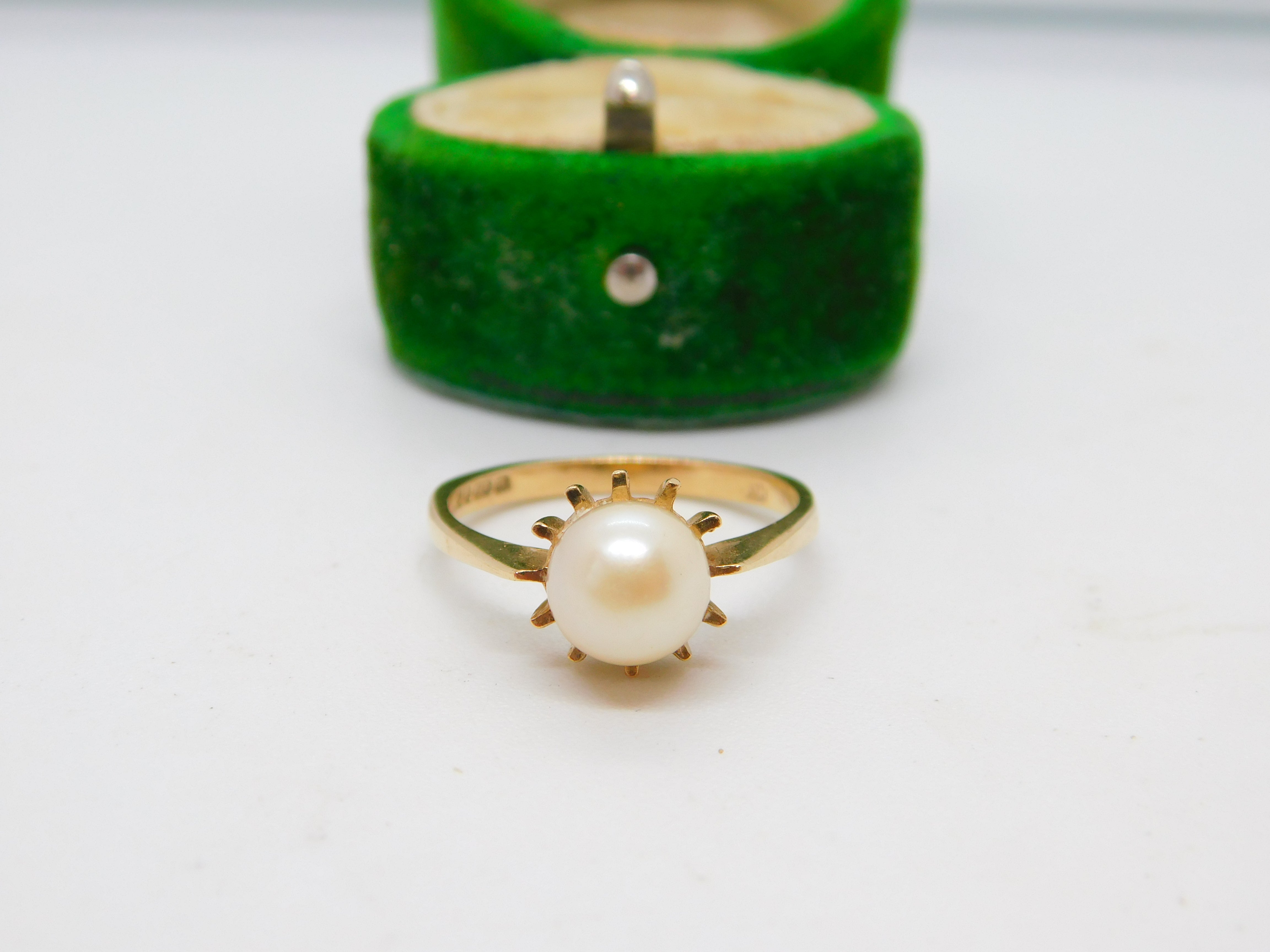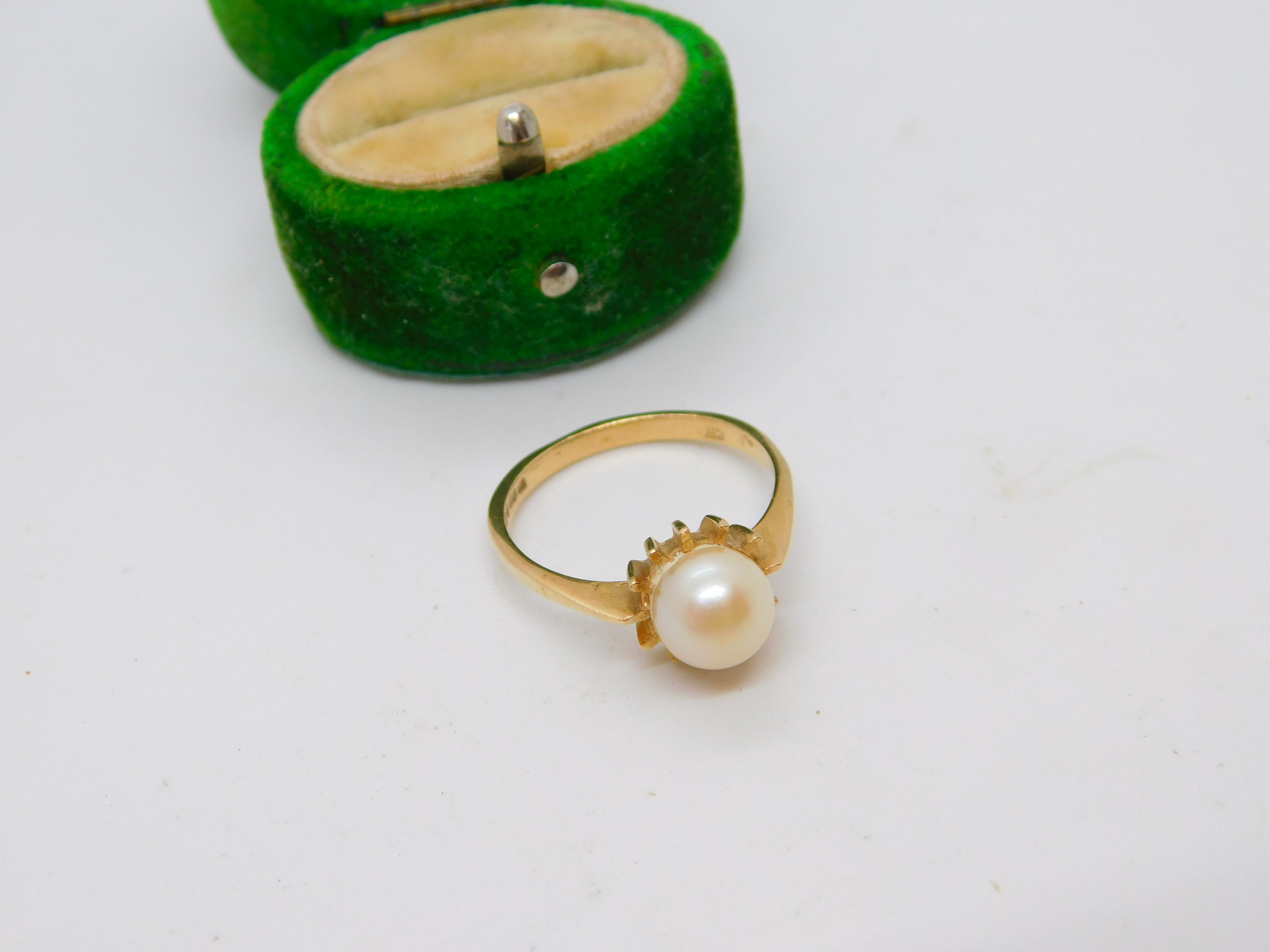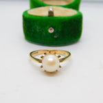 9ct Yellow Gold & Simulated Pearl Dress Ring Vintage 1977 London
