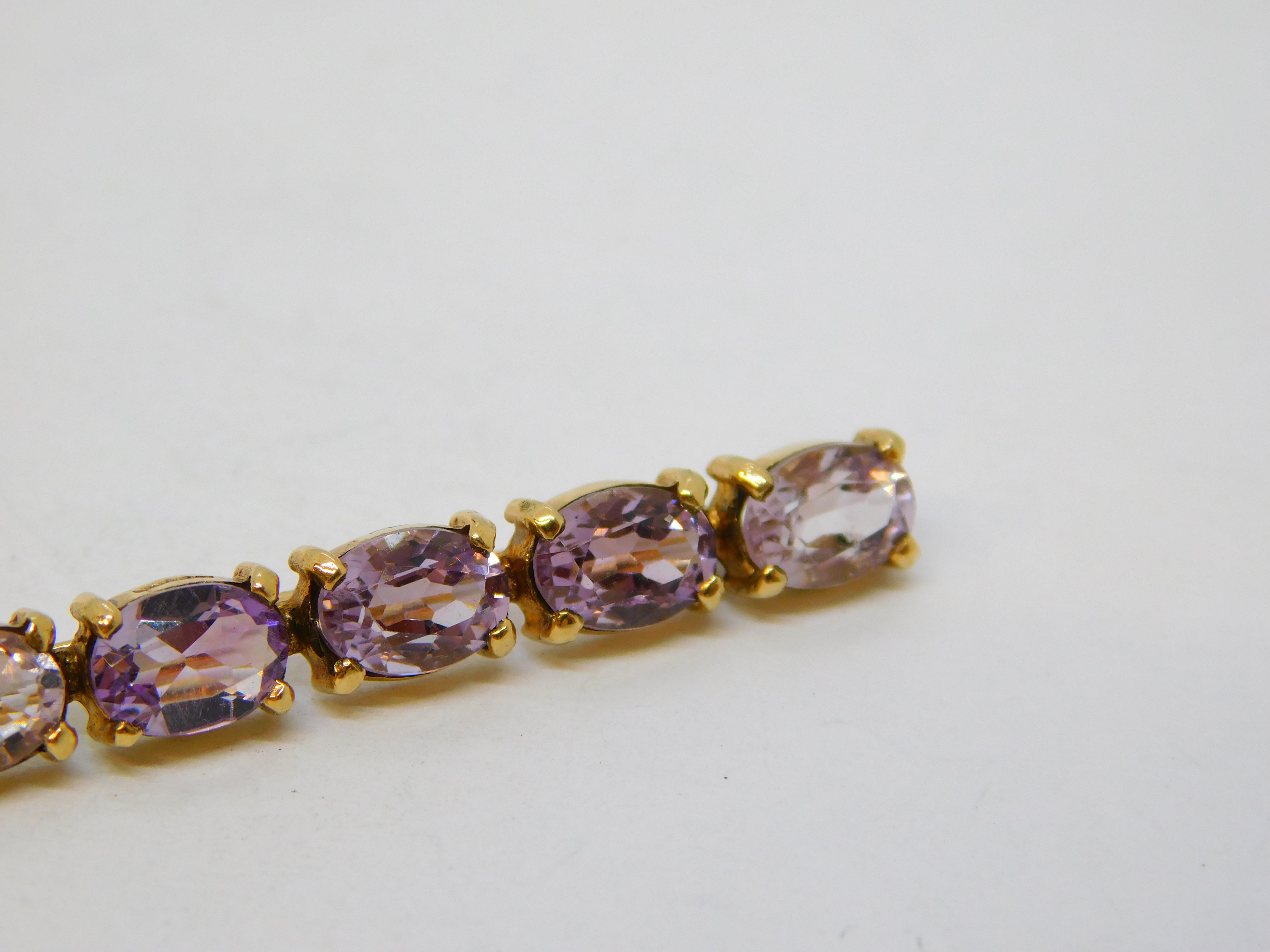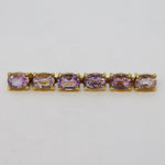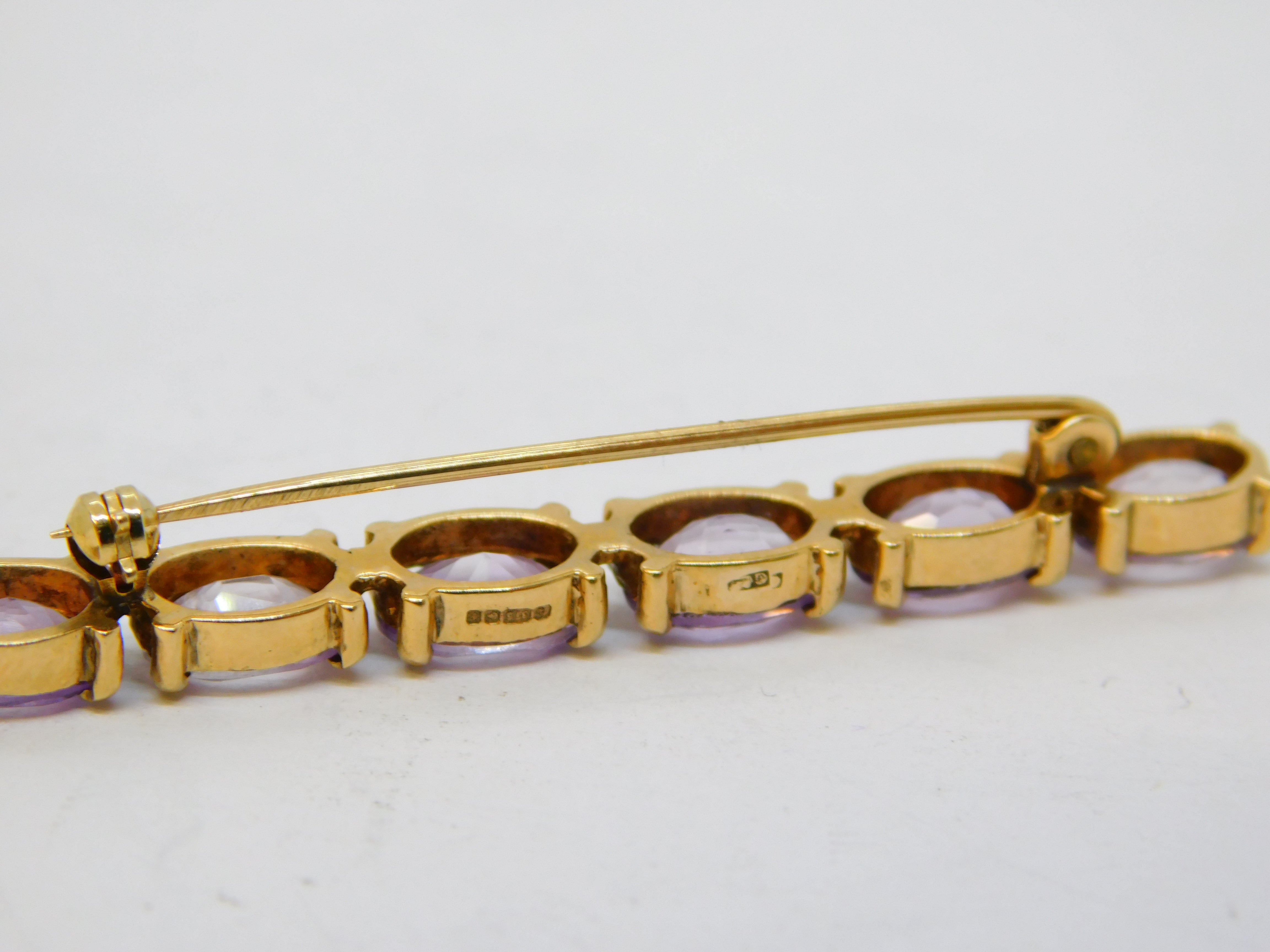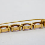 9ct Yellow Gold Six-Stone Amethyst Set Bar Brooch Vintage 1989 Birmingham