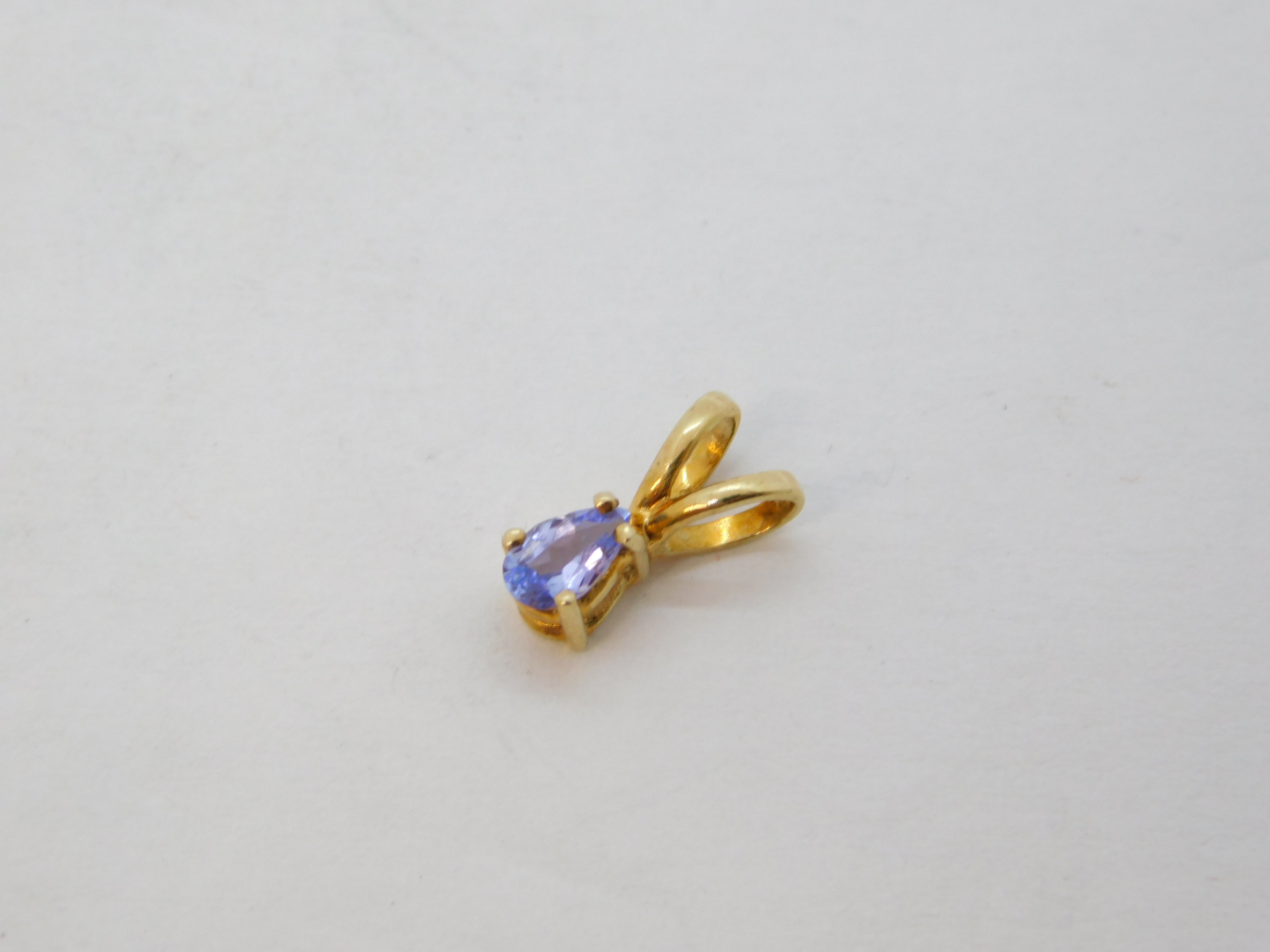 9ct Yellow Gold Small Pear-Cut Tanzanite Drop Pendant Vintage c1990