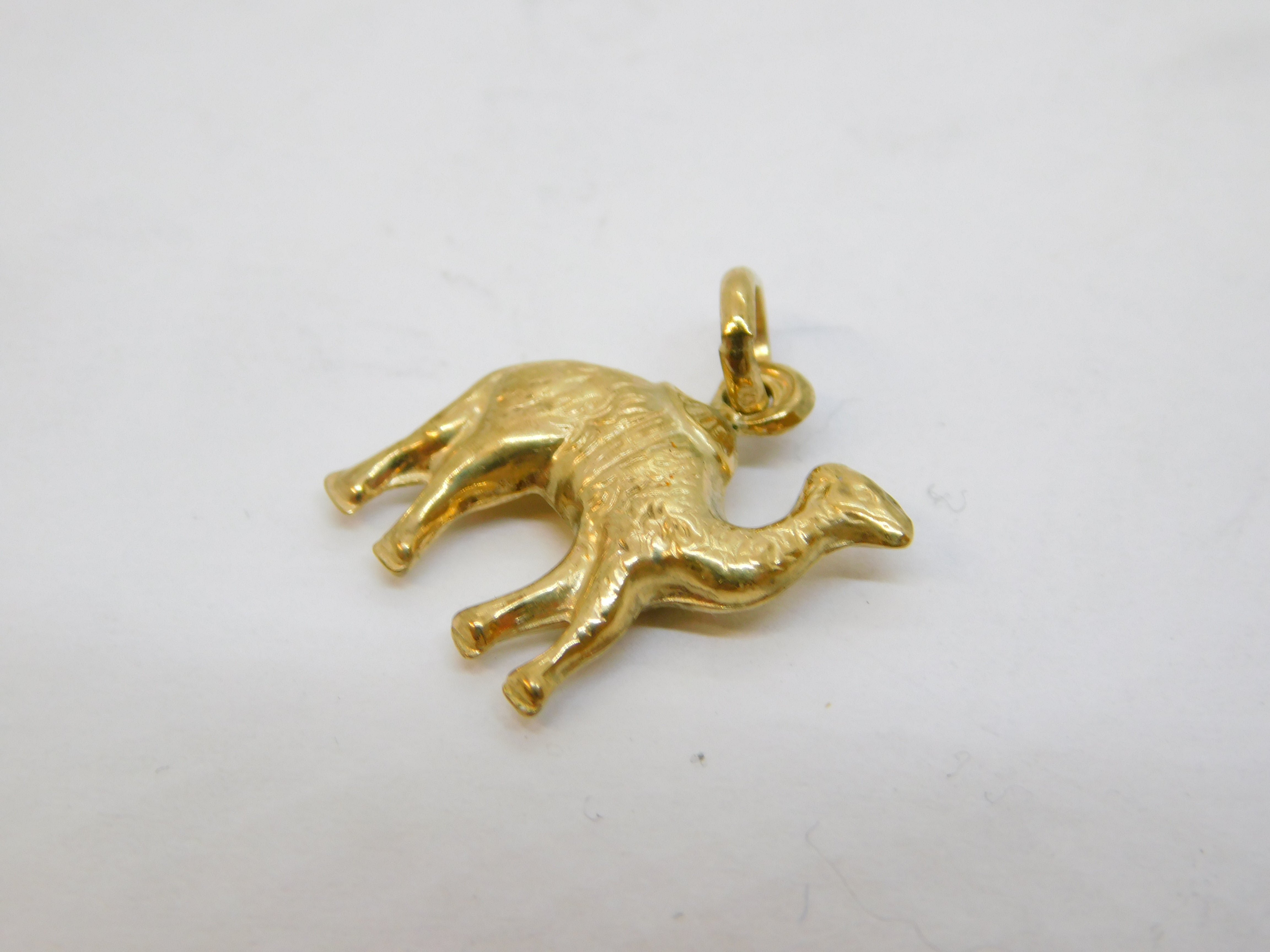 Details: A fantastic and wonderfully designed vintage 9ct yellow gold walking camel charm pendant with lovely detailing hallmarked to the bale c1970. This is a wonderful item that would make a perfect gift or addition to any collection.