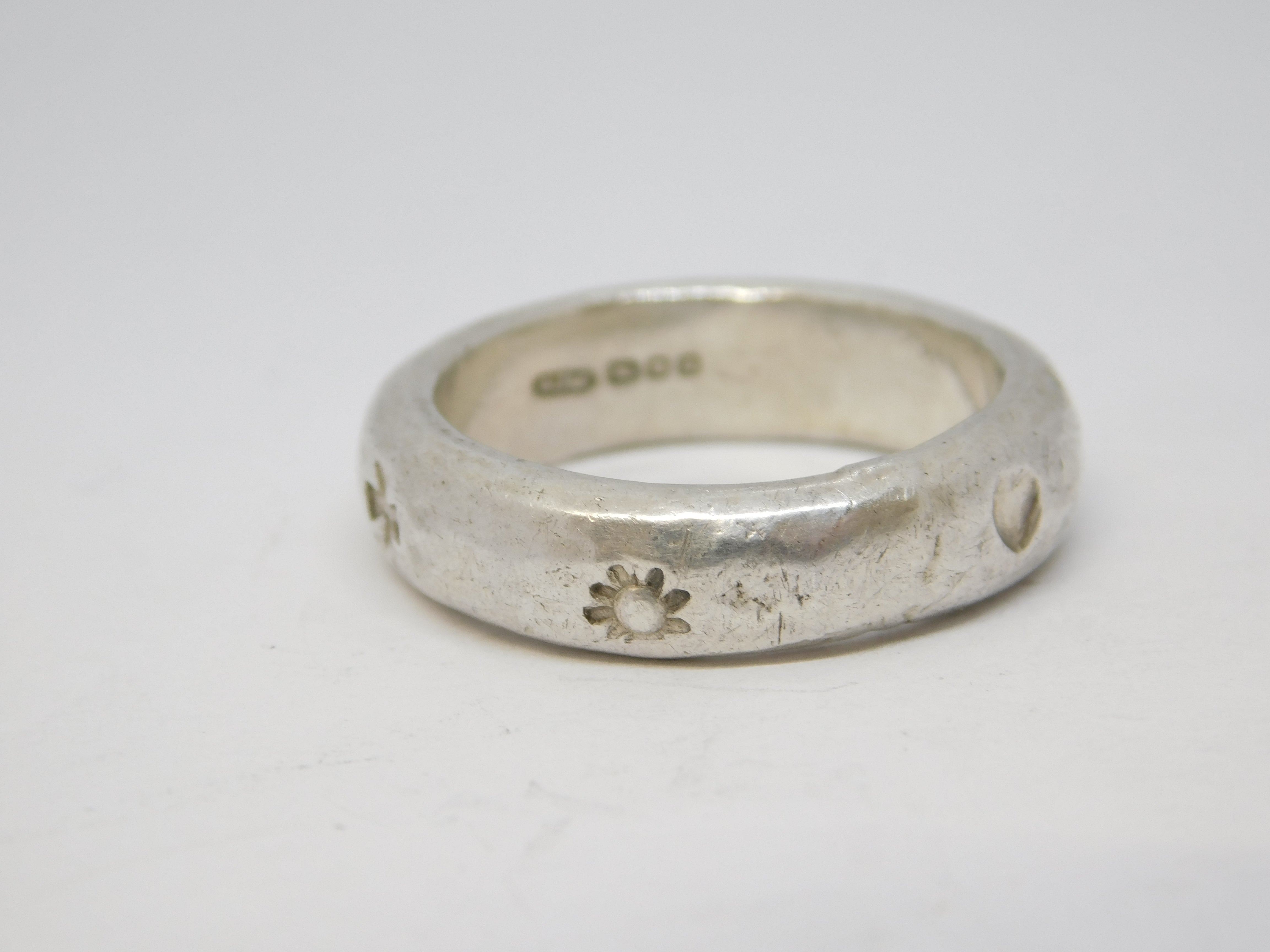 Amanda Mansell Sterling Silver Flower & Cross Band Ring Vintage 1994 London