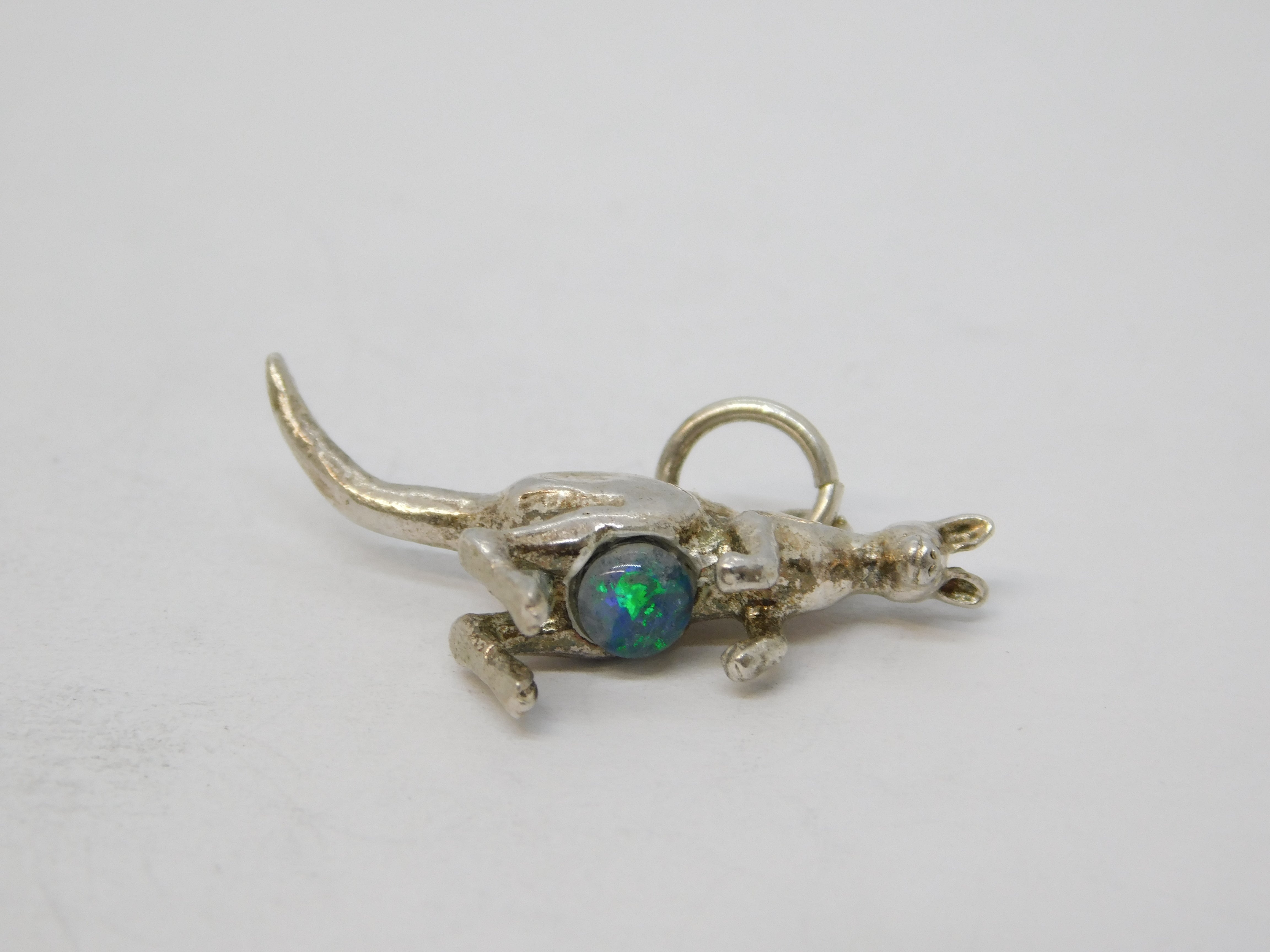Australian Sterling Silver & Opal Set Kangaroo Charm Pendant Vintage c1970