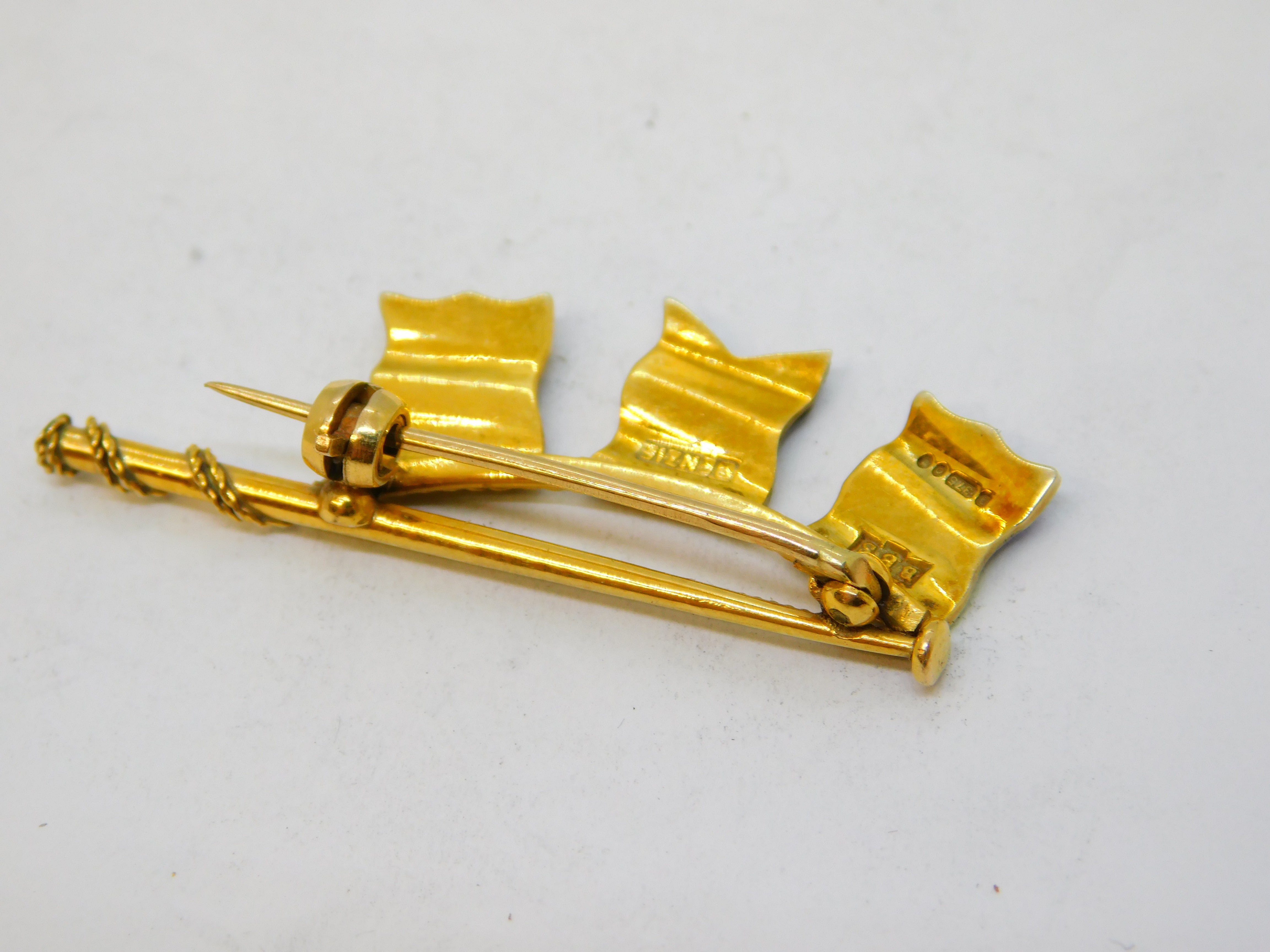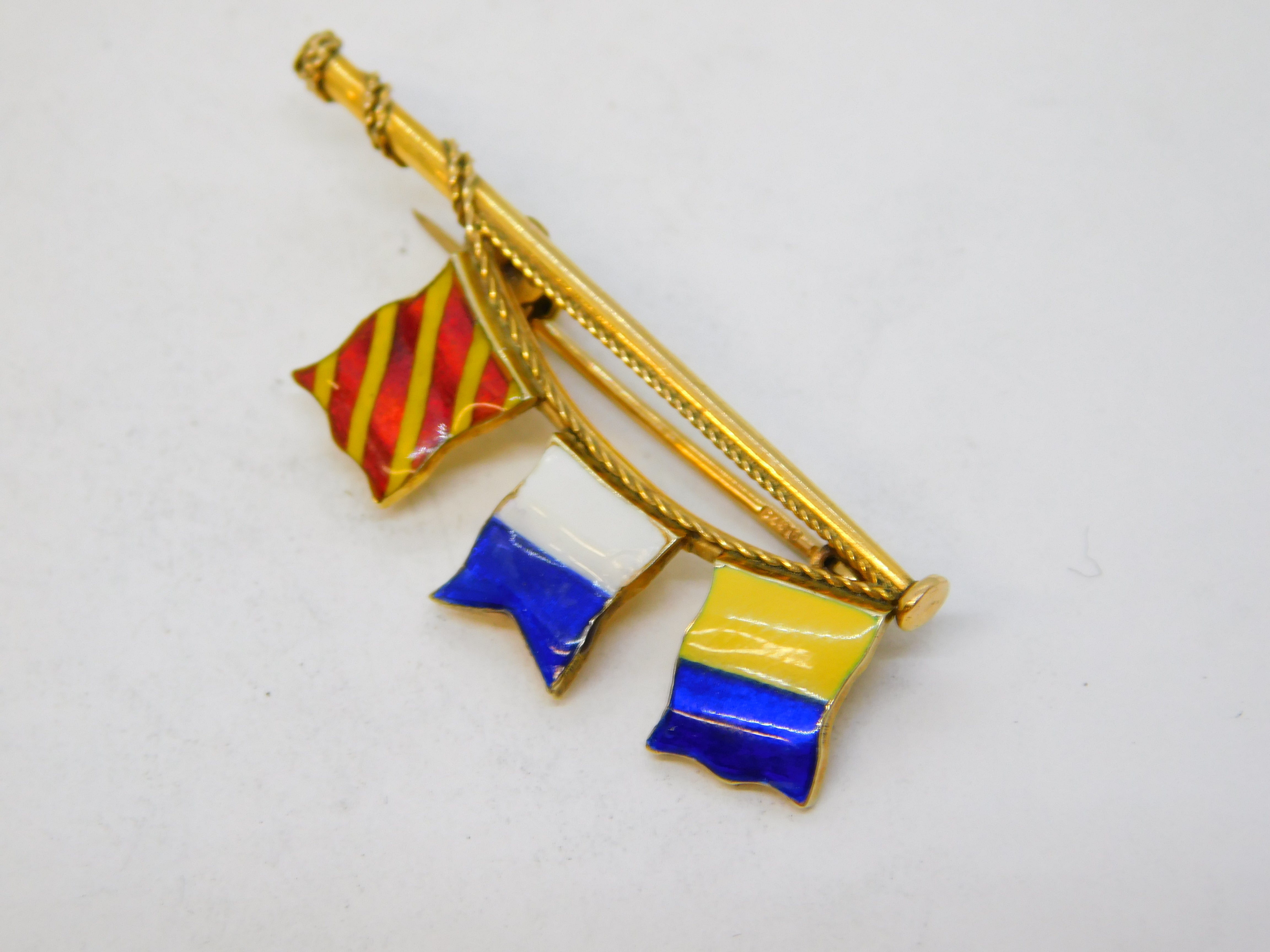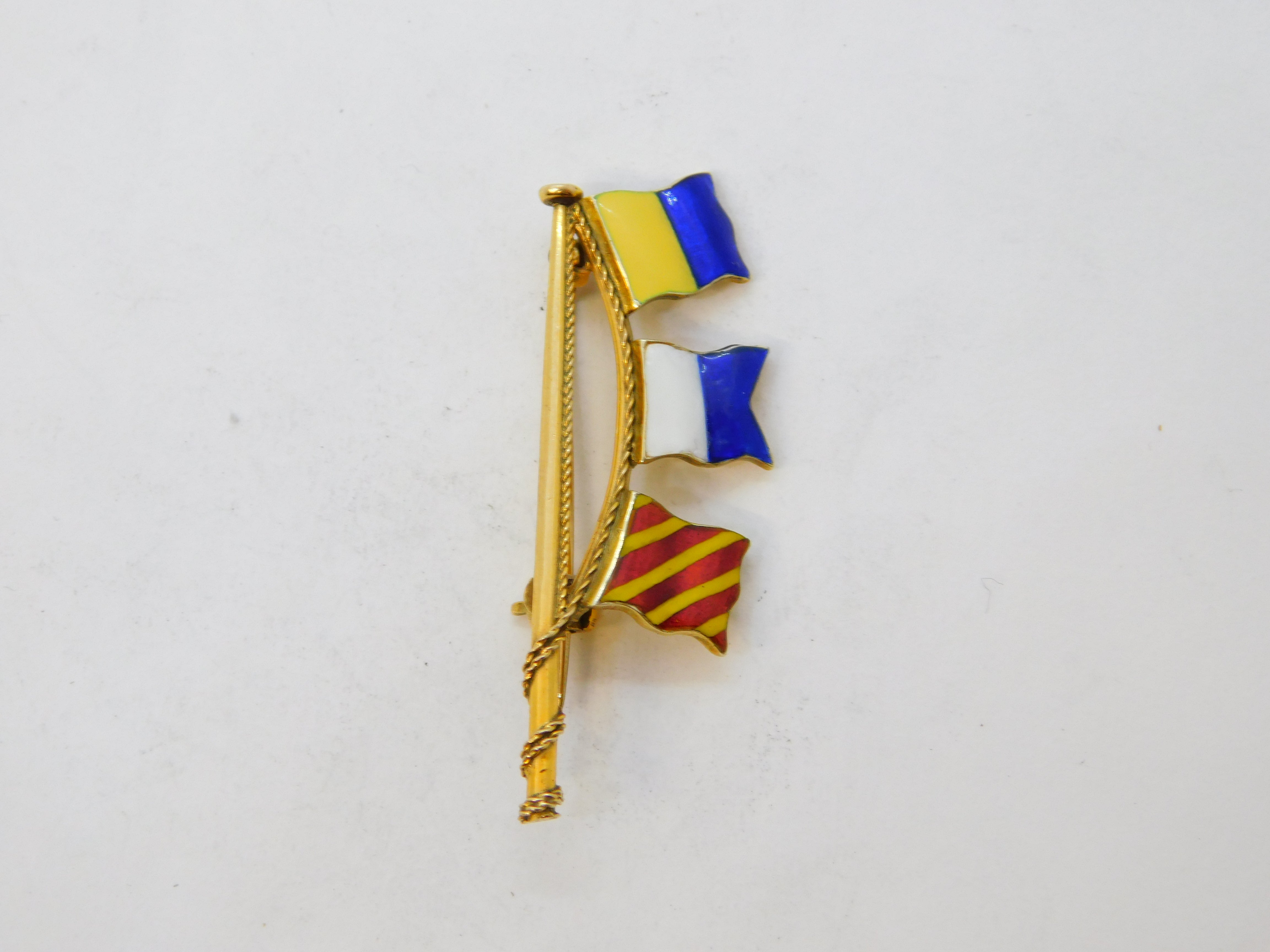 Benzie Cowes 9ct Gold & Enamel Sailing Flags Brooch Vintage 1969 London