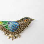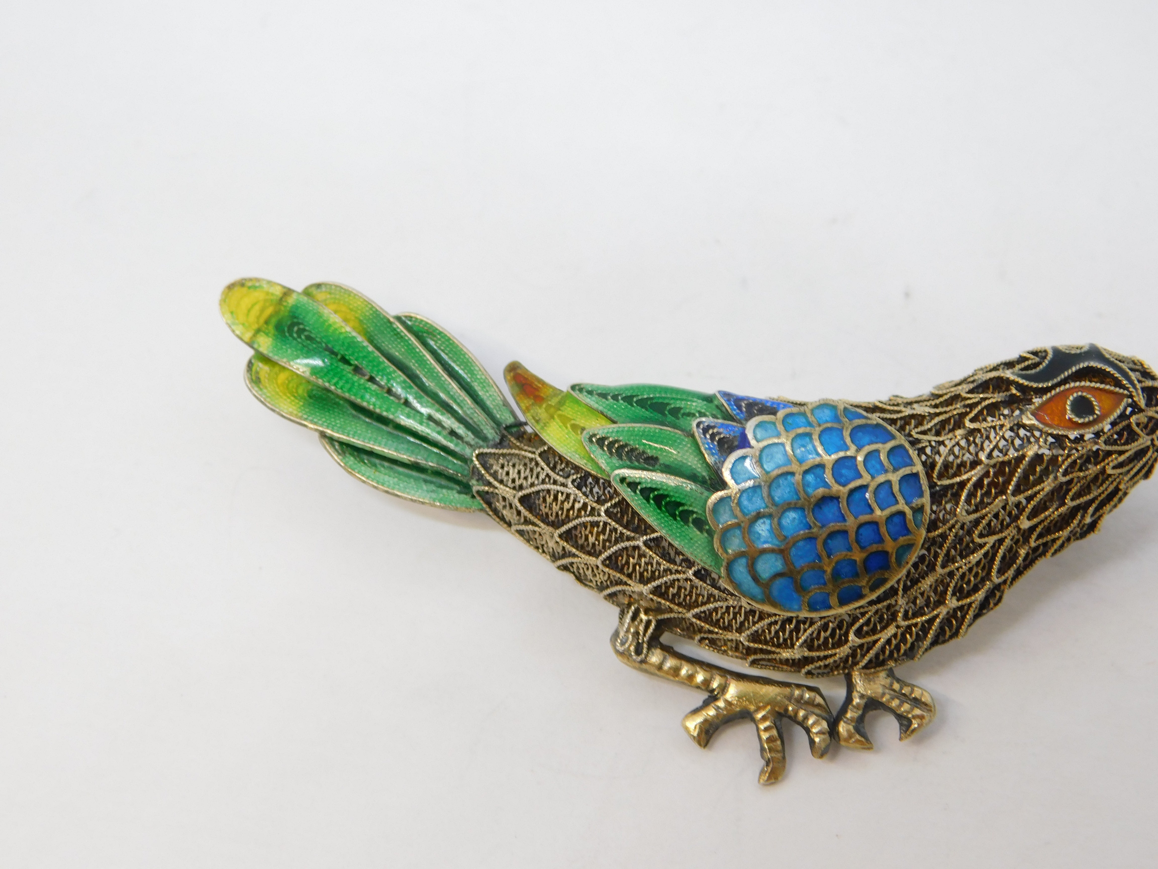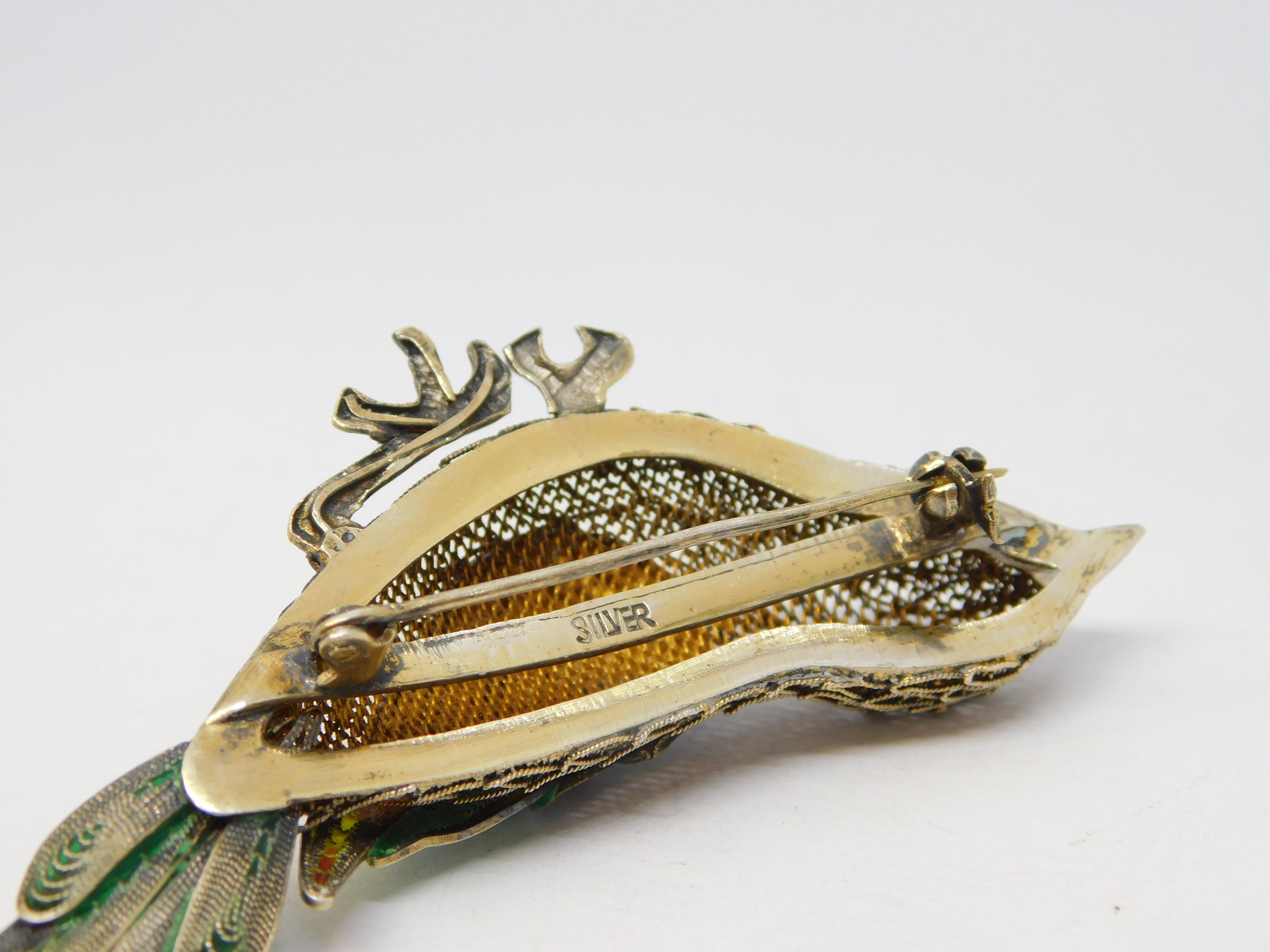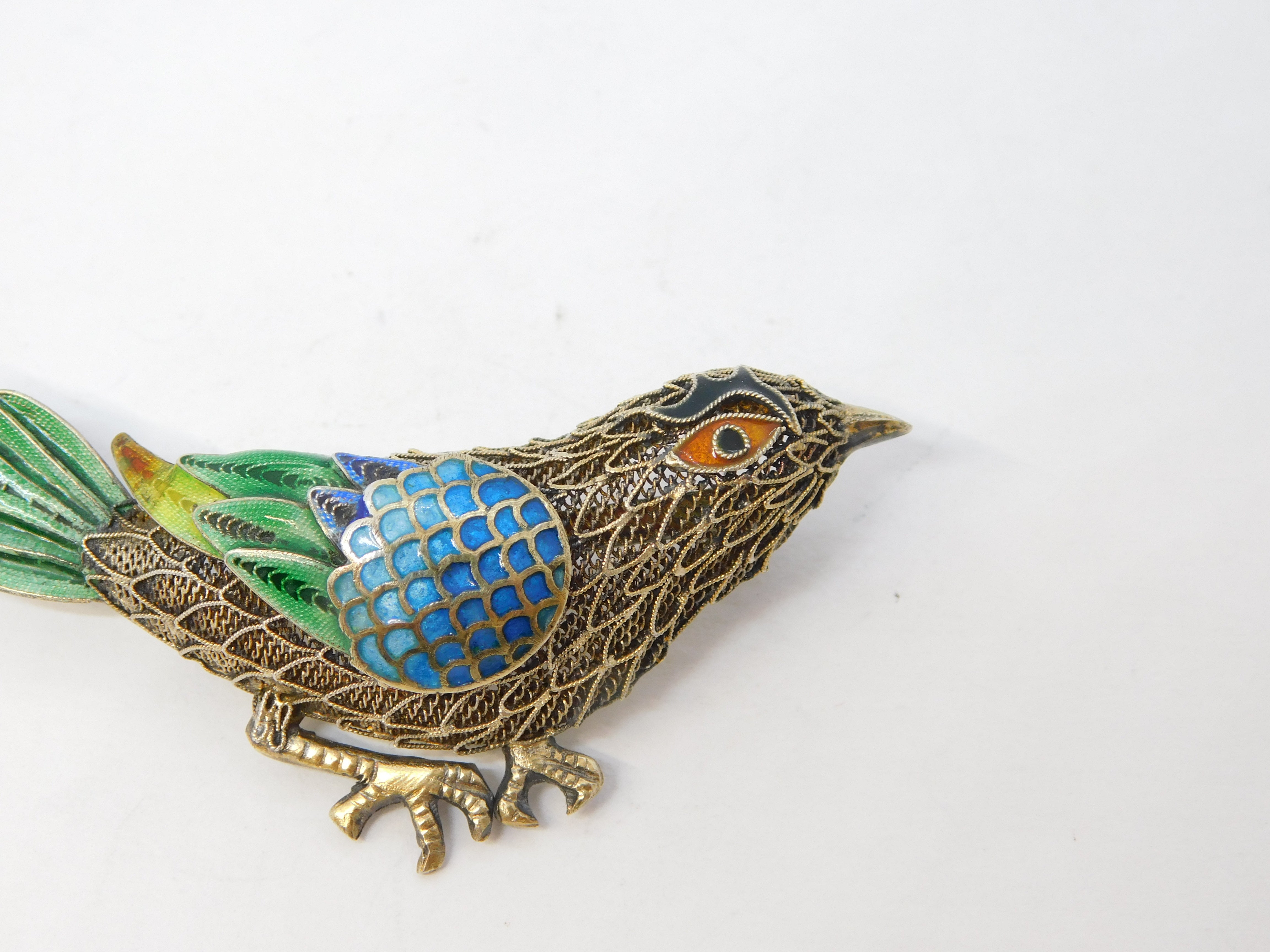 Chinese Sterling Silver Gilt & Enamel Bird Sweetheart Brooch Vintage c1950