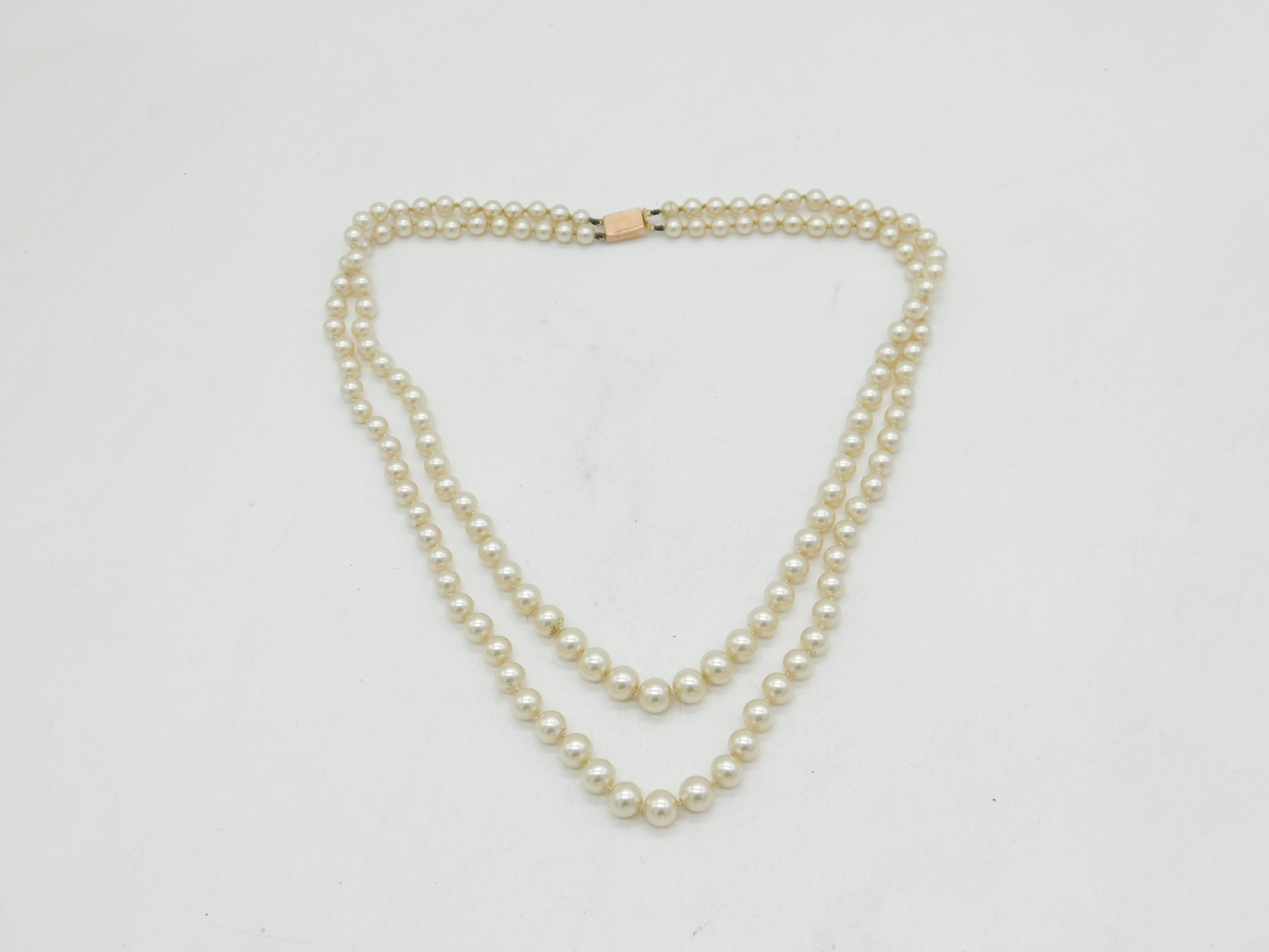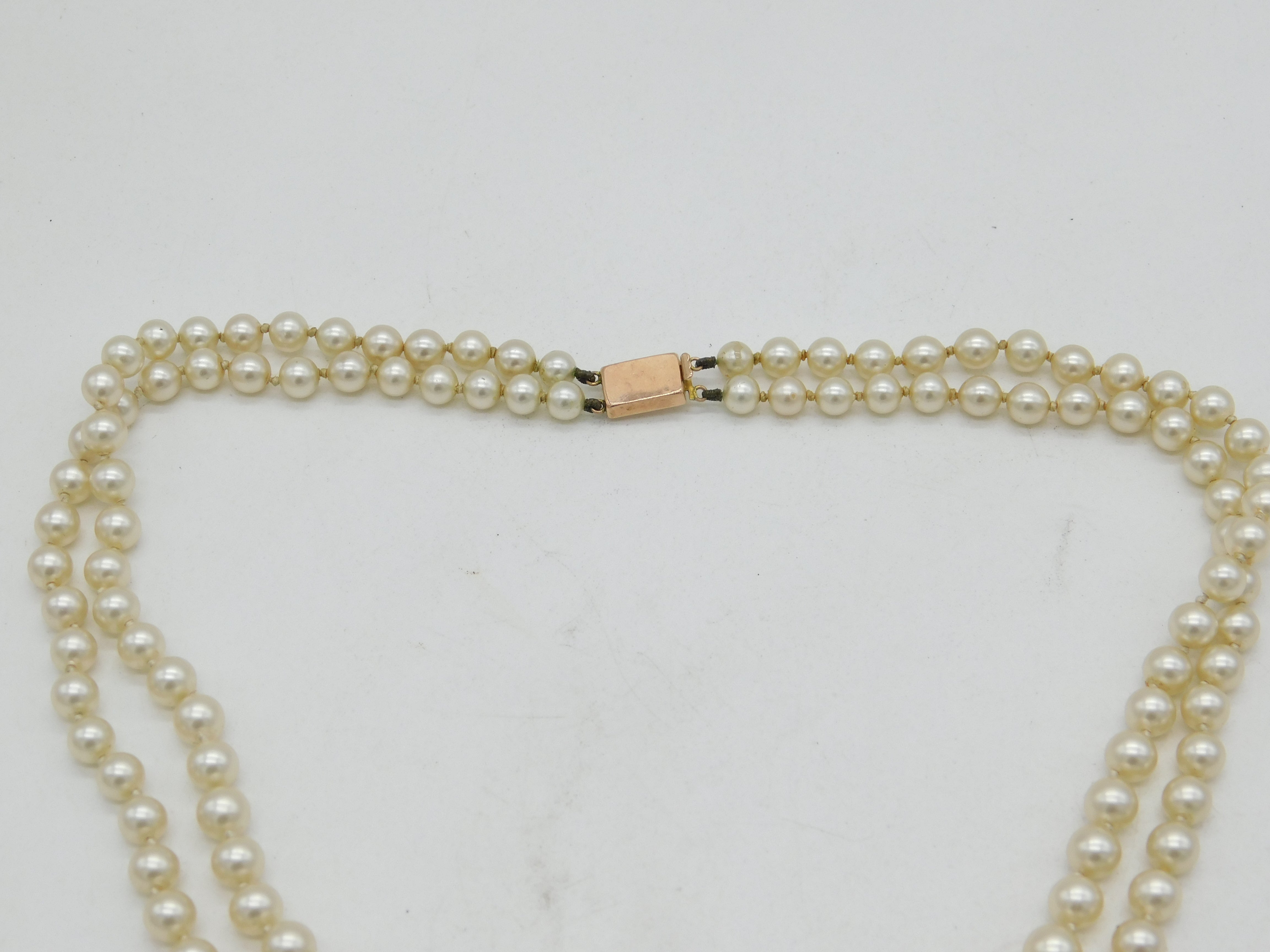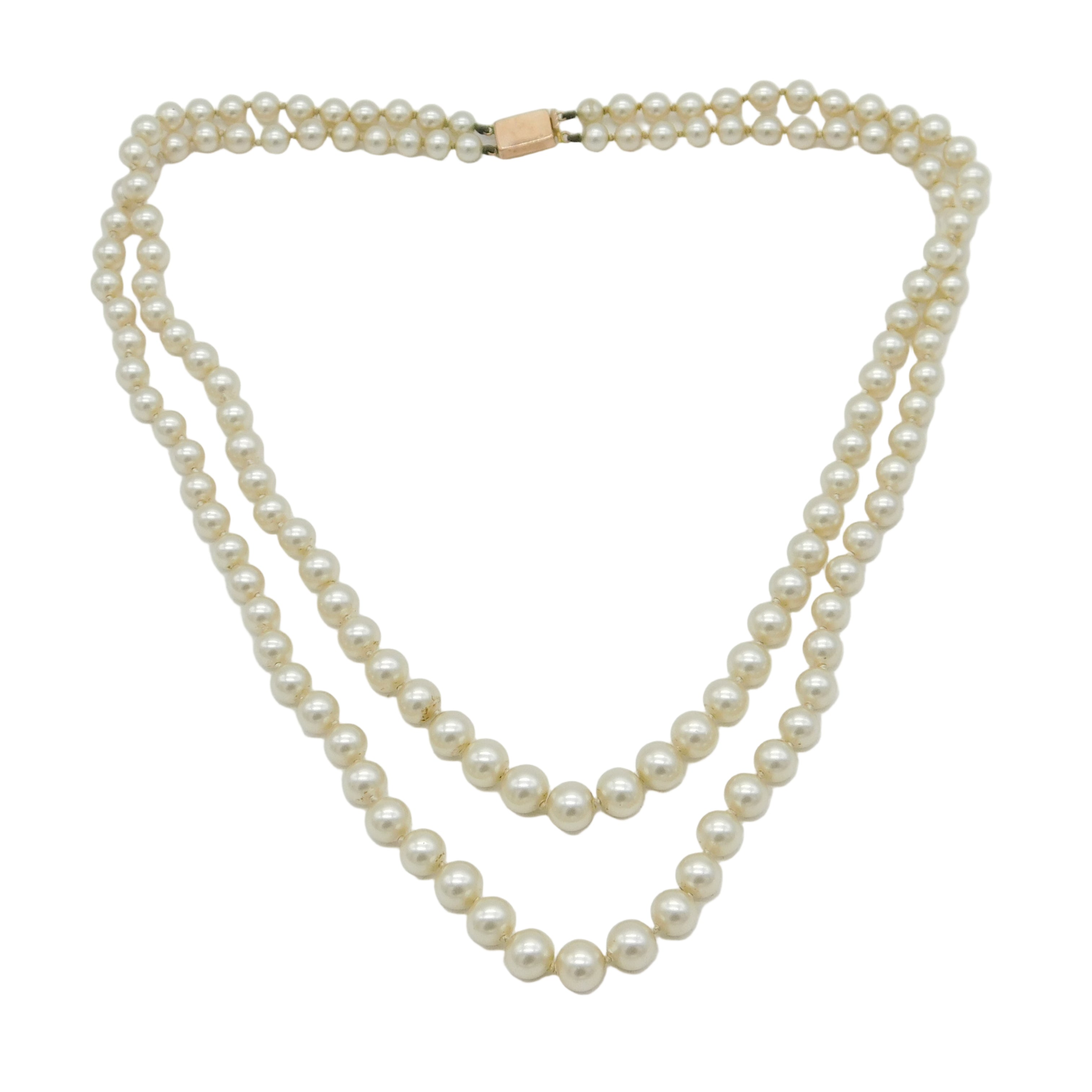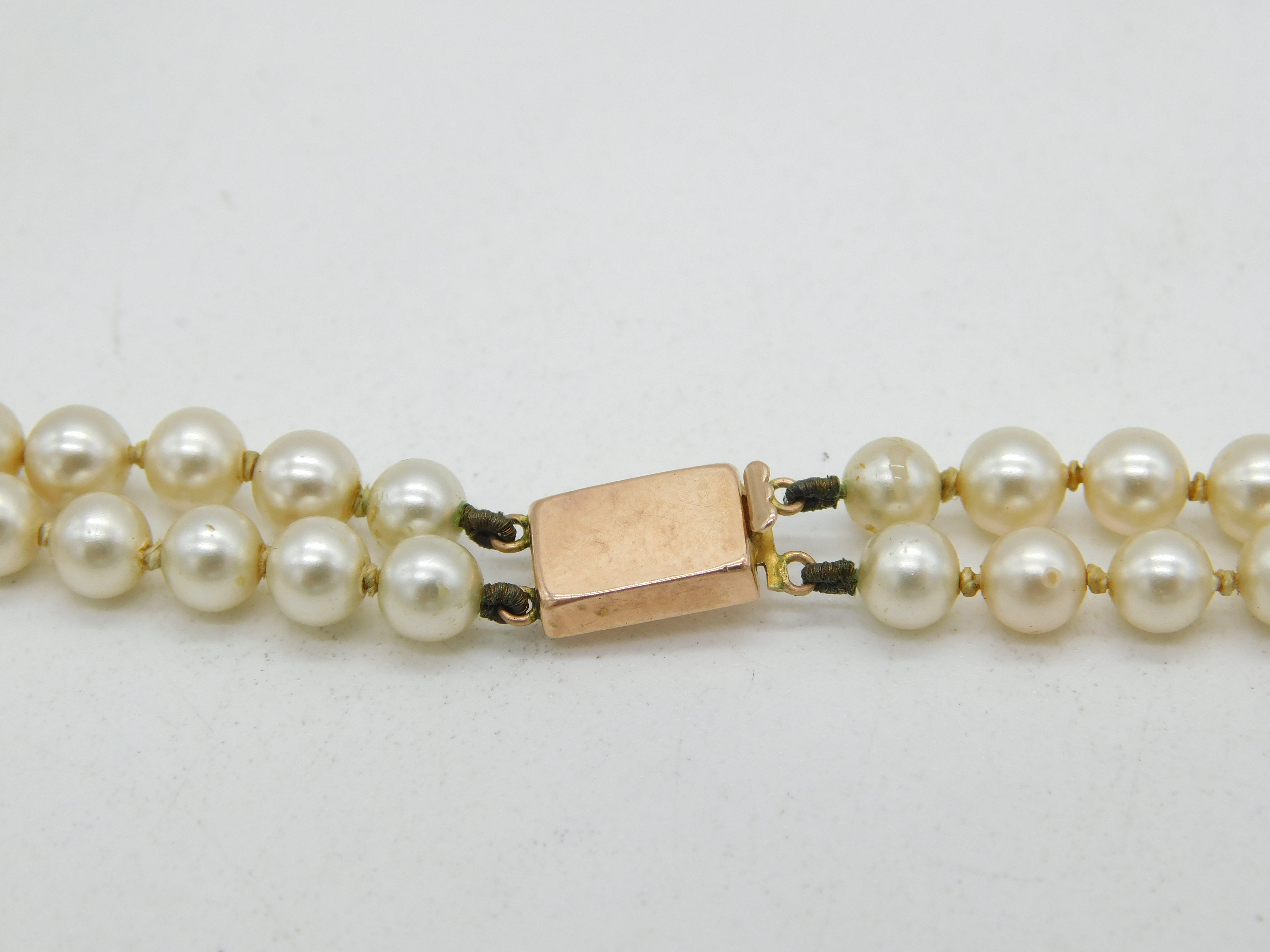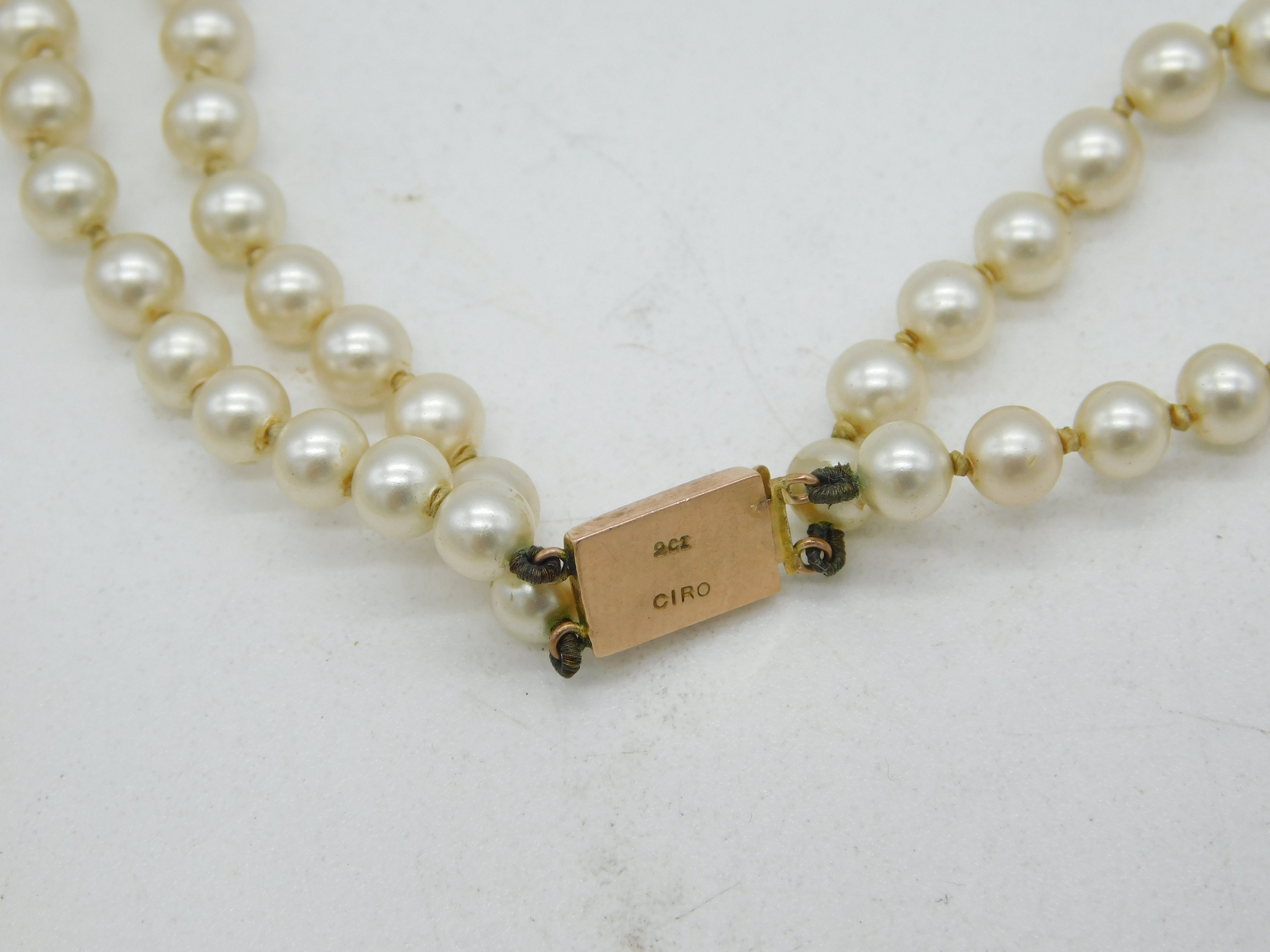Ciro 9ct Rose Gold Simulated Double-Strand Cultured Pearl Necklace Vintage c1950