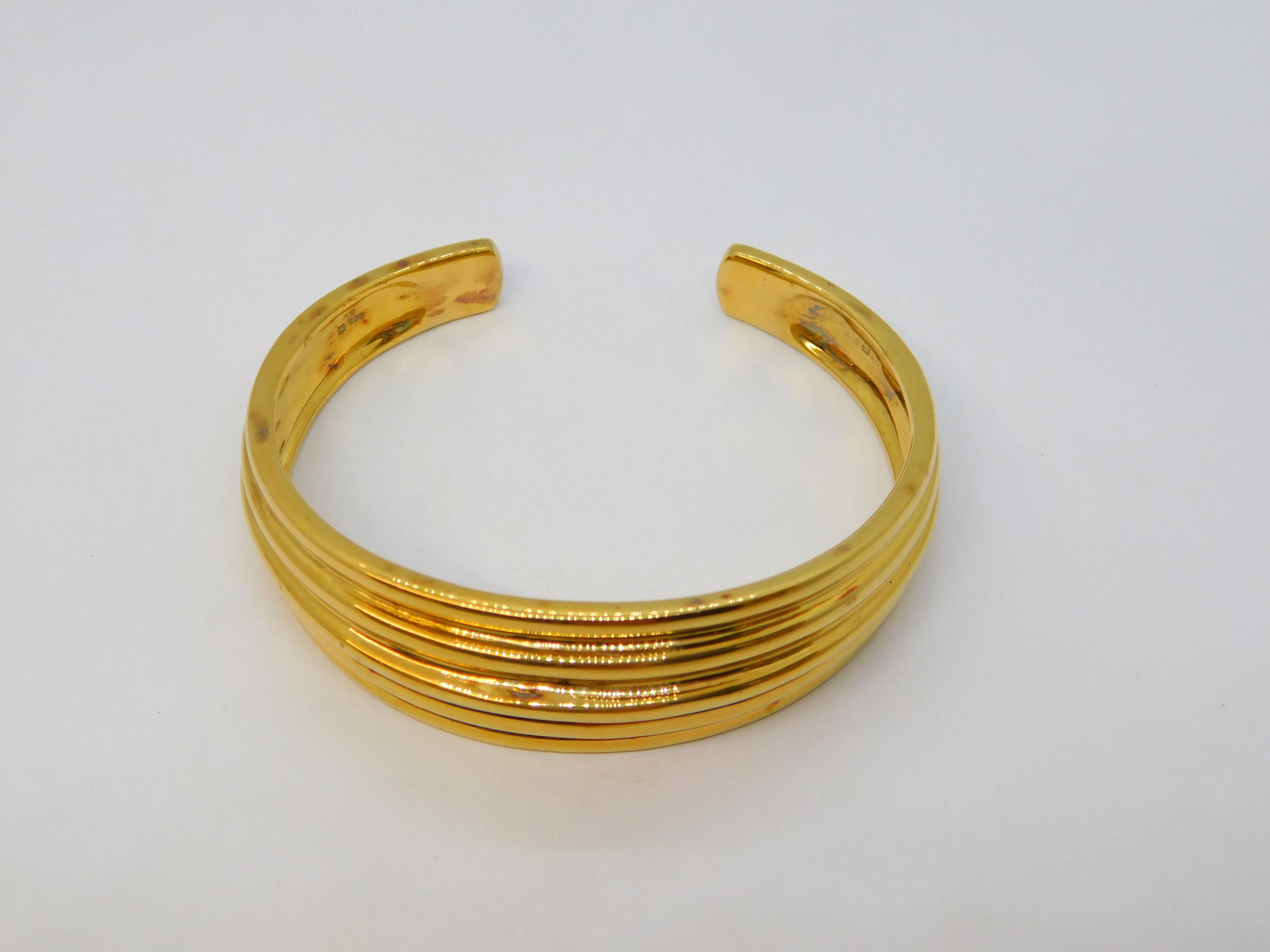 Gold on Sterling Silver Modernist Cuff Bangle Bracelet Vintage c1980 Birmingham