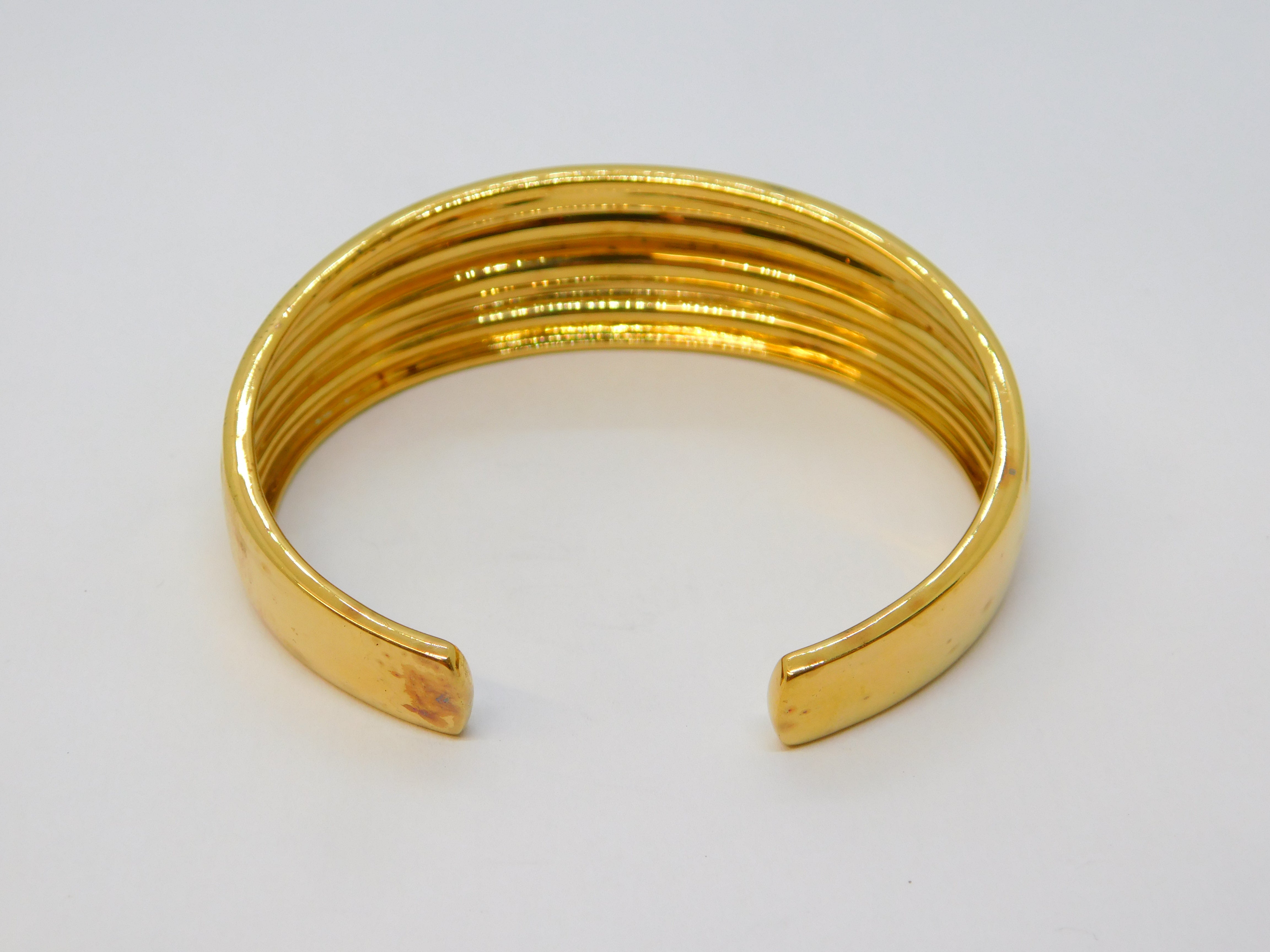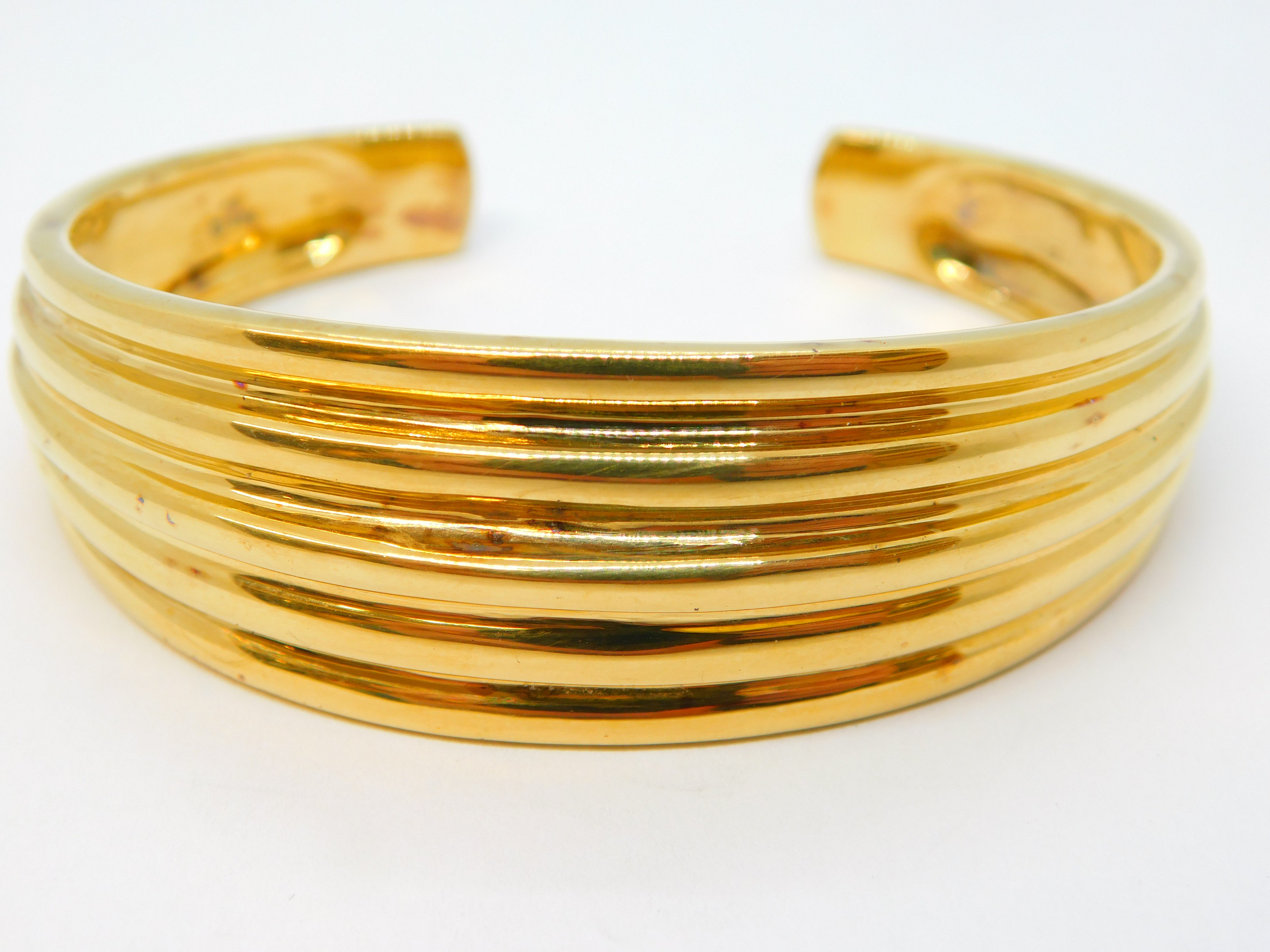 Details: A fantastic and wonderfully designed vintage gold on sterling silver chunky modernist cuff bangle bracelet hallmarked Birmingham c1980 to the interior band. This is a wonderful item that would make a perfect gift or addition to any collection. We are more than happy to provide XRF reports for items upon request.