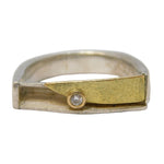 Mexican 18ct Gold, Sterling Silver, Diamond Studio Dress Ring Vintage c1970