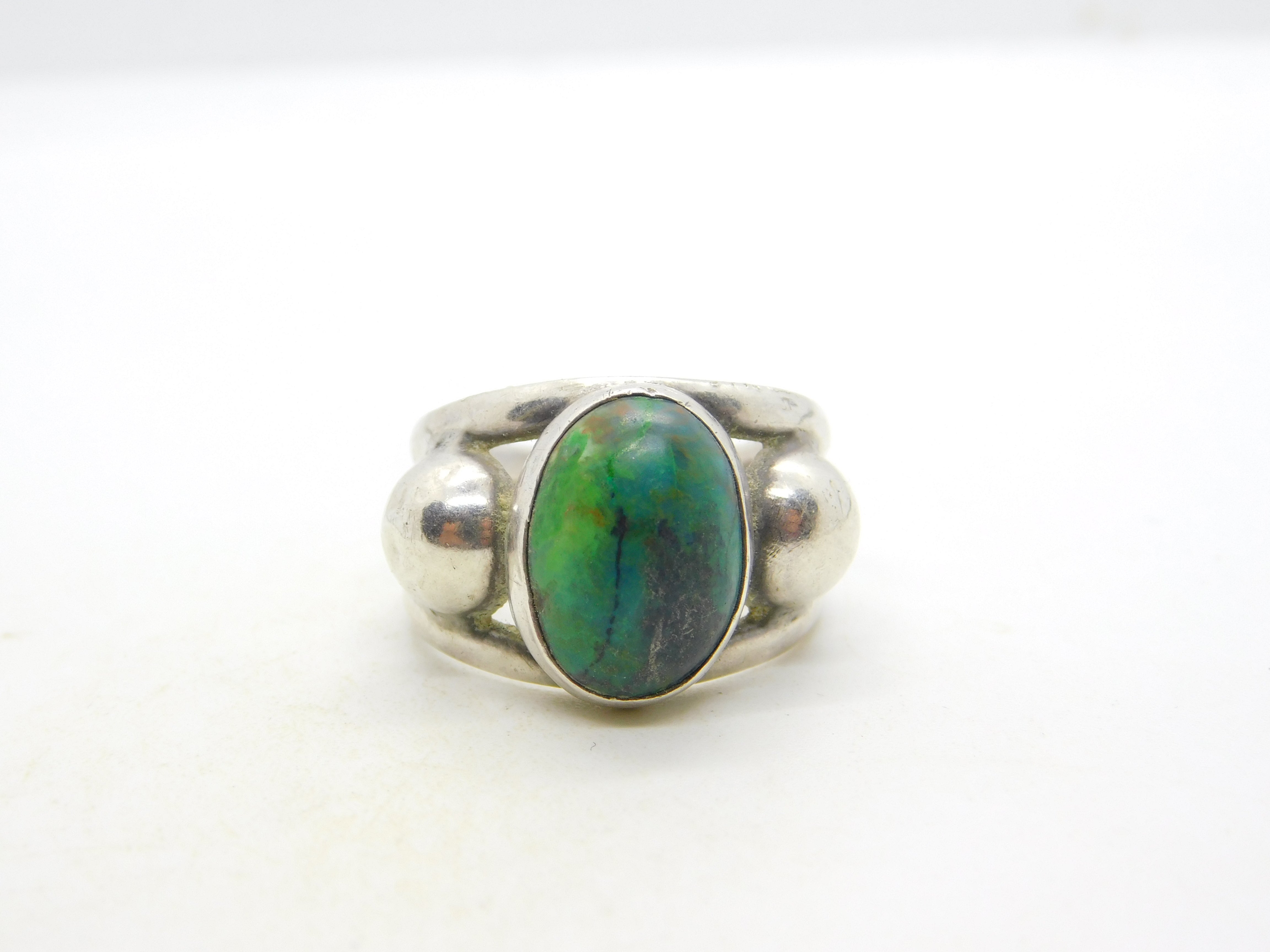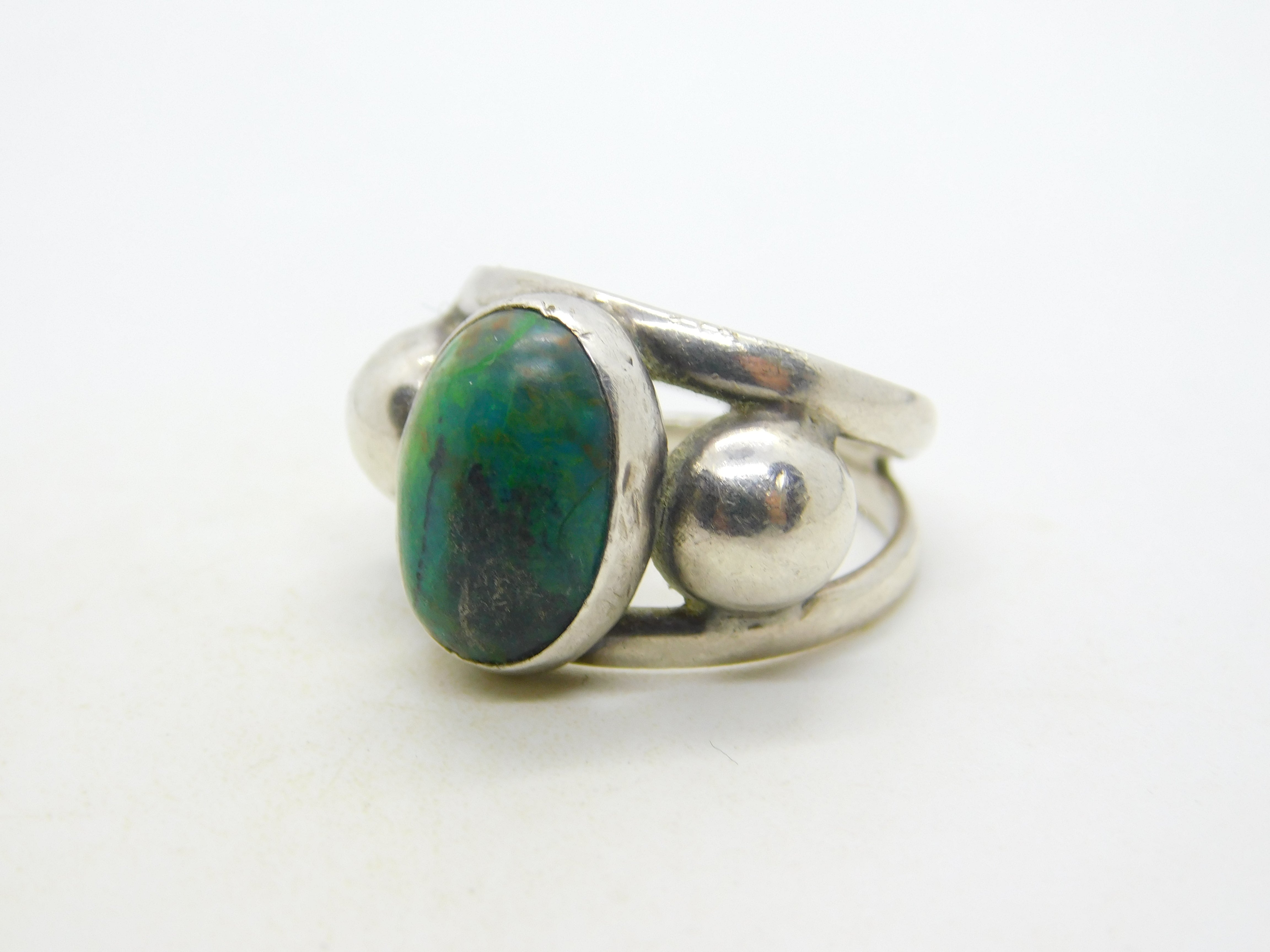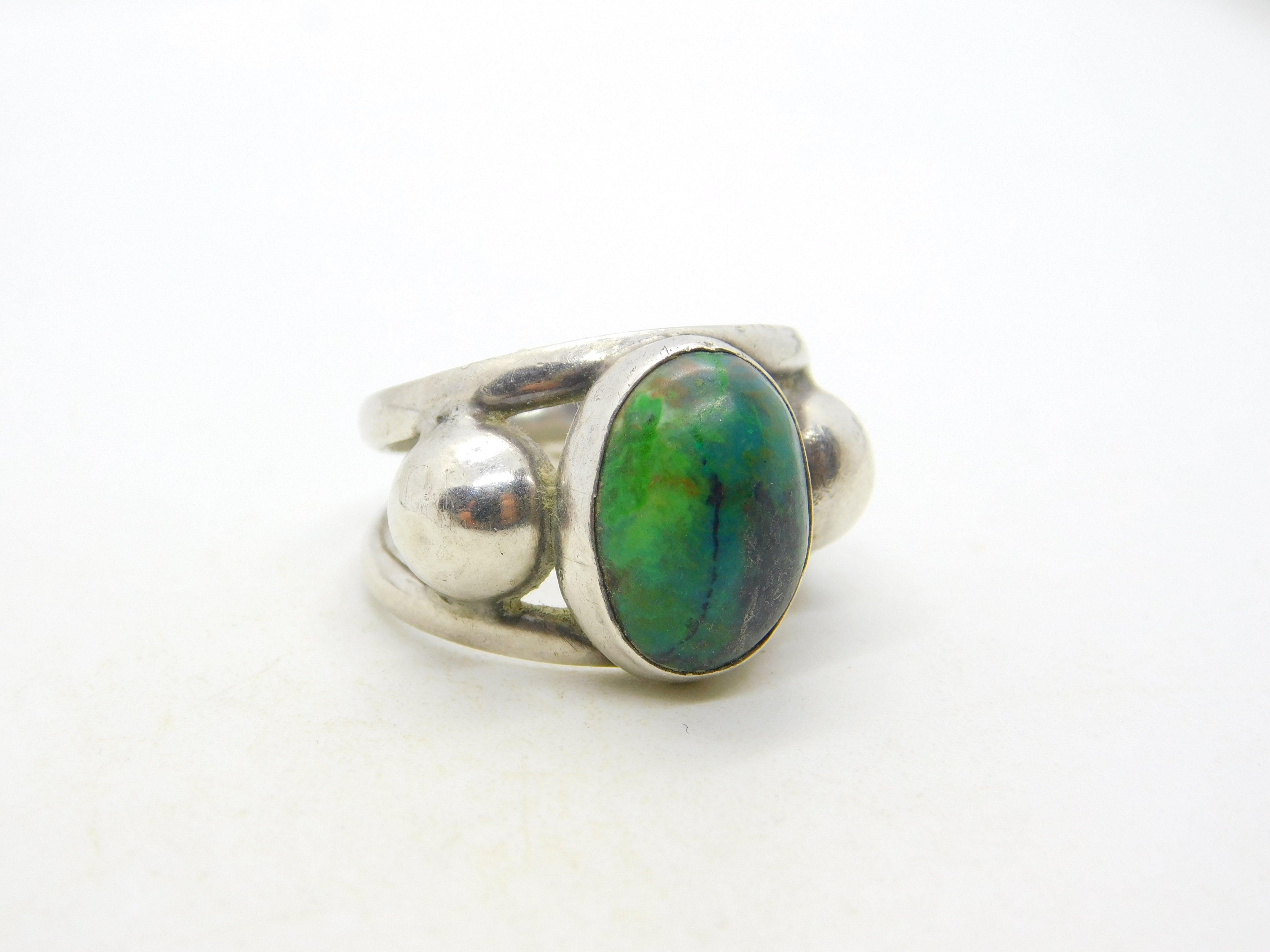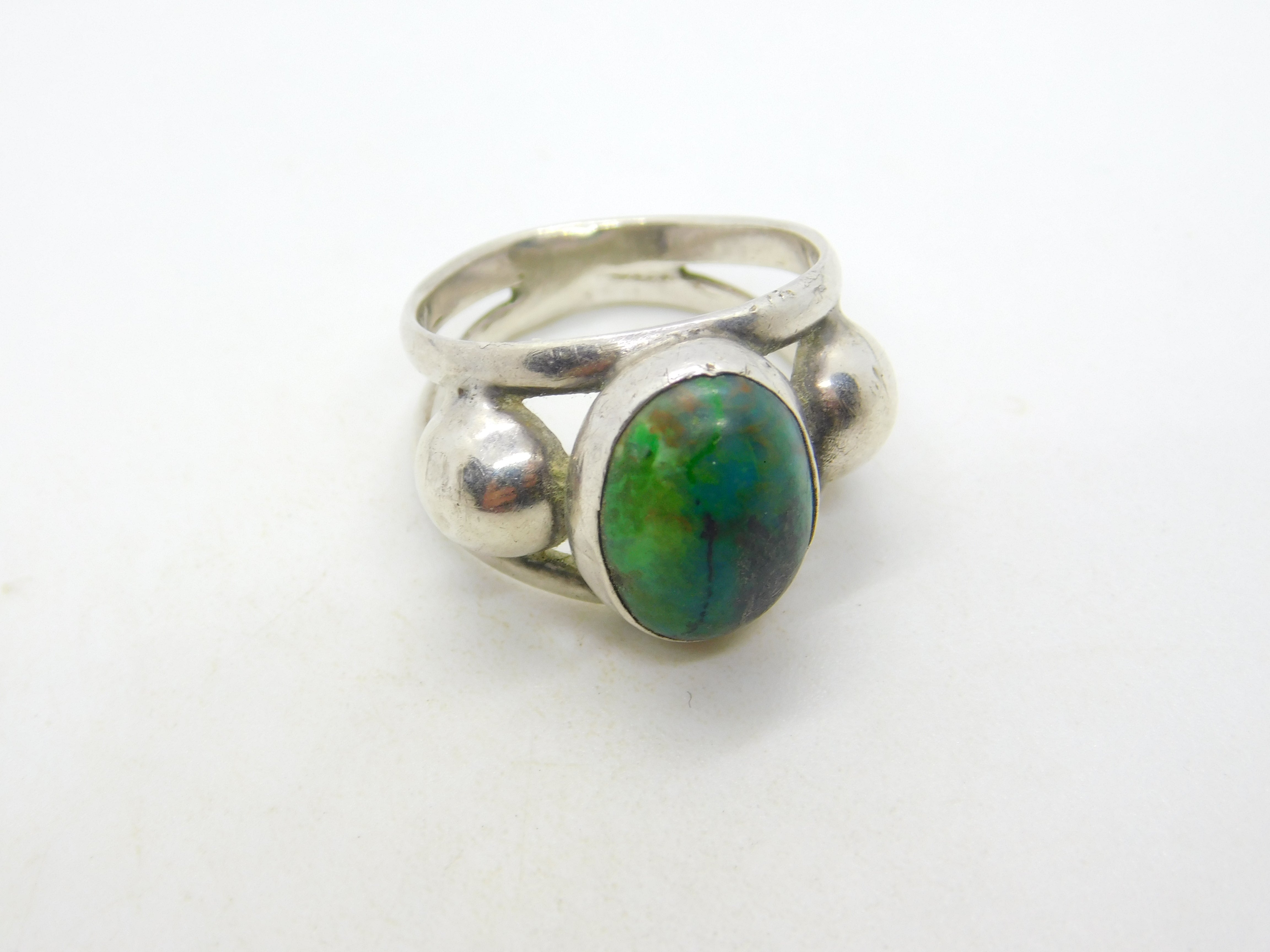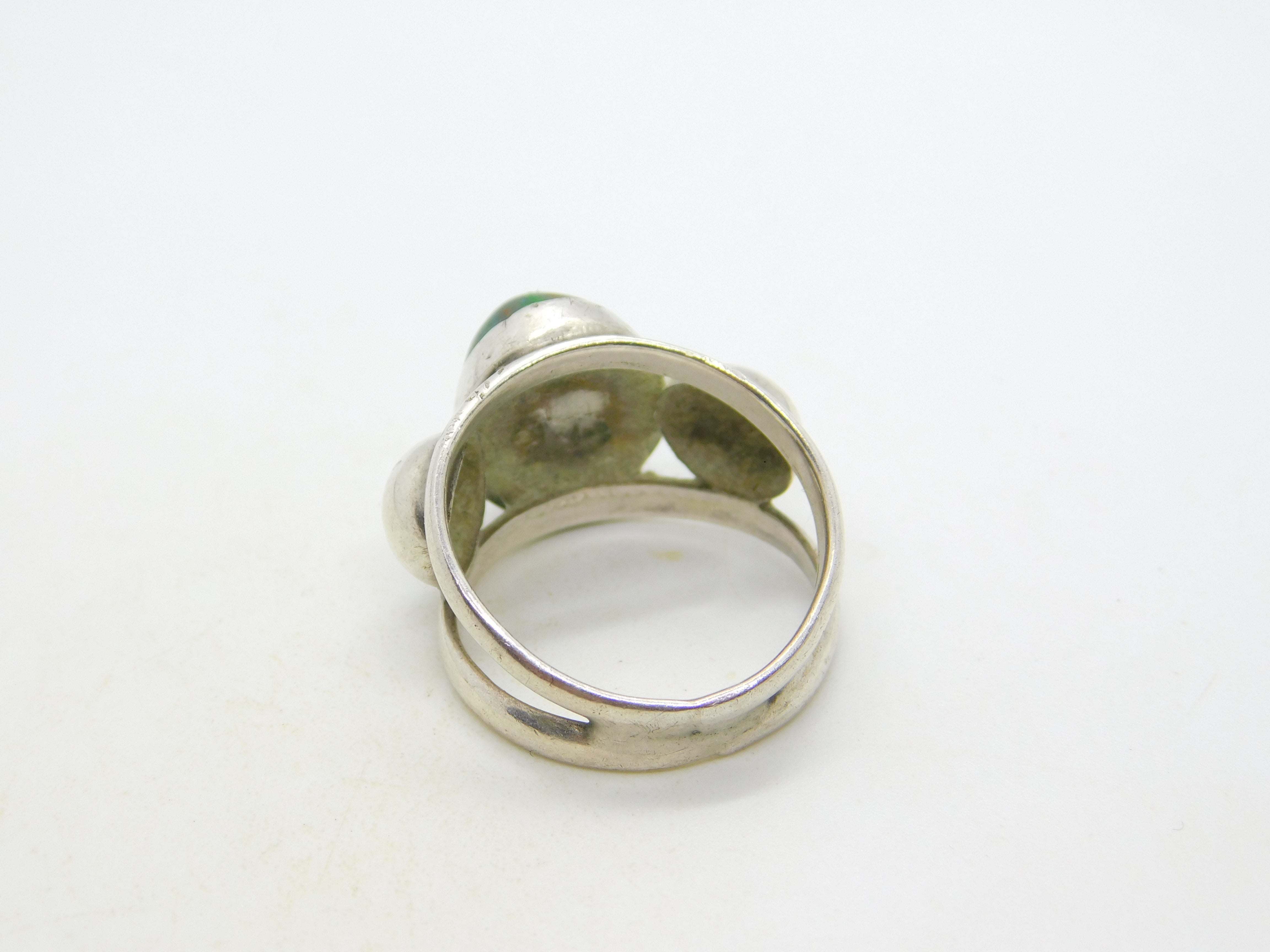 Mexican Studio Jewellery Sterling Silver Cabochon Turquoise Dress Ring Vintage