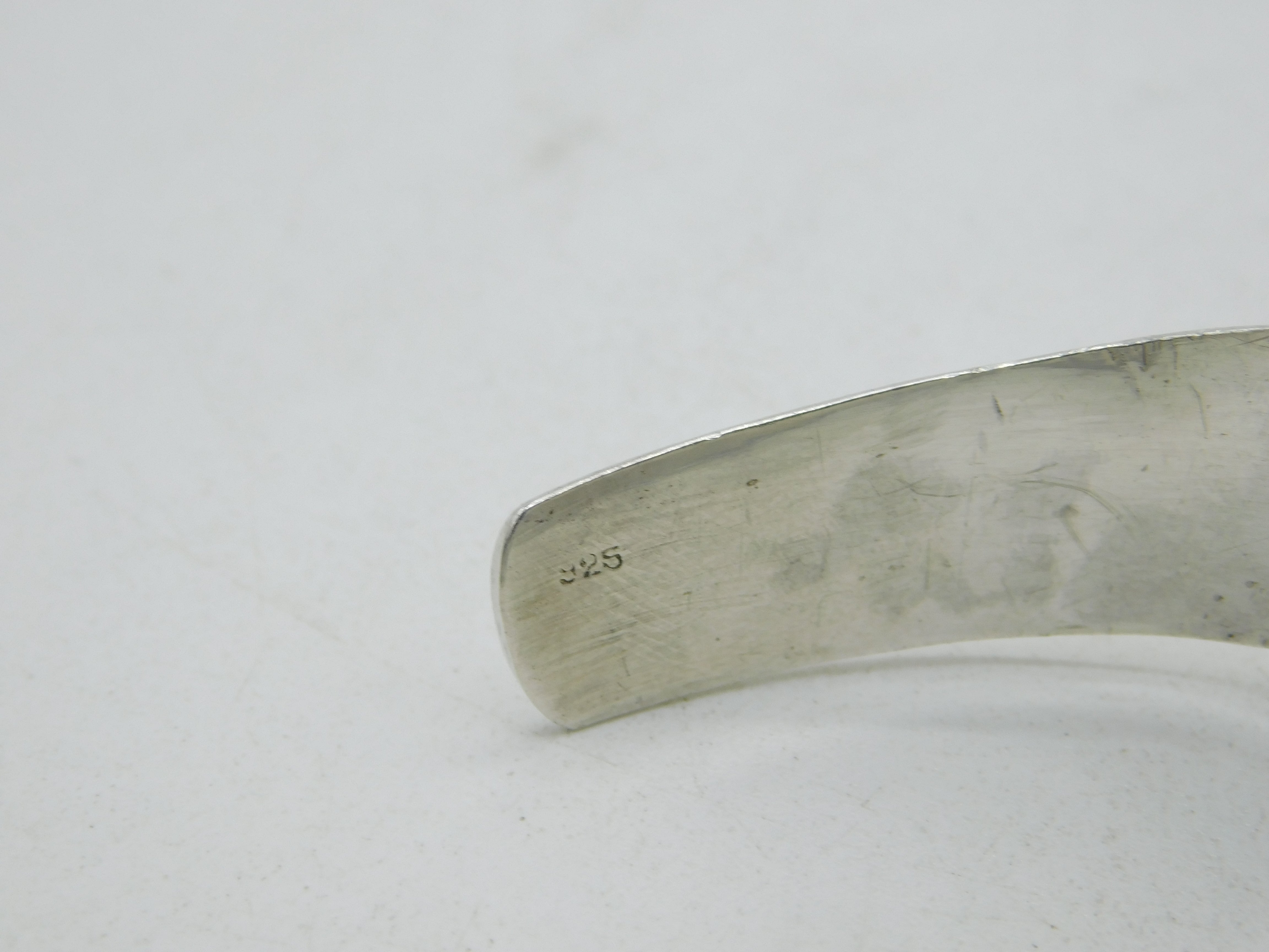 Mexican Studio Sterling Silver Turquoise Set Bangle Bracelet Vintage c1970