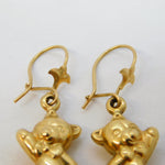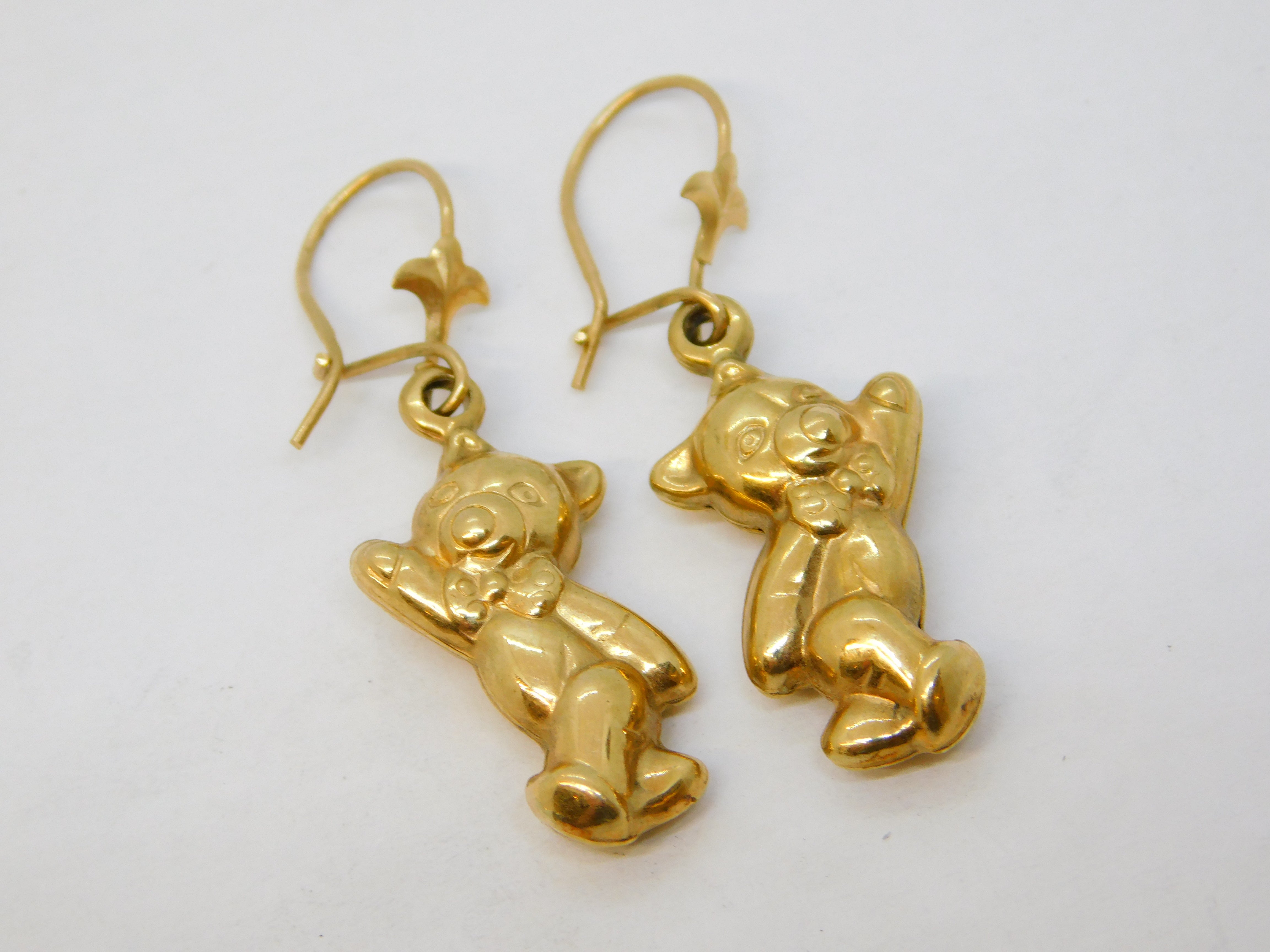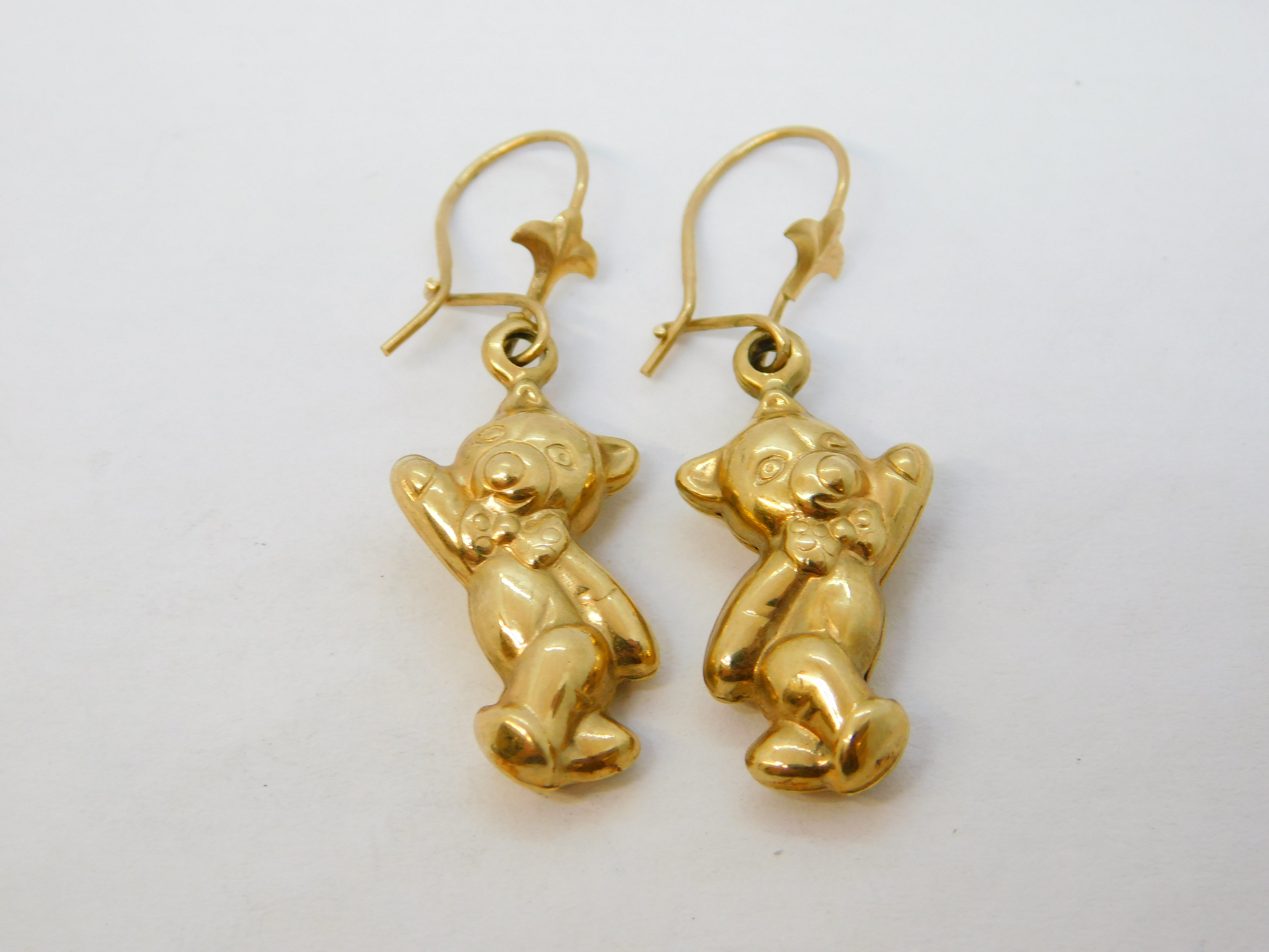 Pair of 9ct Yellow Gold Happy Teddy Bear Hook Earrings Vintage 2007 Sheffield