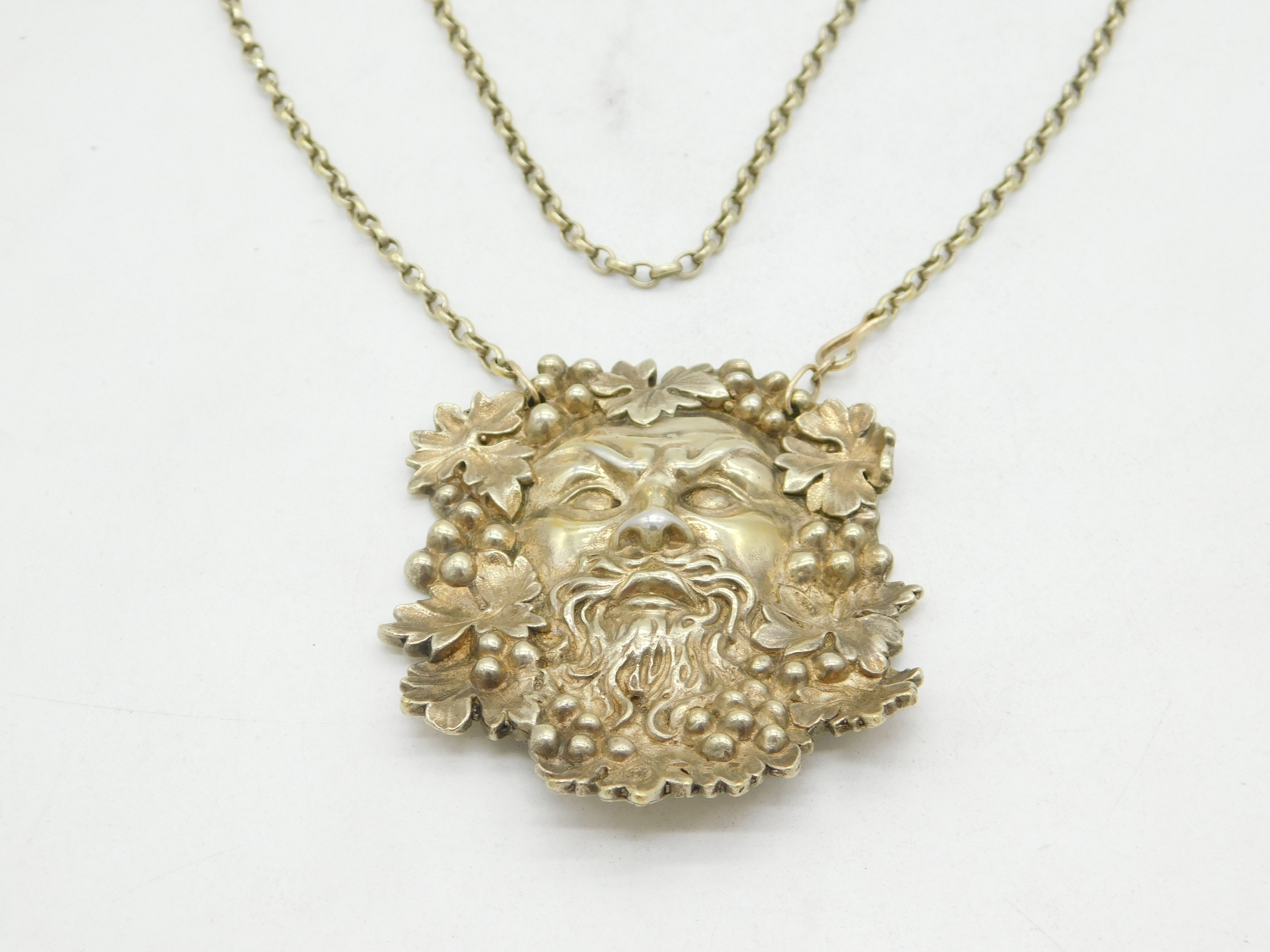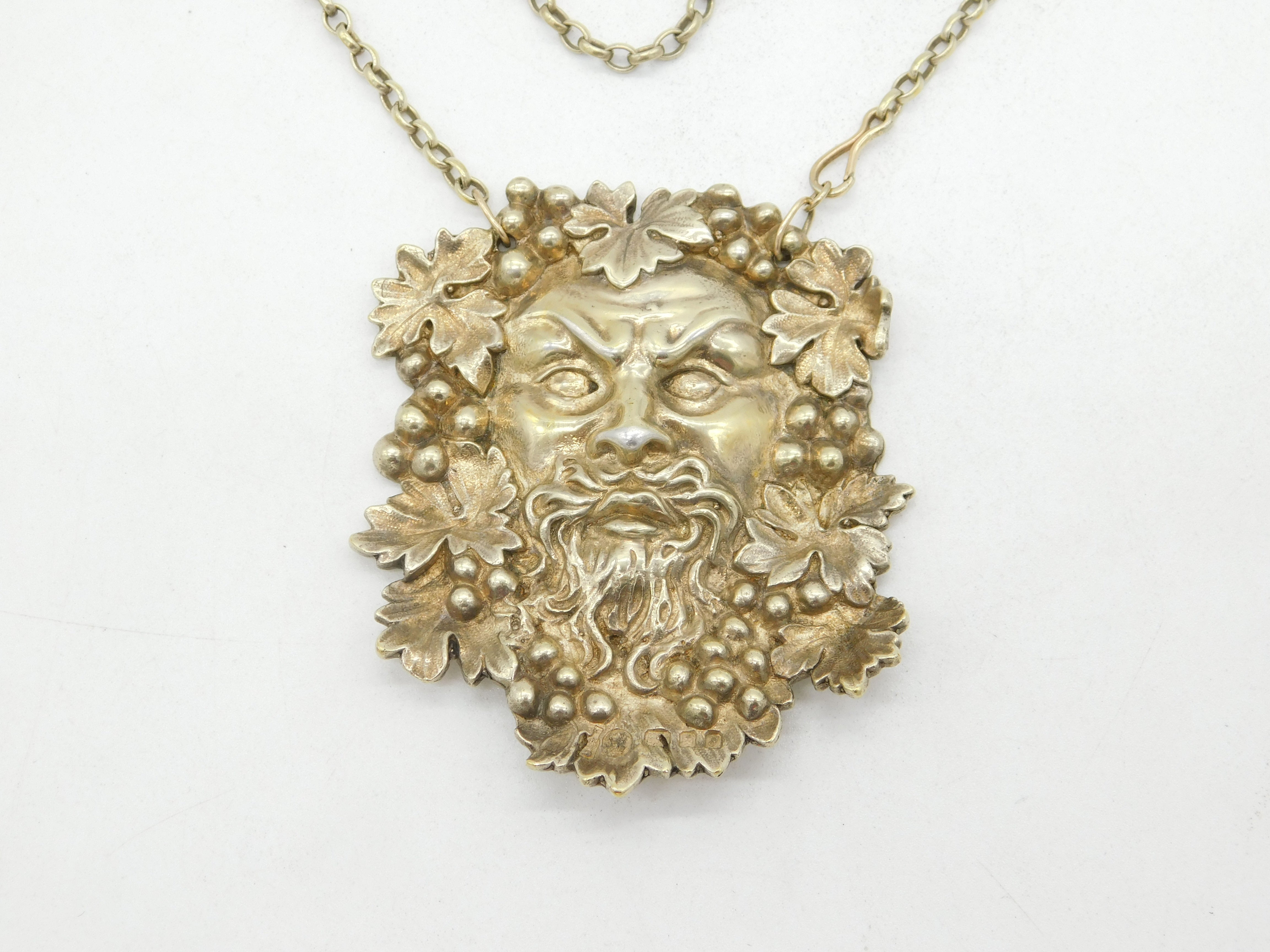 Sterling Silver Bacchus God of Wine Medallion Necklace Vintage 1973 London