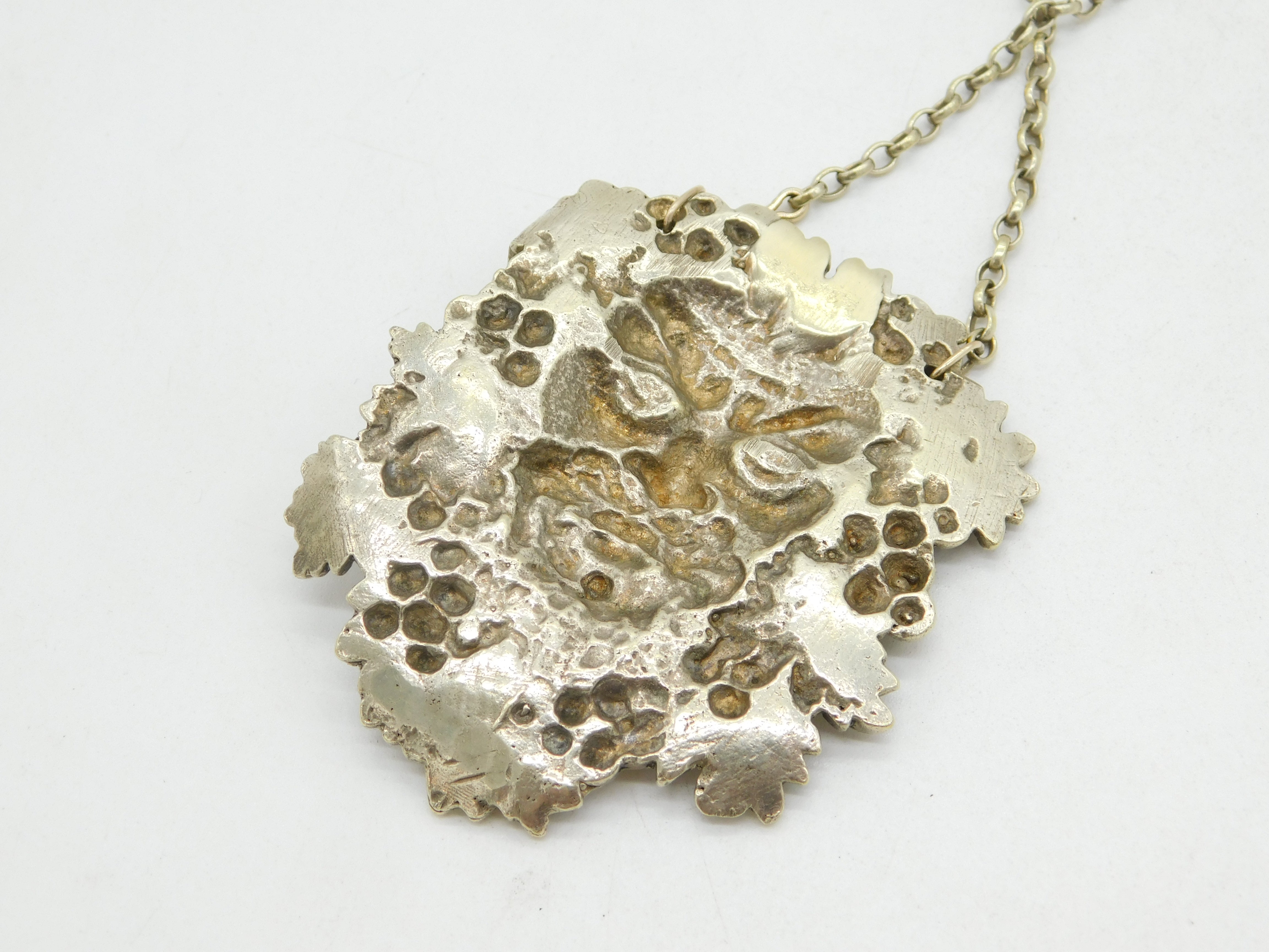 Details: A fantastic and wonderfully designed vintage large cast sterling silver medallion pendant necklace depicting Bacchus the classical god of wine, created for the International Wine & Food Society hallmarked London 1973 by Michael Wyard Druitt, alongside prince of Wales feathers stamp This is a wonderful item that would make a perfect gift or addition to any collection. We are more than happy to provide XRF reports for items upon request.
