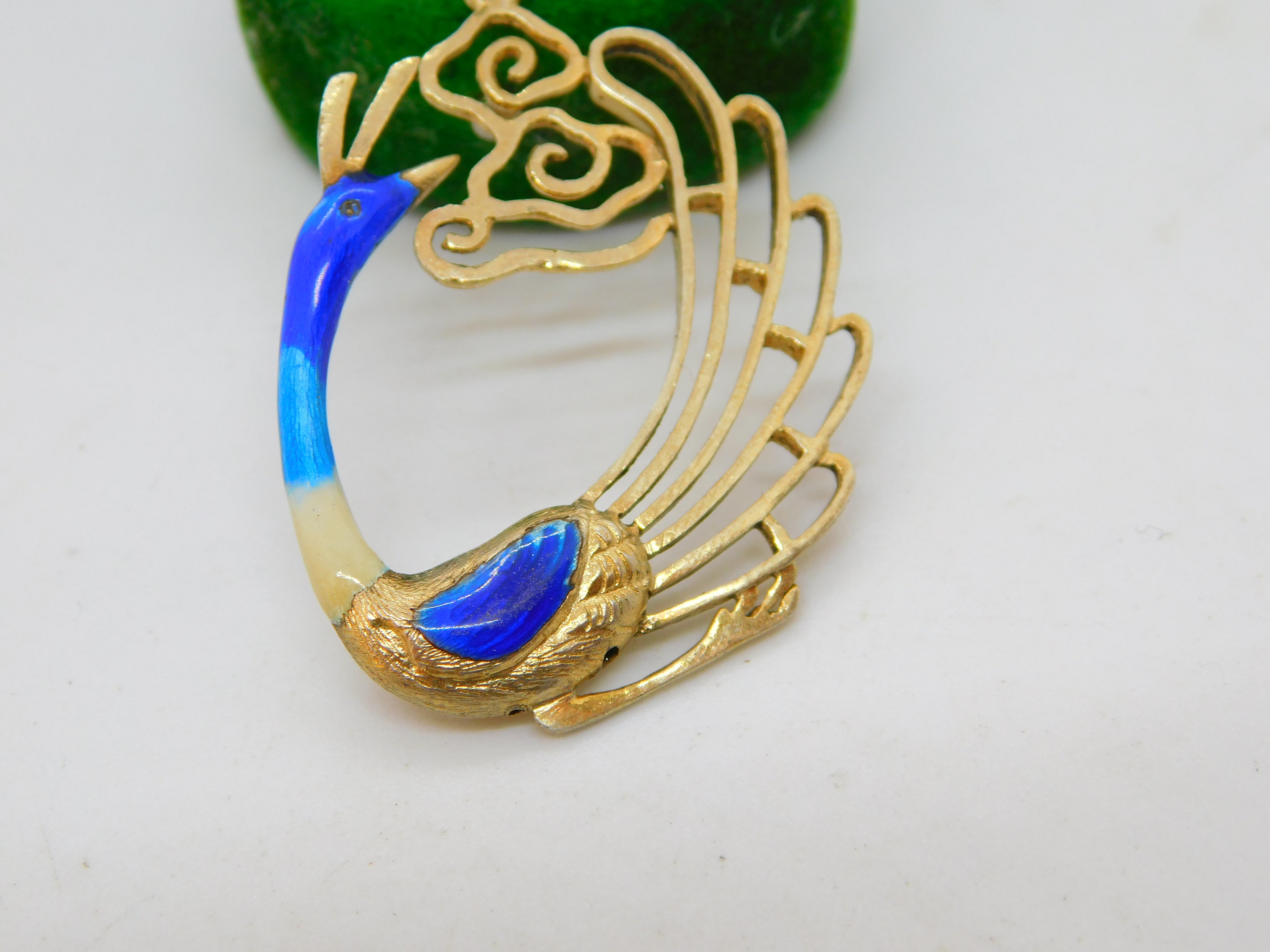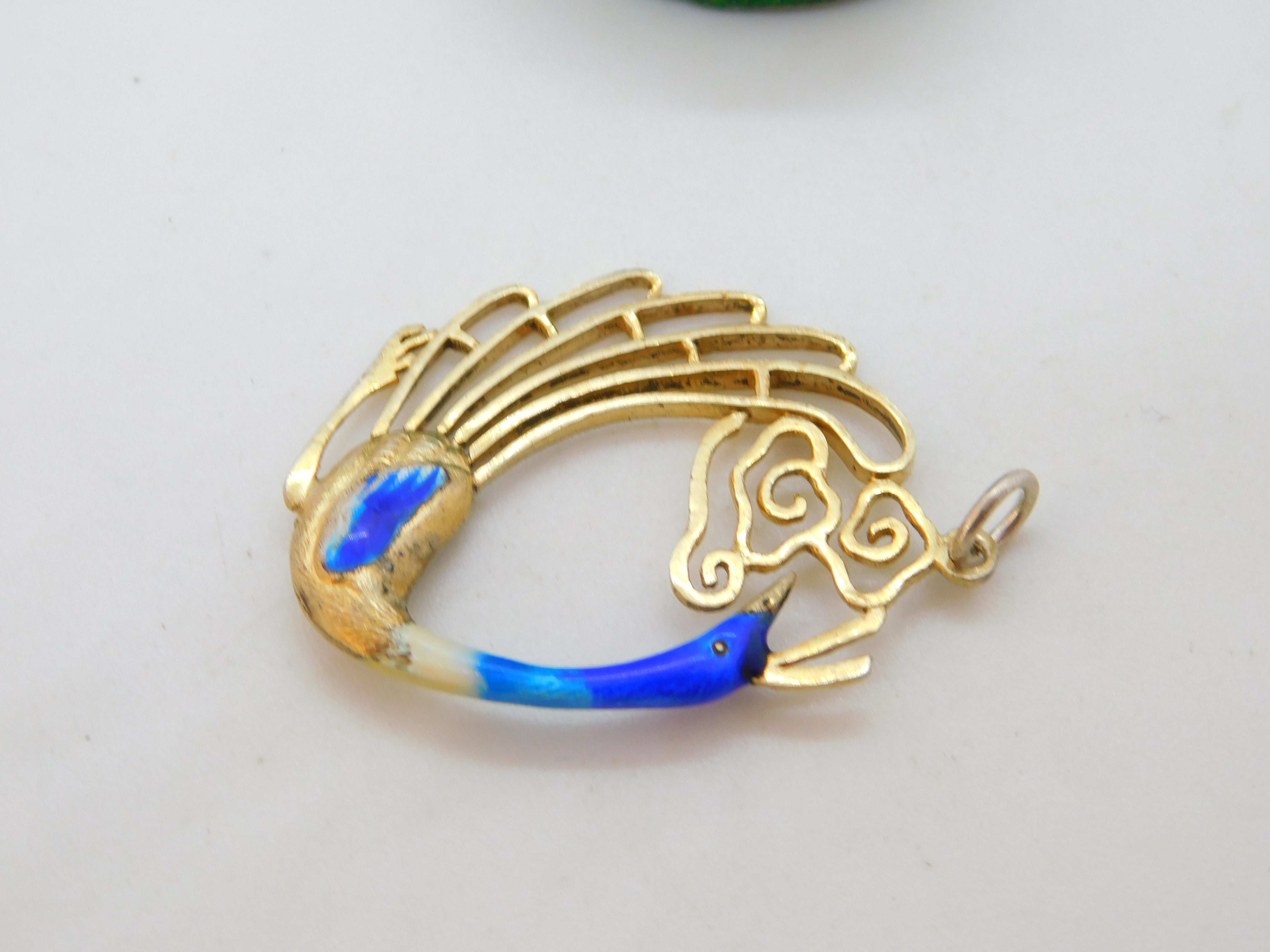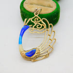 Sterling Silver Gilt & Colourful Enamel Peacock Drop Pendant Vintage c1980