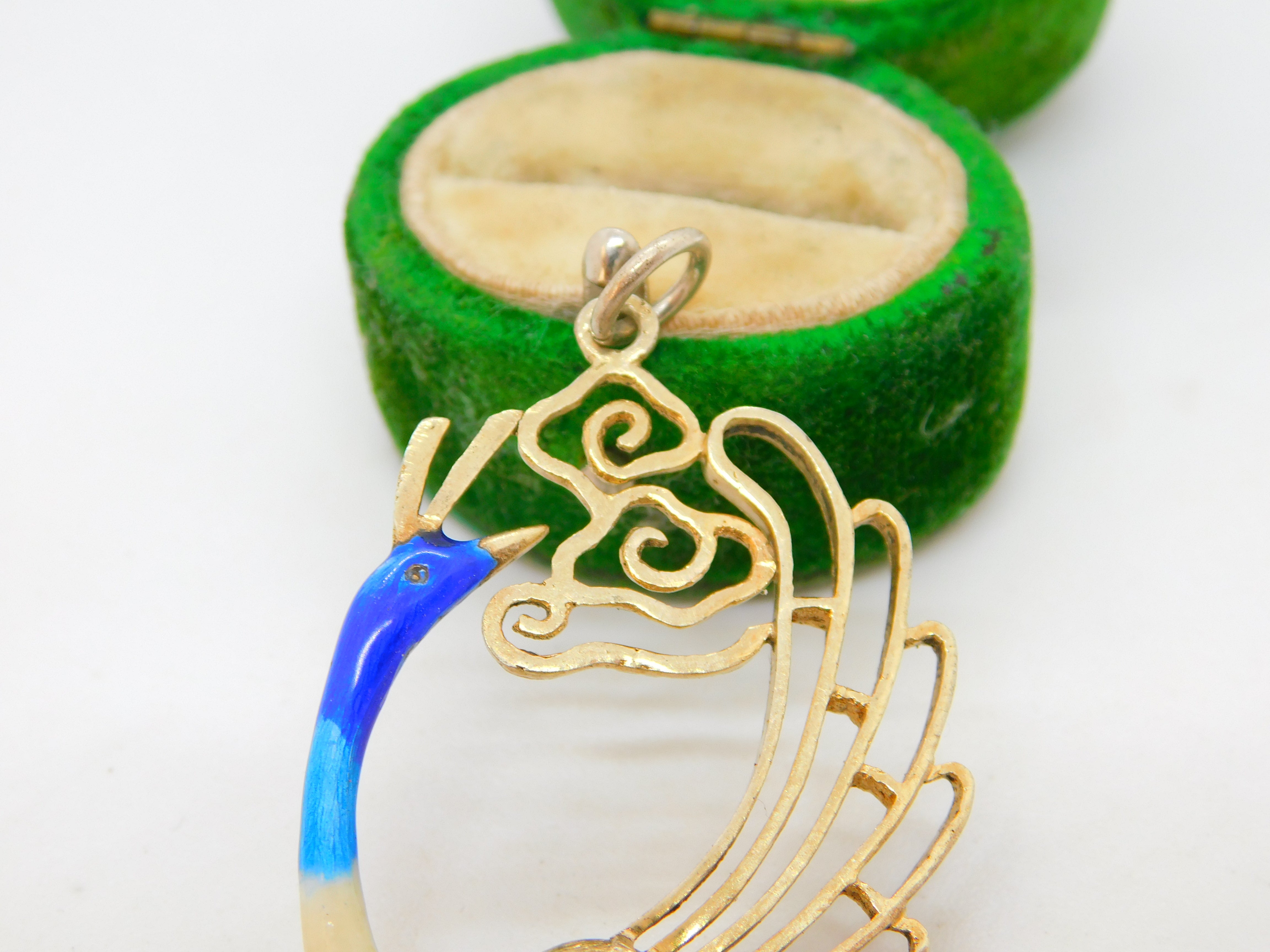 Details: A fantastic and wonderfully designed vintage sterling silver gilt & colourful enamel peacock drop pendant with lovely detailing c1980, the silver has been XRF tested as it is unmarked. This is a wonderful item that would make a perfect gift or addition to any collection. The BOX pictured is for PRESENTATION ONLY and is NOT included in the listings but used to frame the pictures unless specifically stated otherwise.