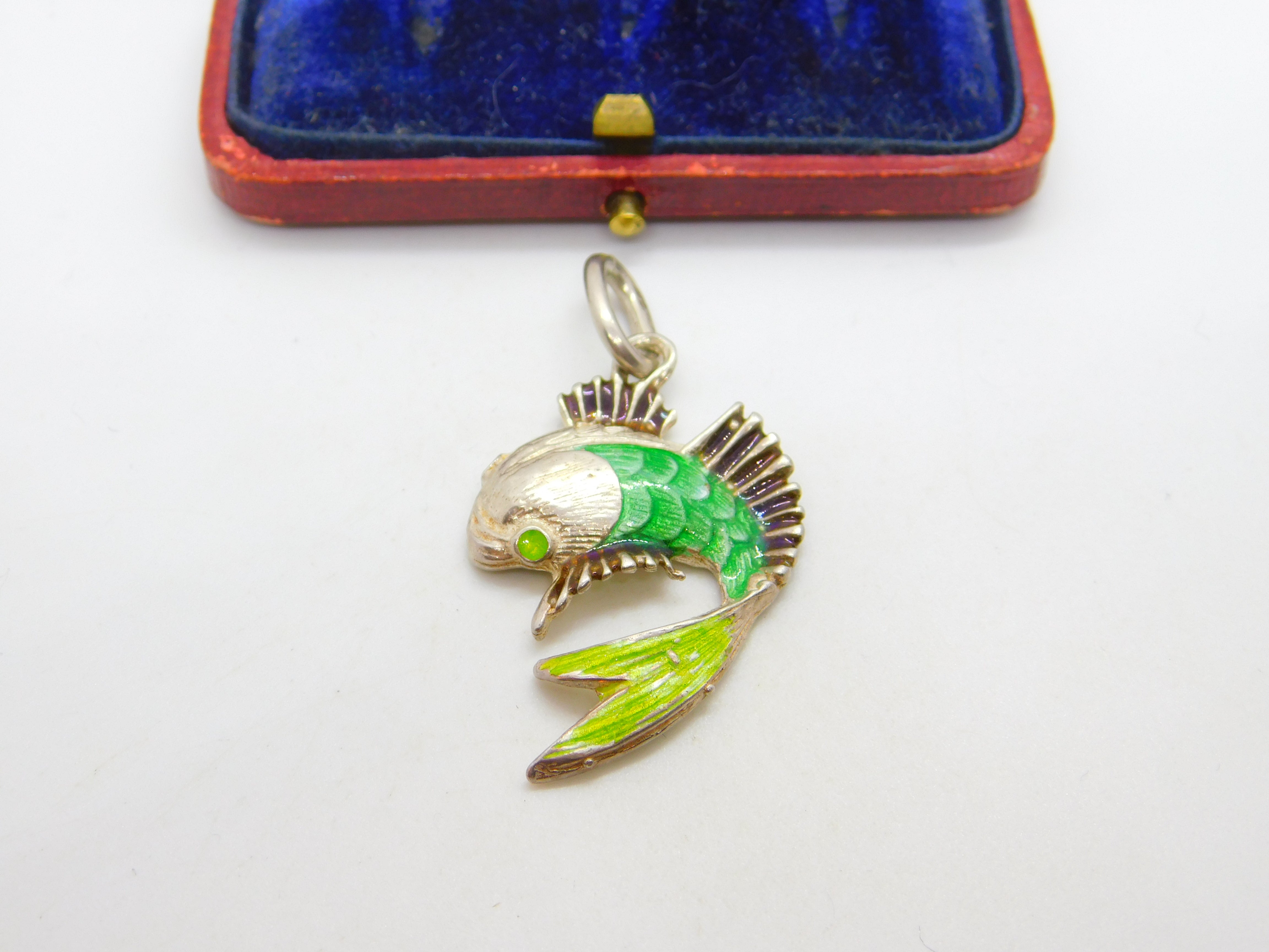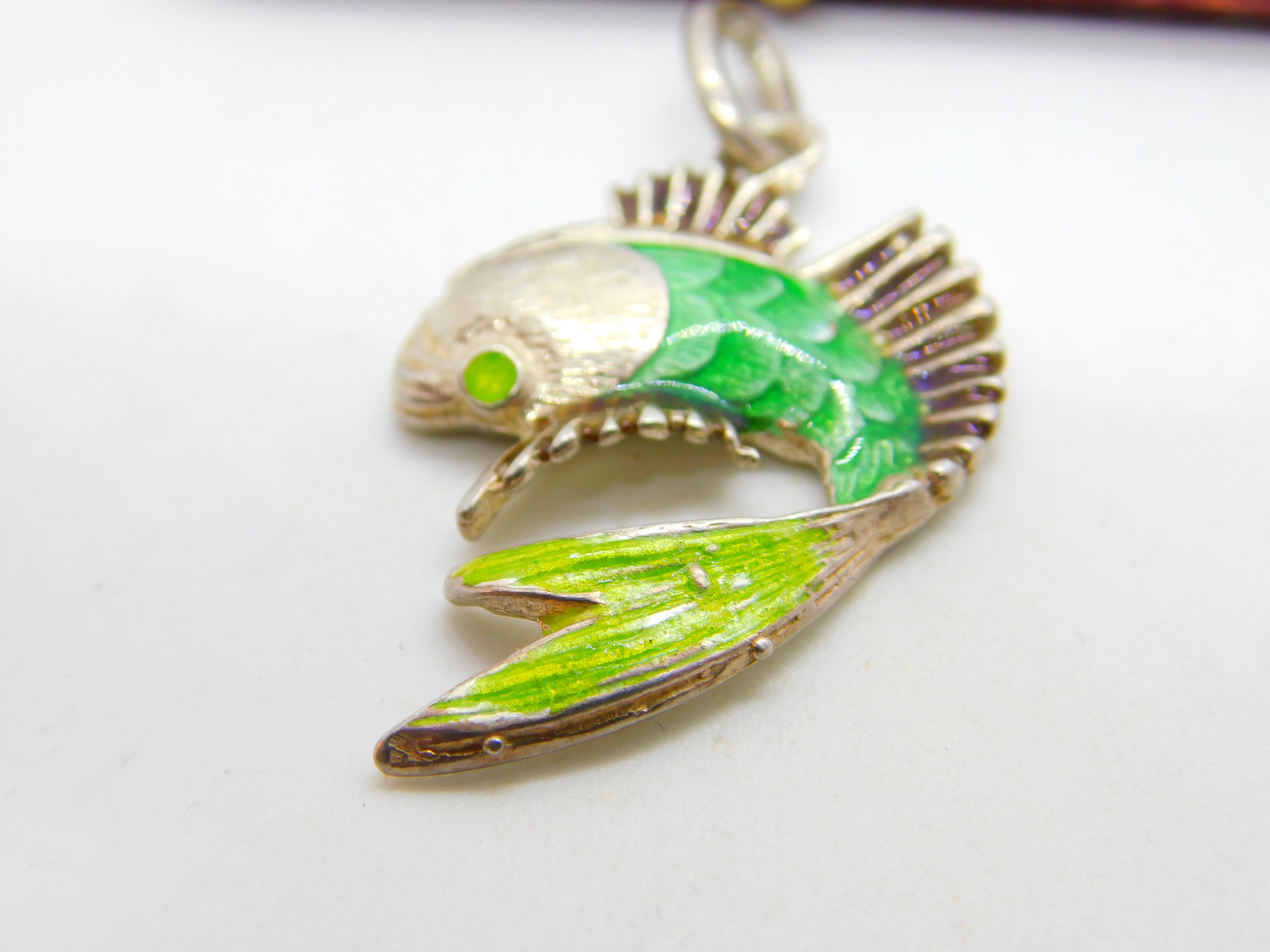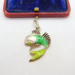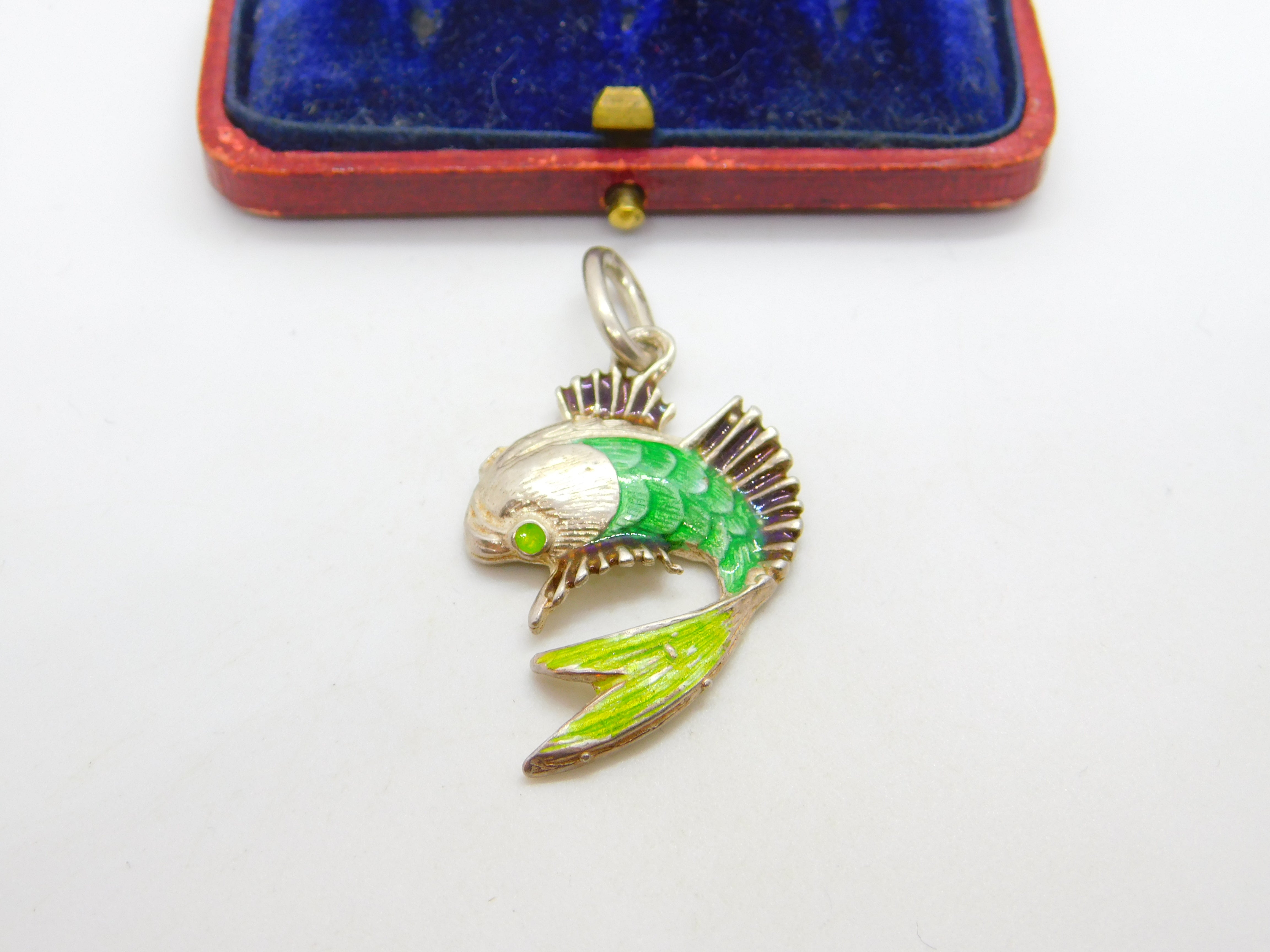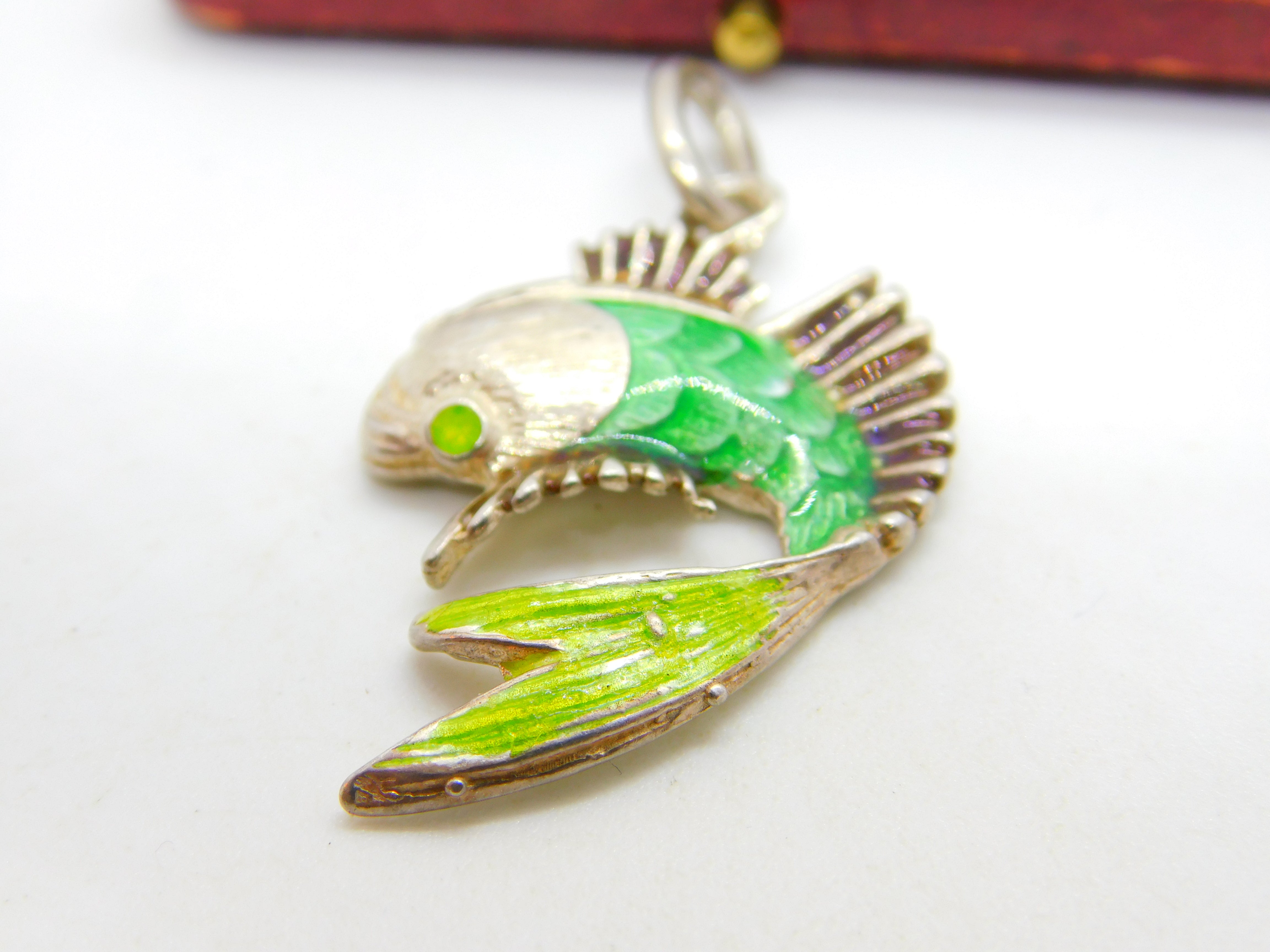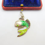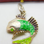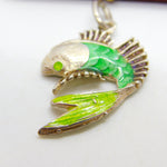 Sterling Silver & Green Enamel Tropical Fish Pendant Vintage c1980