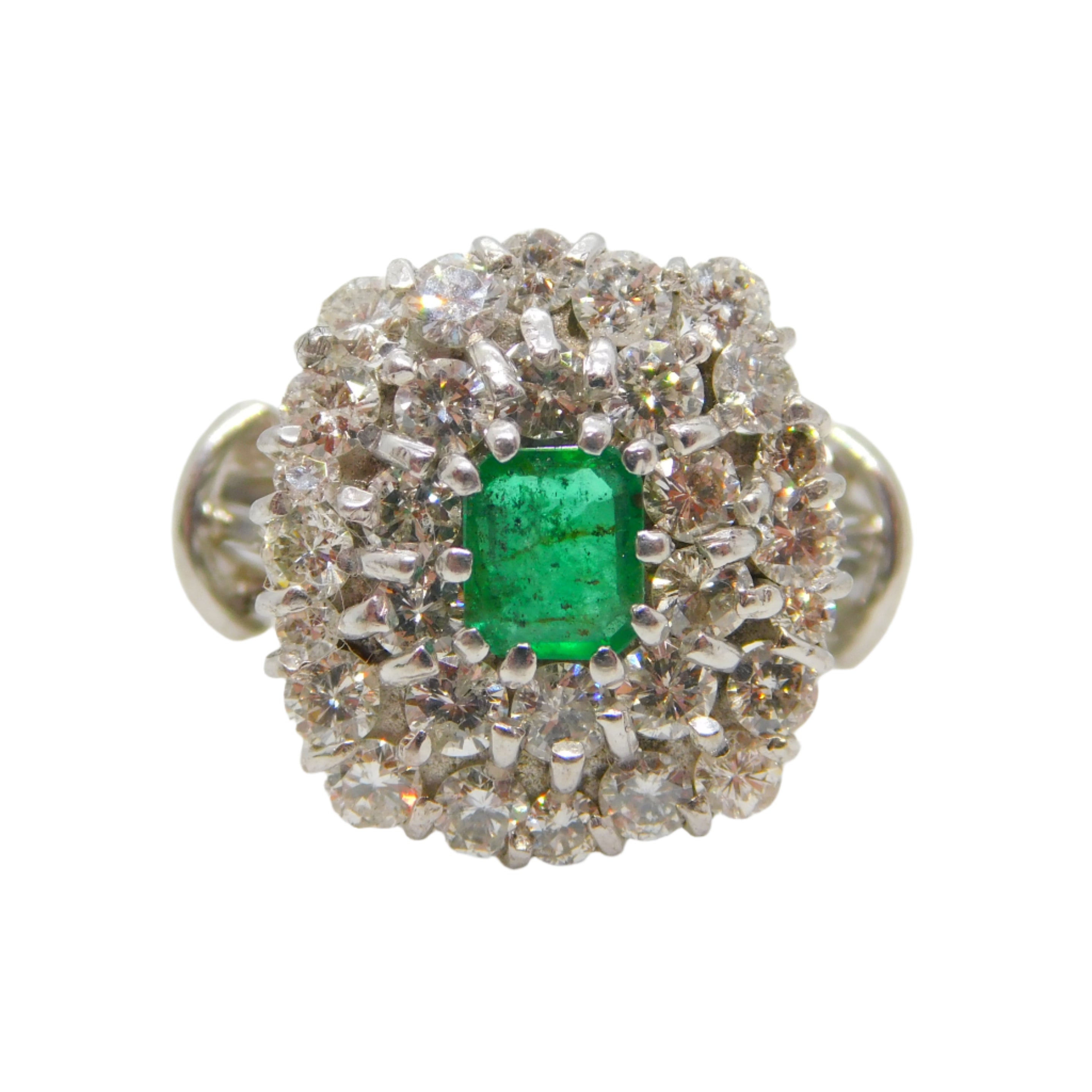 18ct White Gold, 1.5ct Diamond & Columbian Emerald Engagement Ring Vintage c1990