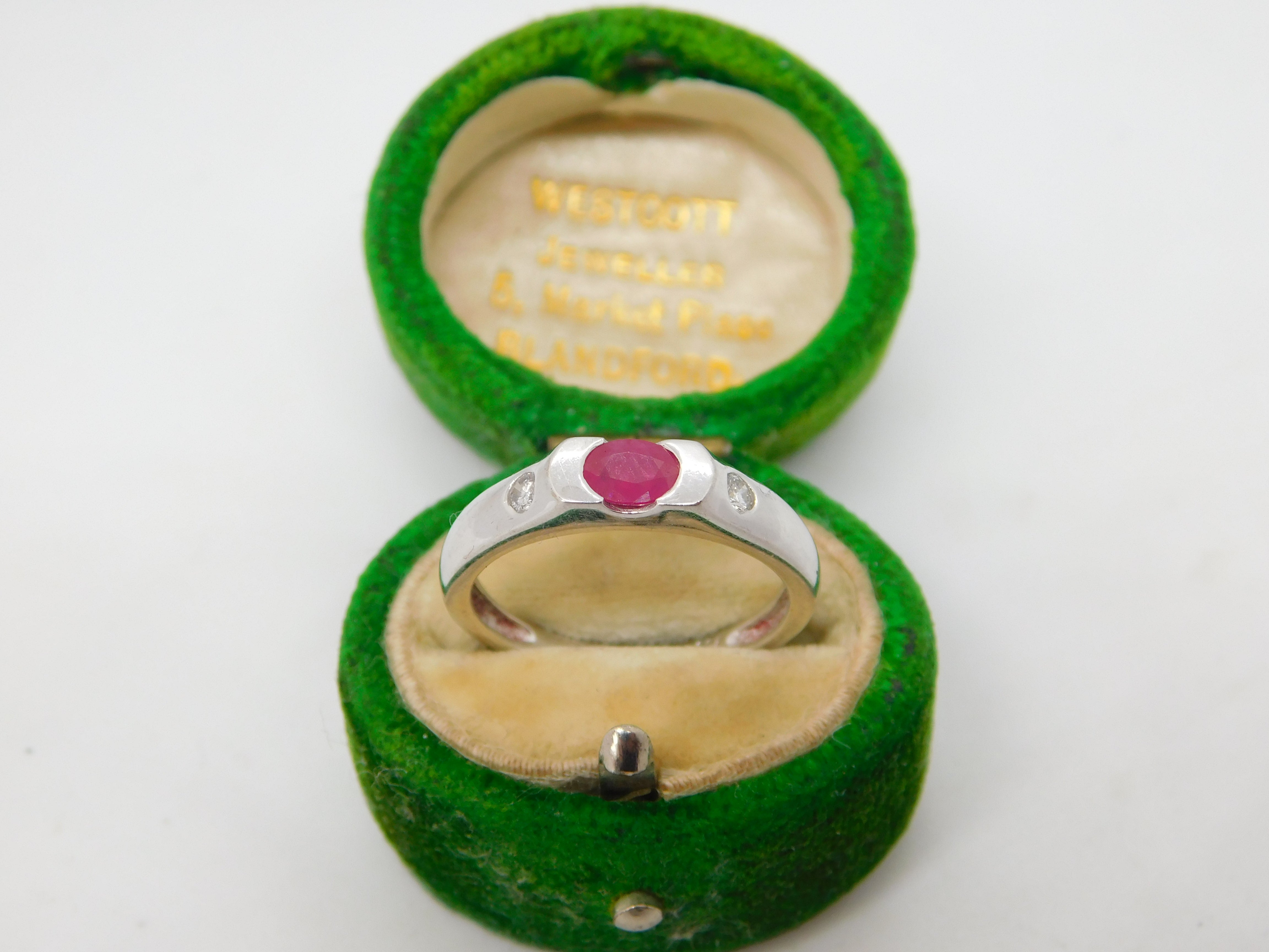 9ct White Gold, 0.75ct Ruby & Diamond Dress Ring Vintage 2007 Birmingham
