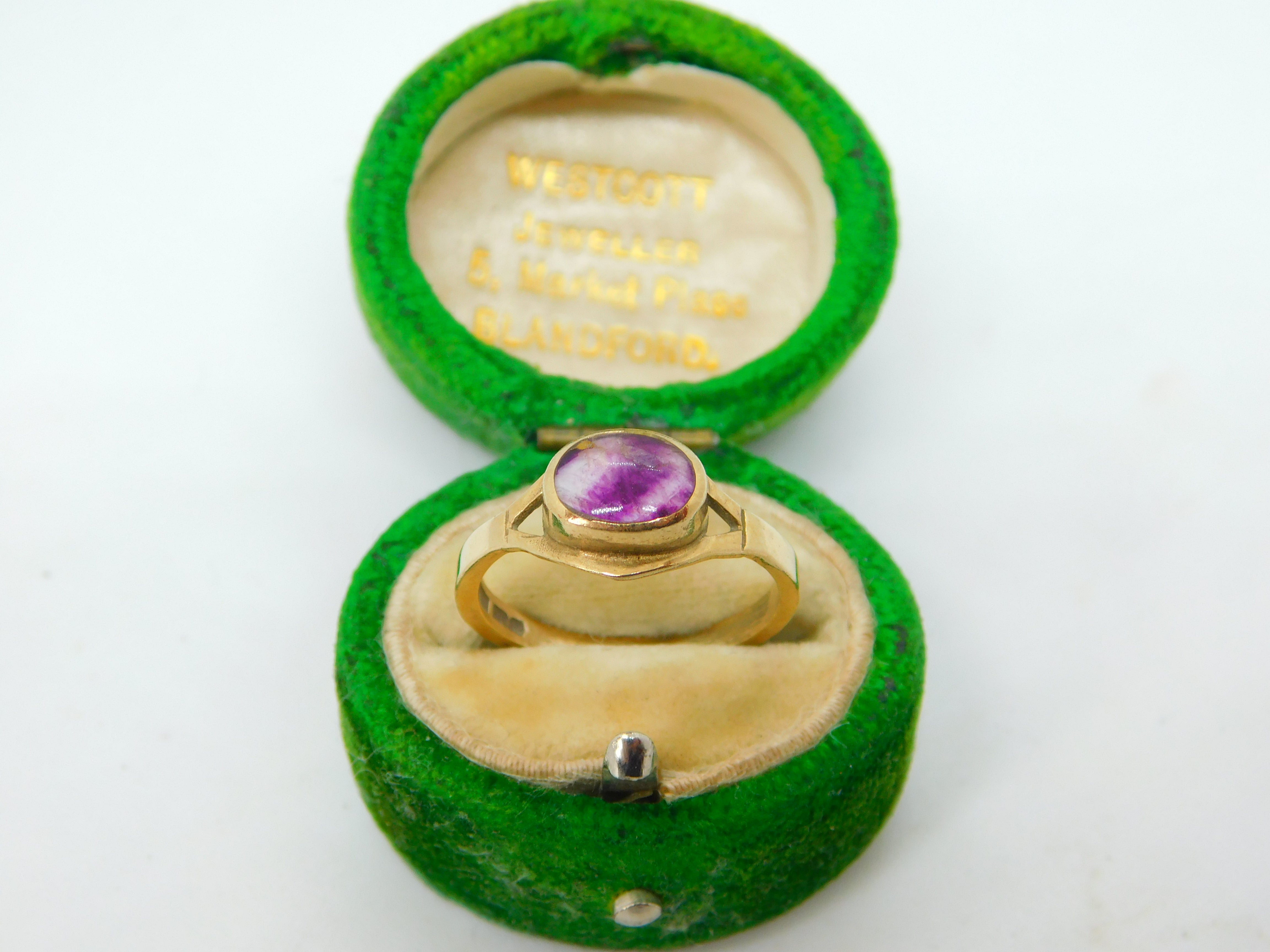 9ct Yellow Gold & Cabochon Derbyshire Blue John Band Ring Vintage c1980