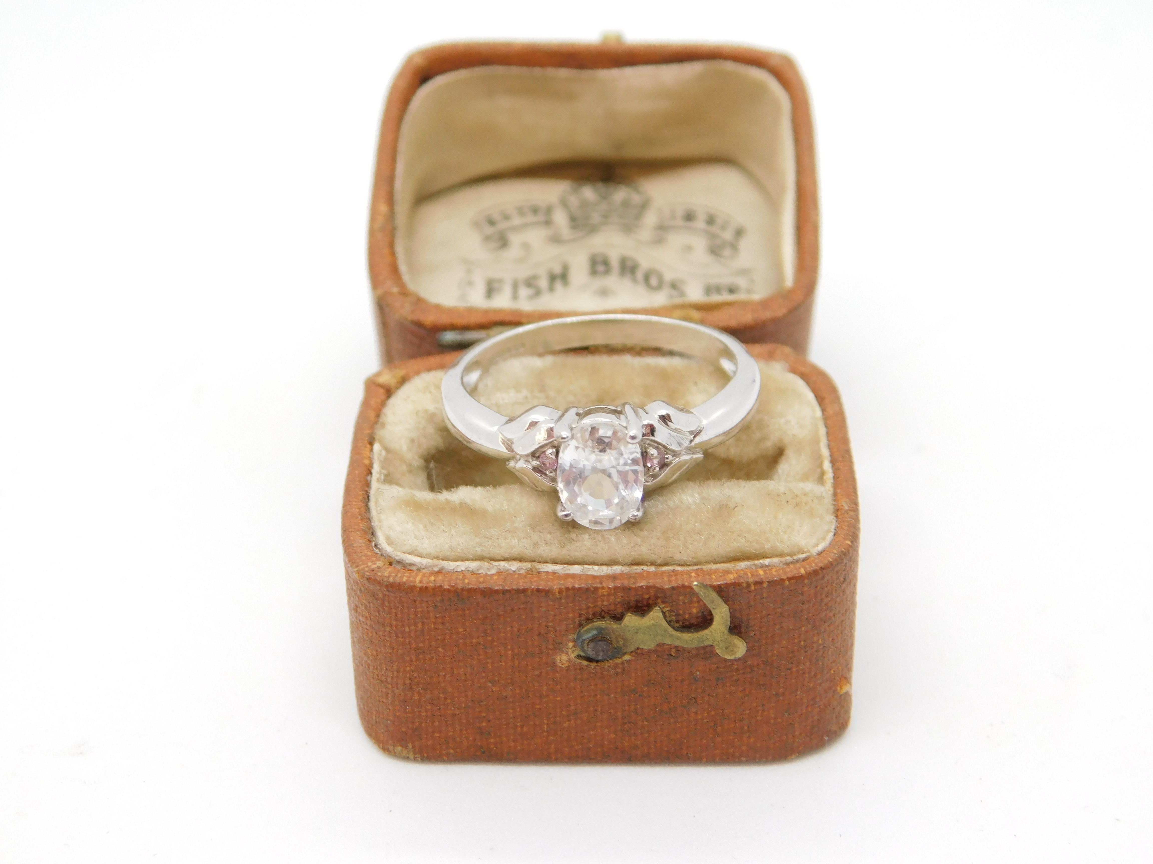 9ct White Gold Ice Zircon & Pink Sapphire Solitaire Ring Vintage c2000