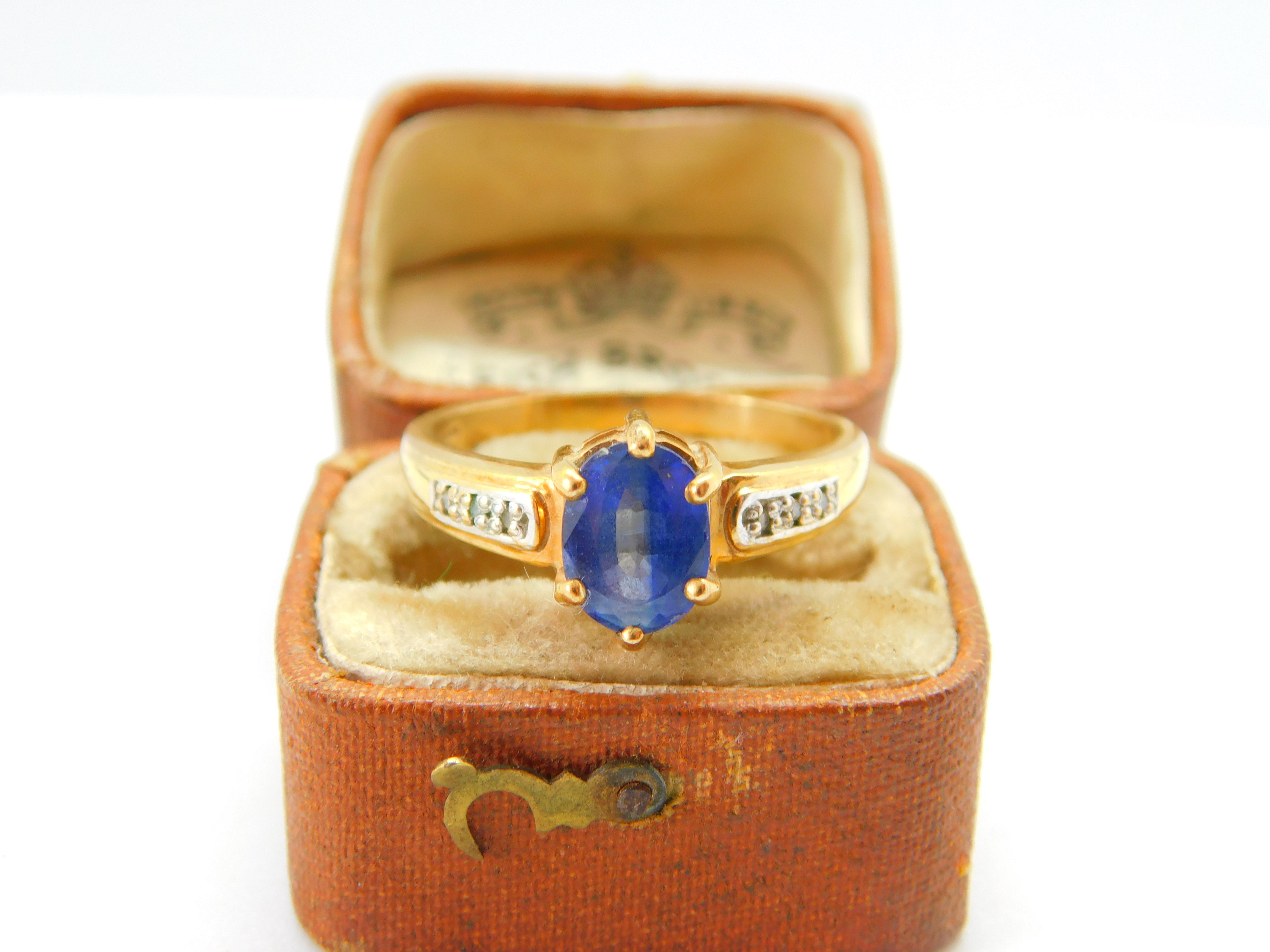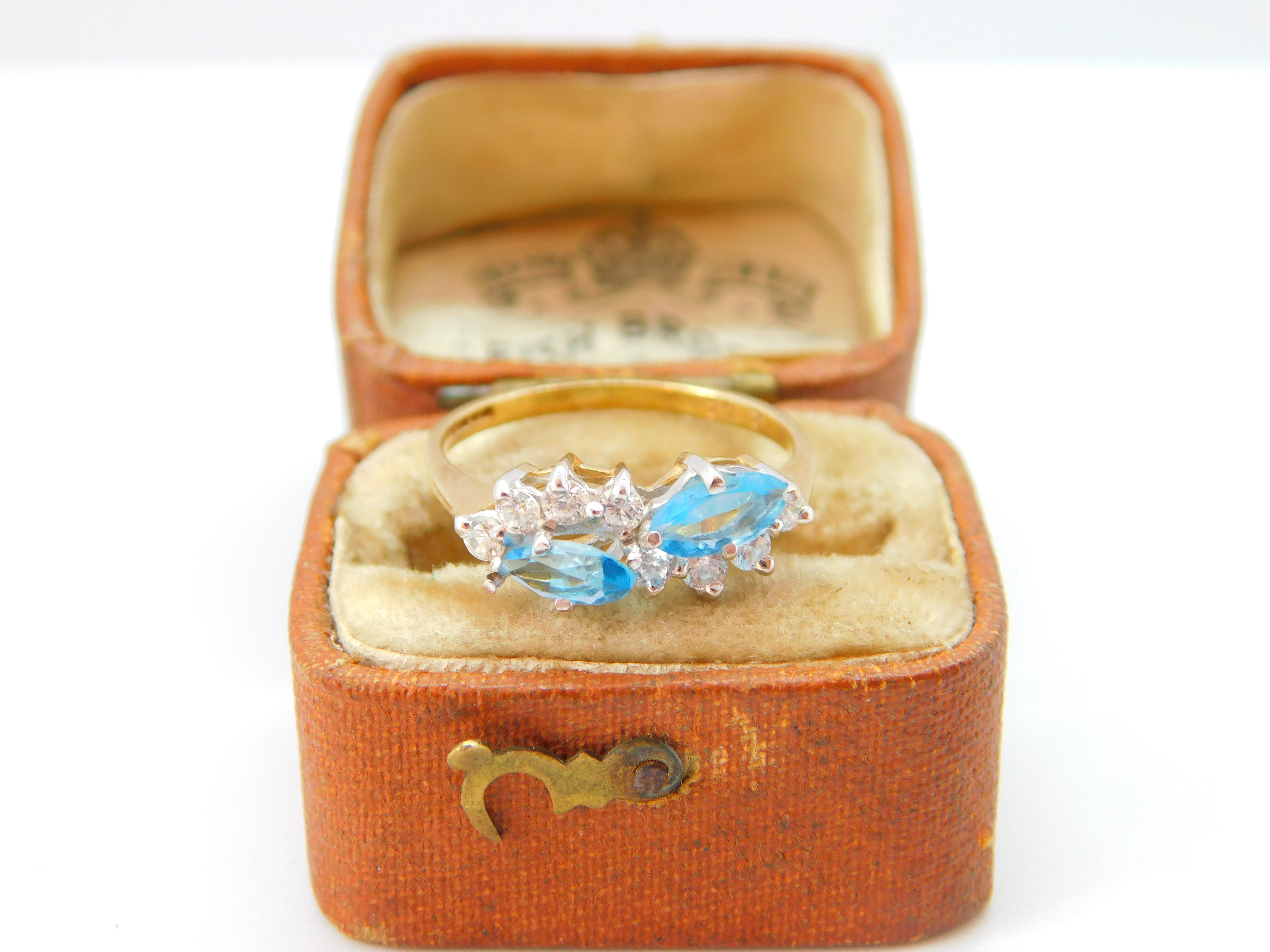 9ct Yellow Gold, Blue Spinel & Diamond Set Dress Ring Vintage 2007 Birmingham
