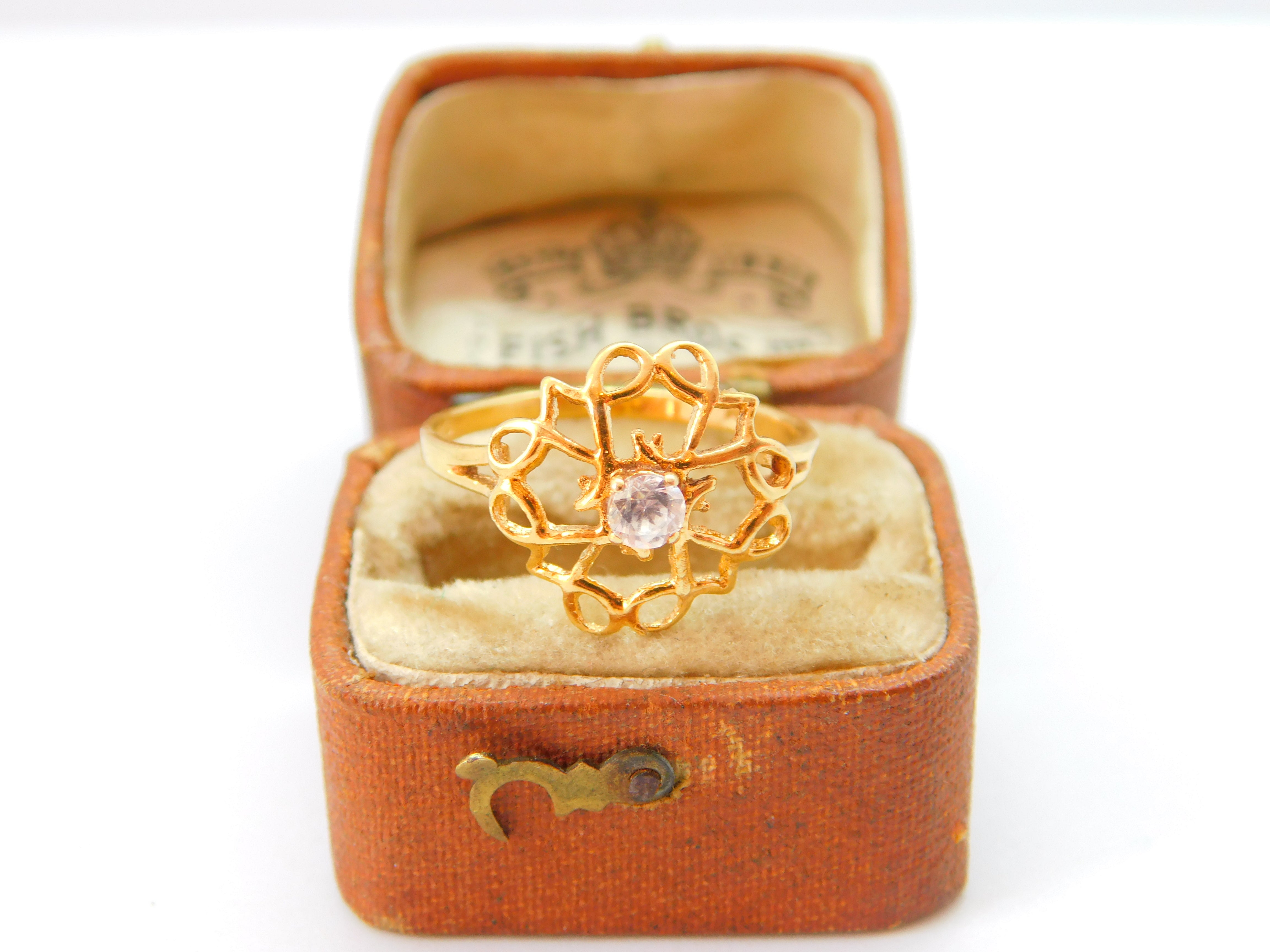 9ct Yellow Gold White Spinel Set Floral Dress Ring 1986 Birmingham Vintage