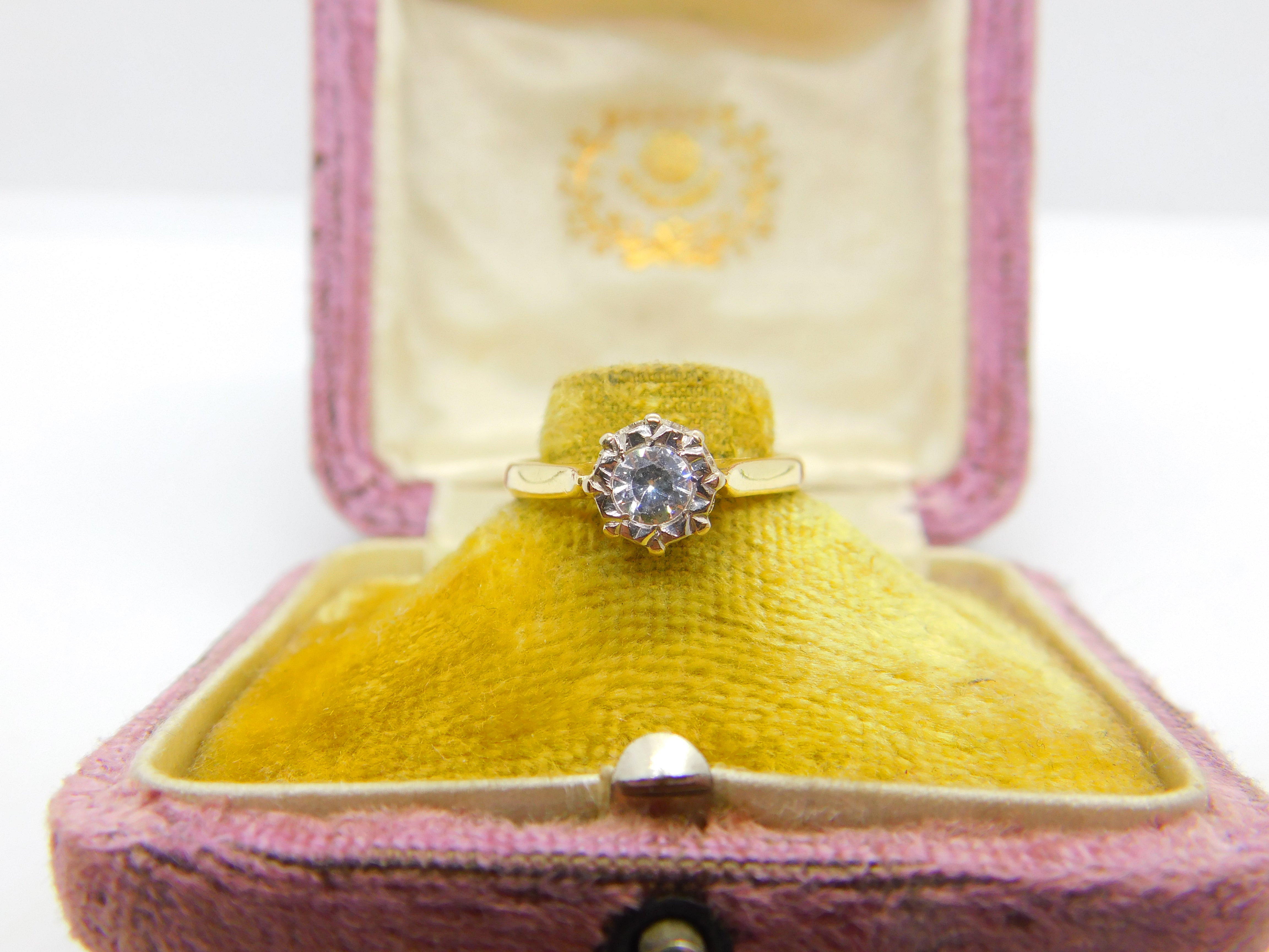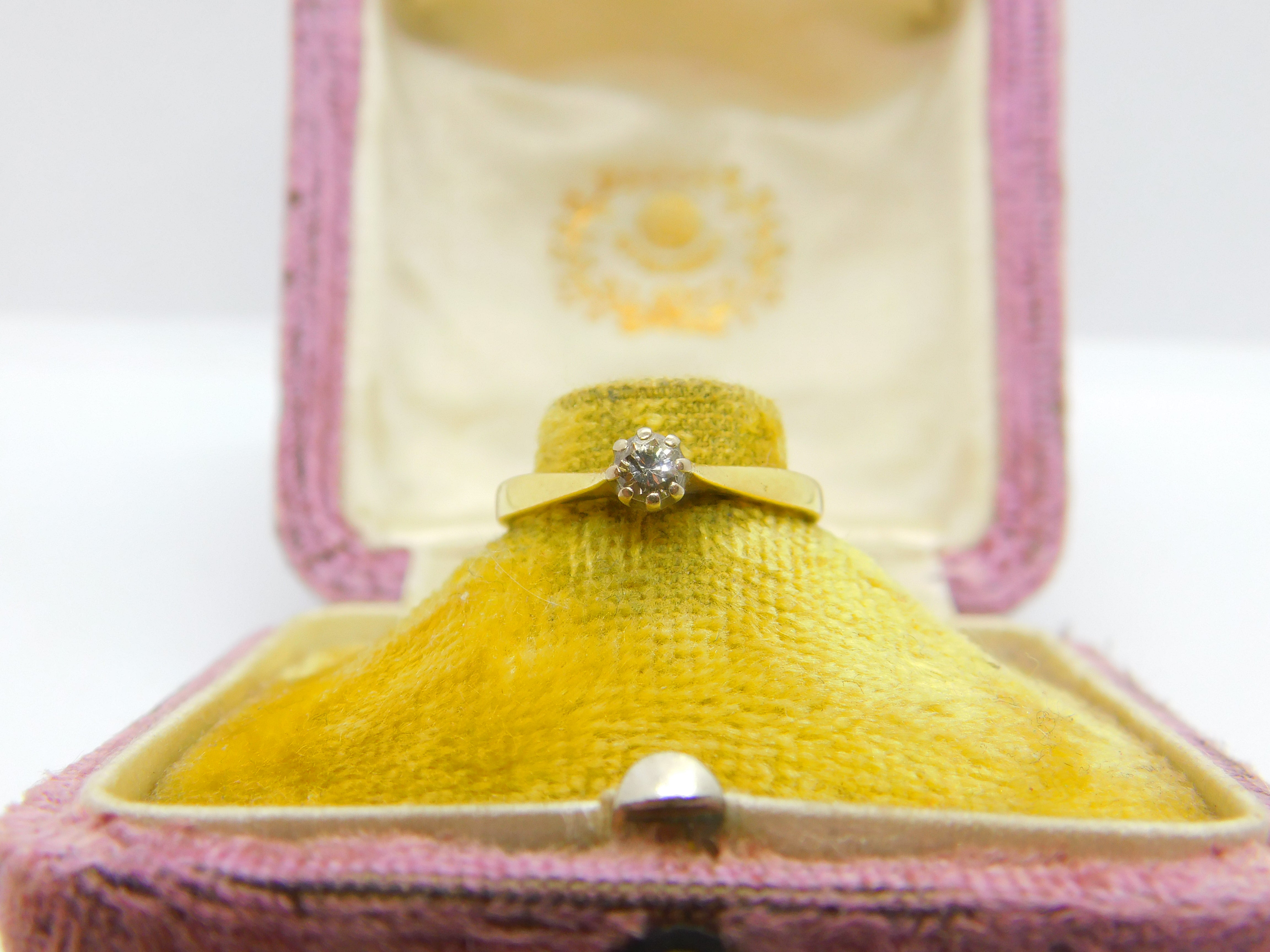 18ct Yellow Gold & 0.1ct Diamond Set Solitaire Ring Vintage c1970