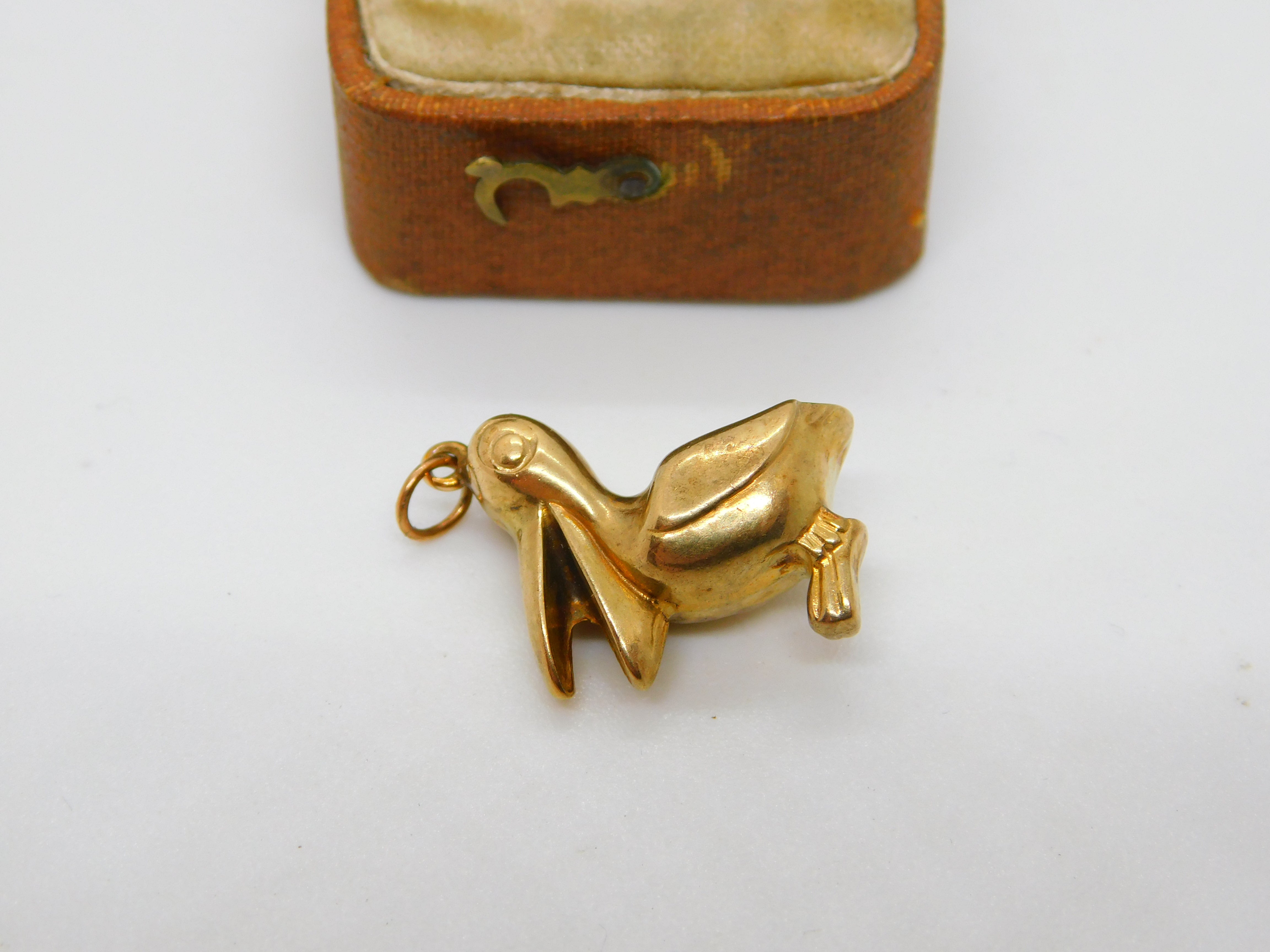 9ct Yellow Gold Guiness Style Pelican Charm Pendant Vintage 1958 London