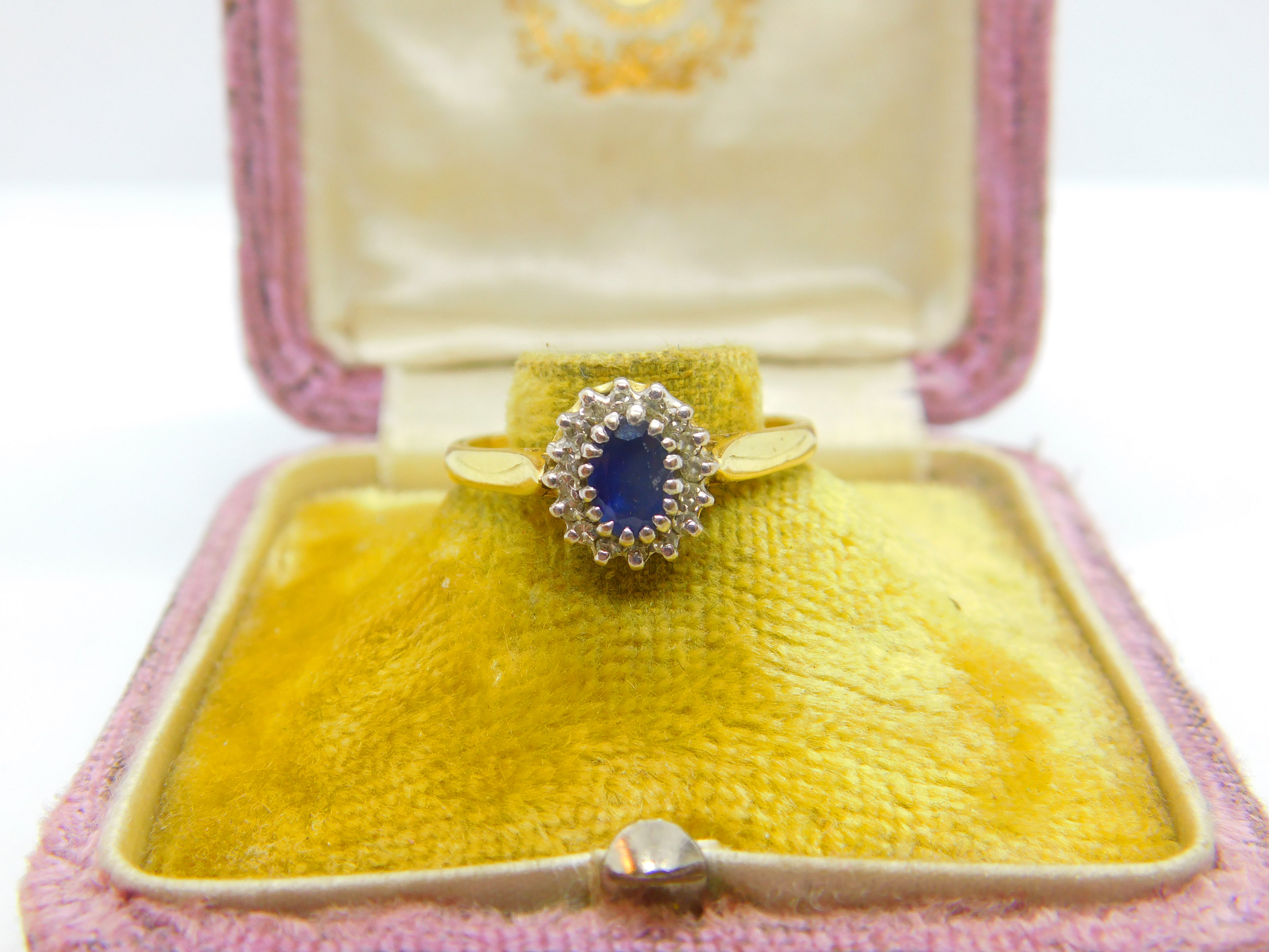 18ct Yellow Gold, Blue Sapphire & Diamond Floral Cluster Ring Vintage Birmingham