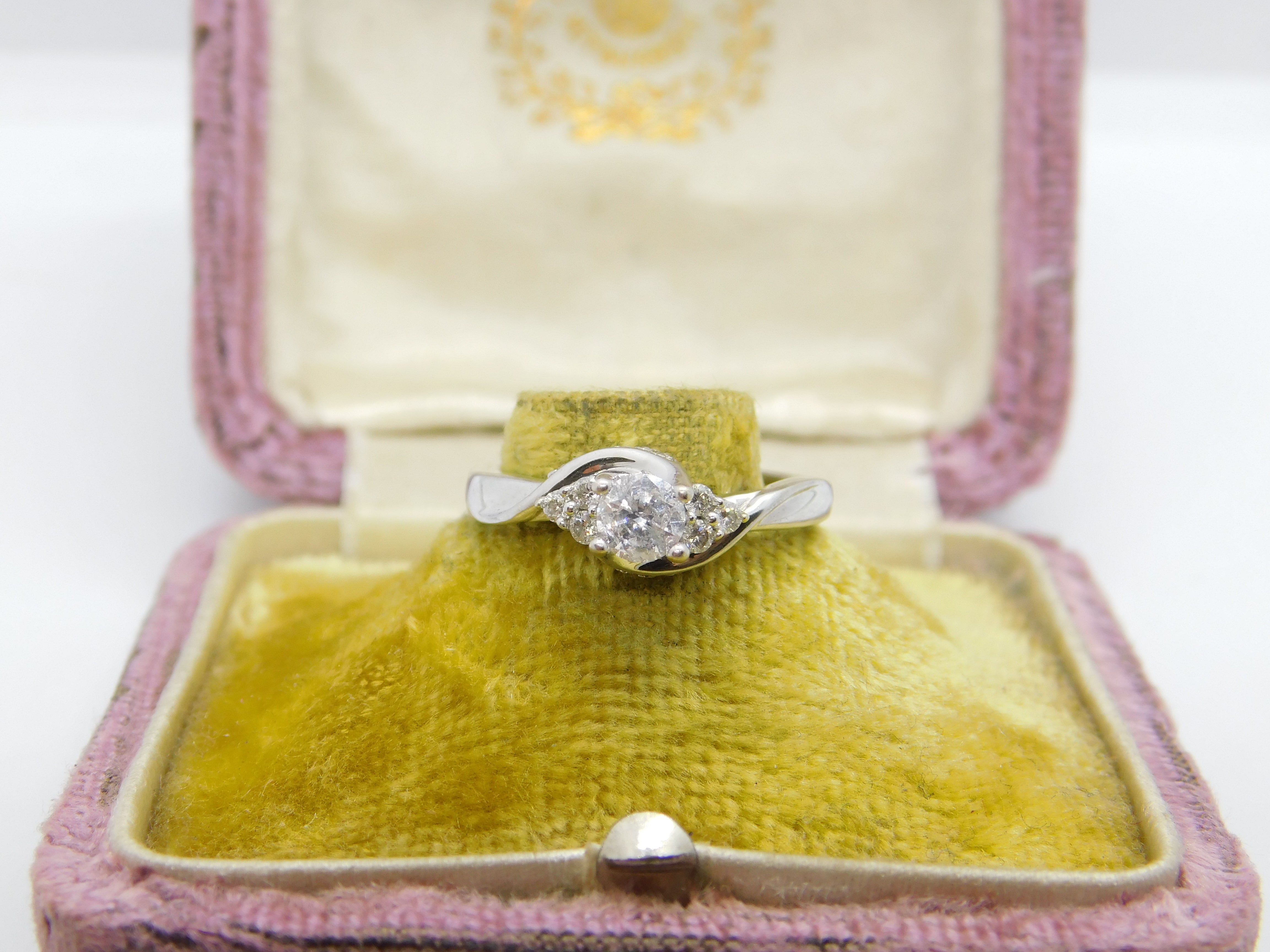 18ct White Gold & 0.4ct Diamond Crossover Ring Vintage c1970 Size K 1/2 UK