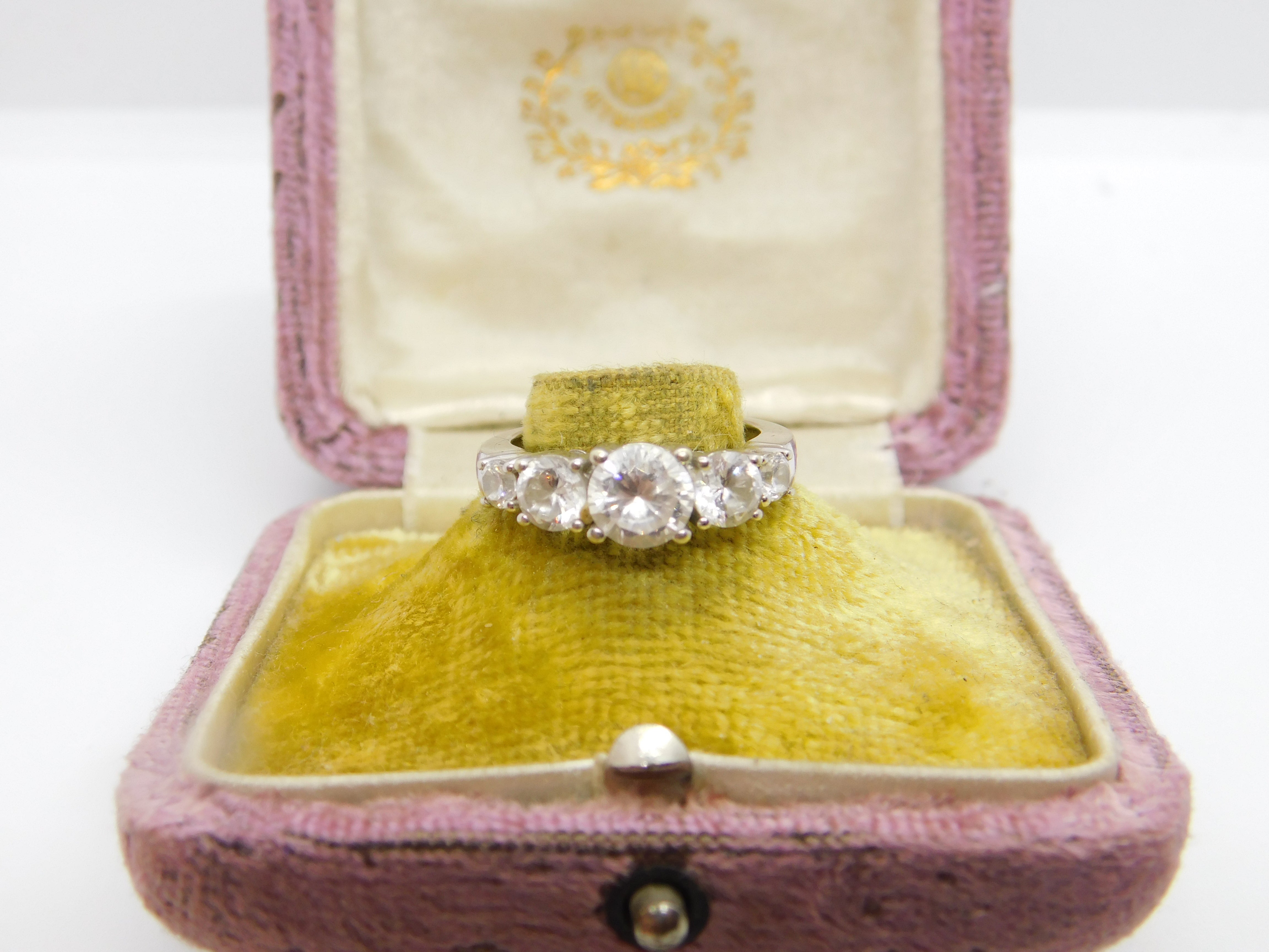 9ct White Gold Paste Set Five-Stone Engagement Ring Vintage c1990 Sheffield