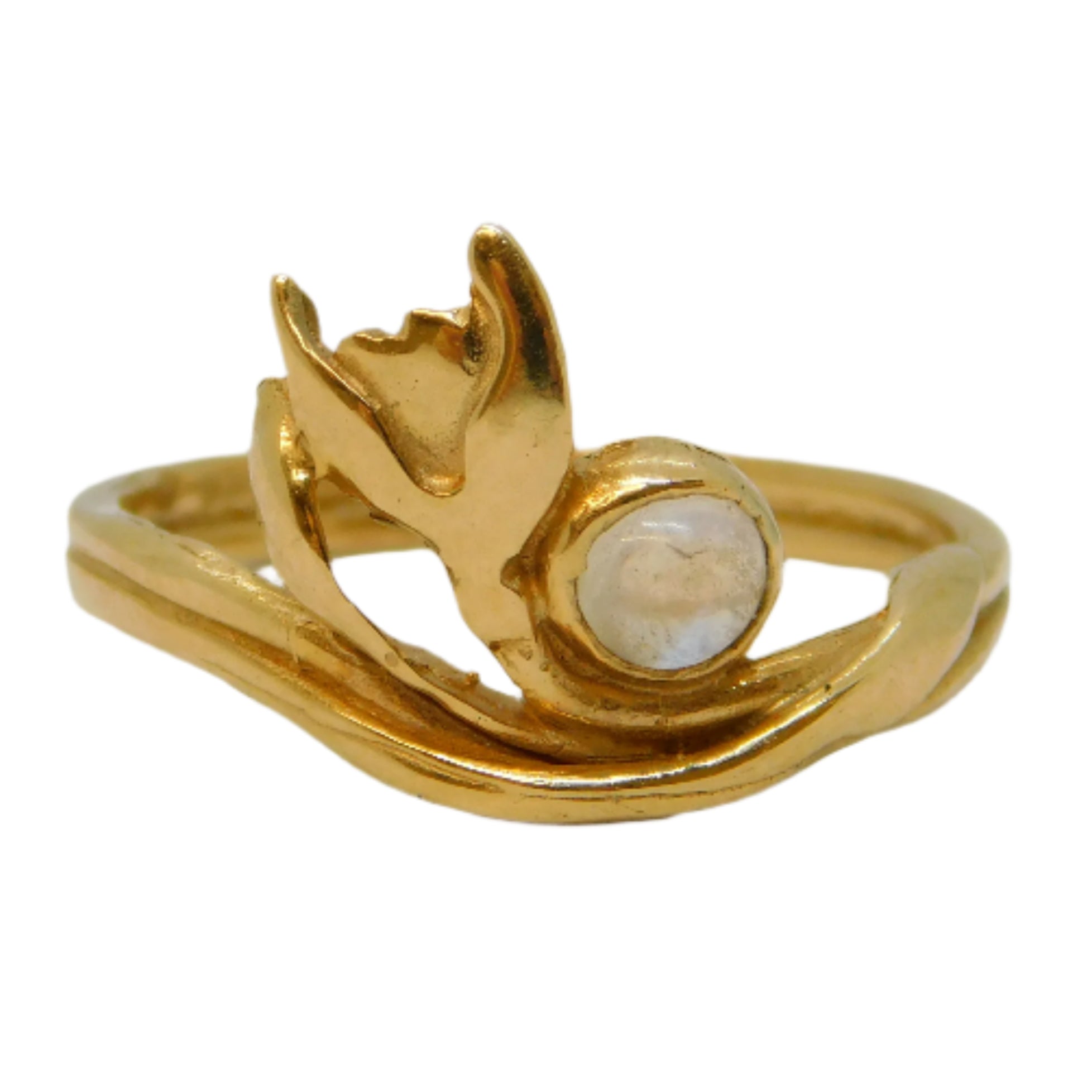 Scottish 9ct Yellow Gold & Moonstone Floral Dress Ring Vintage 1986 Edinburgh