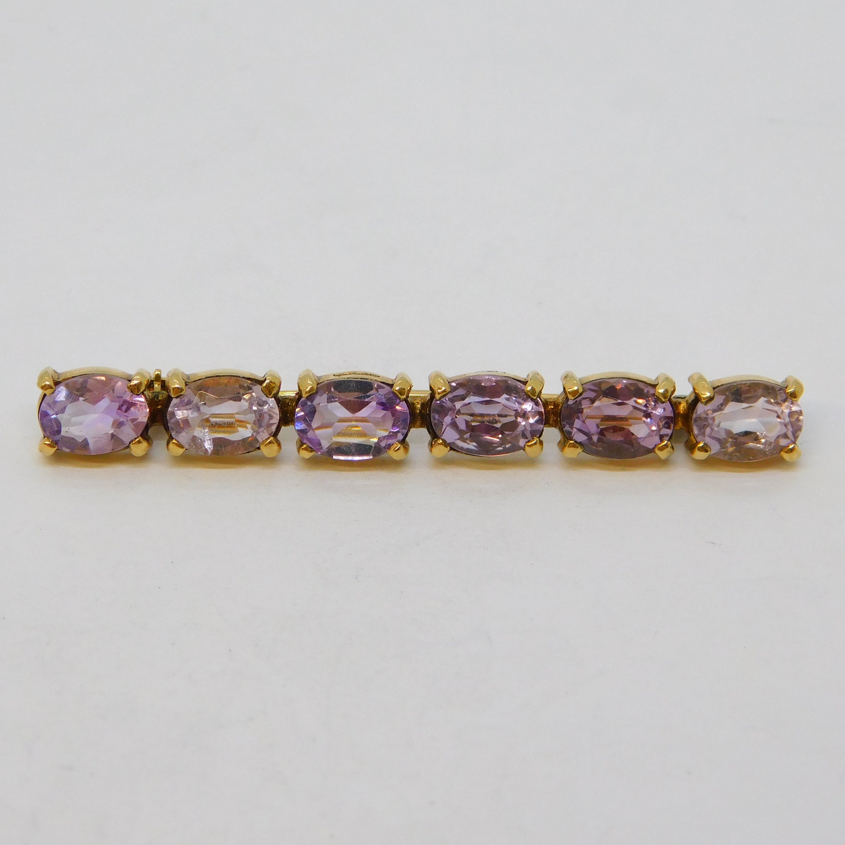 9ct Yellow Gold Six-Stone Amethyst Set Bar Brooch Vintage 1989 Birmingham
