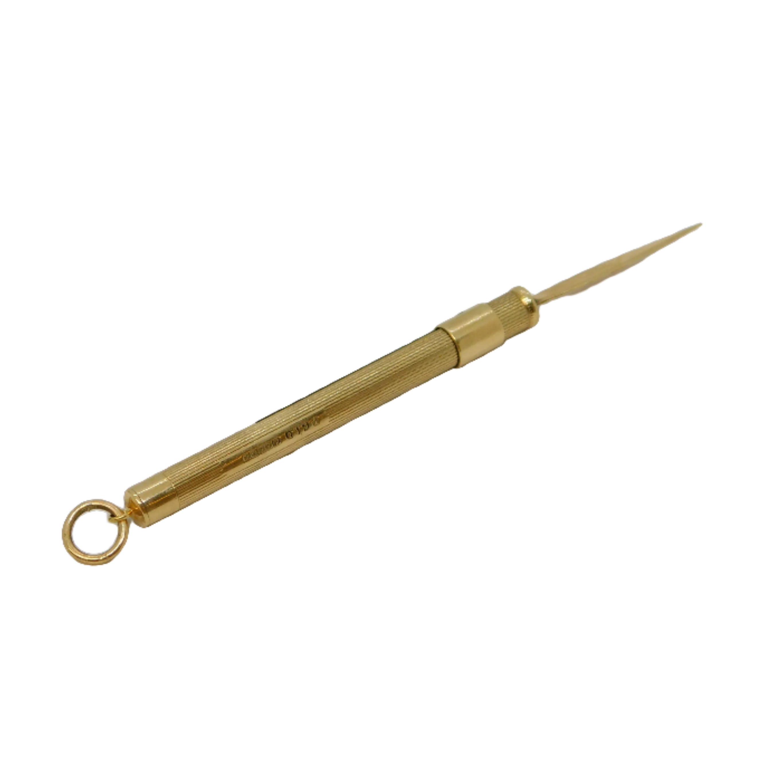 9ct Yellow Gold Engine Turned Propelling Toothpick Vintage 1975 Birmingham