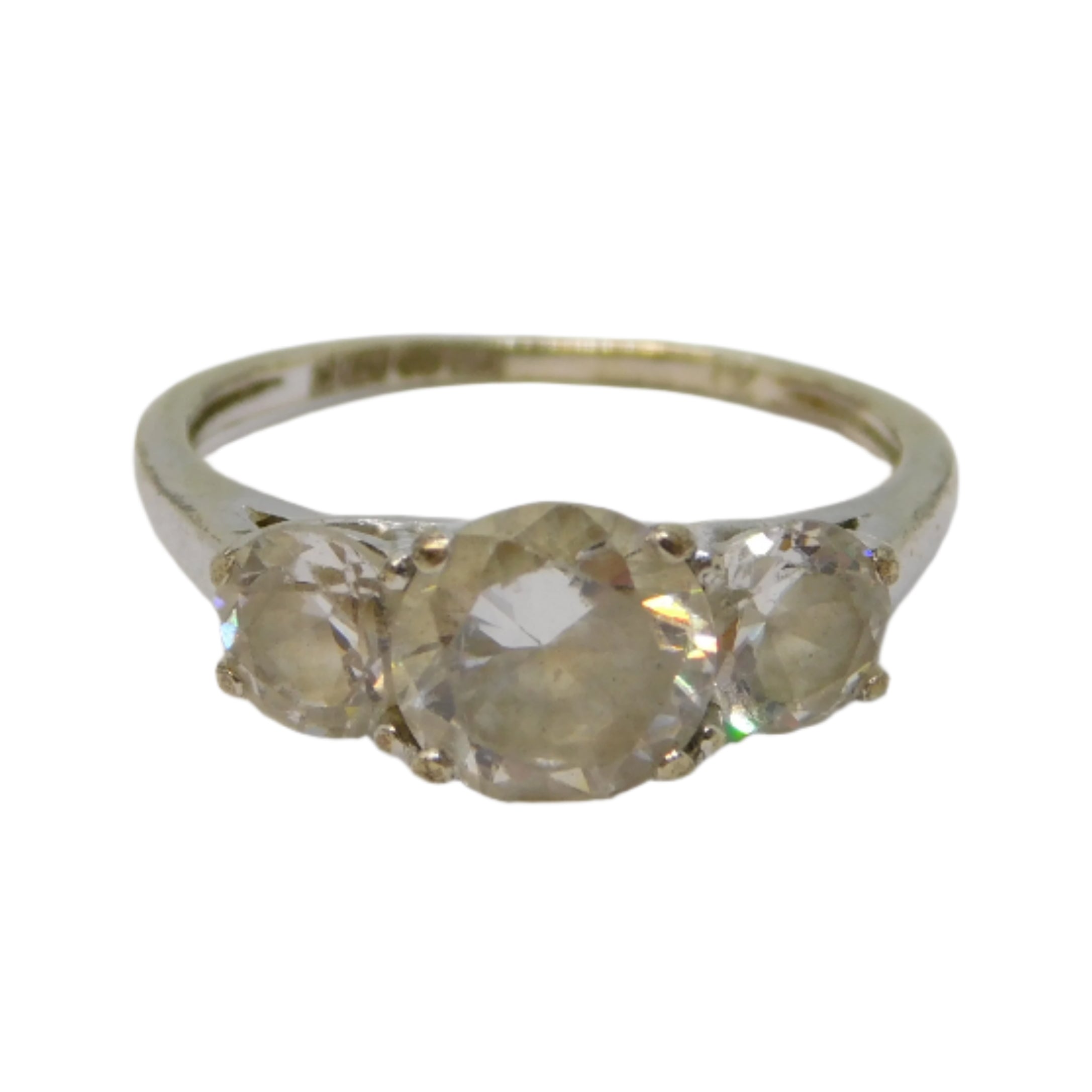 9ct White Gold Three-Stone Spinel Set Dress Ring Vintage c1980 Sheffield