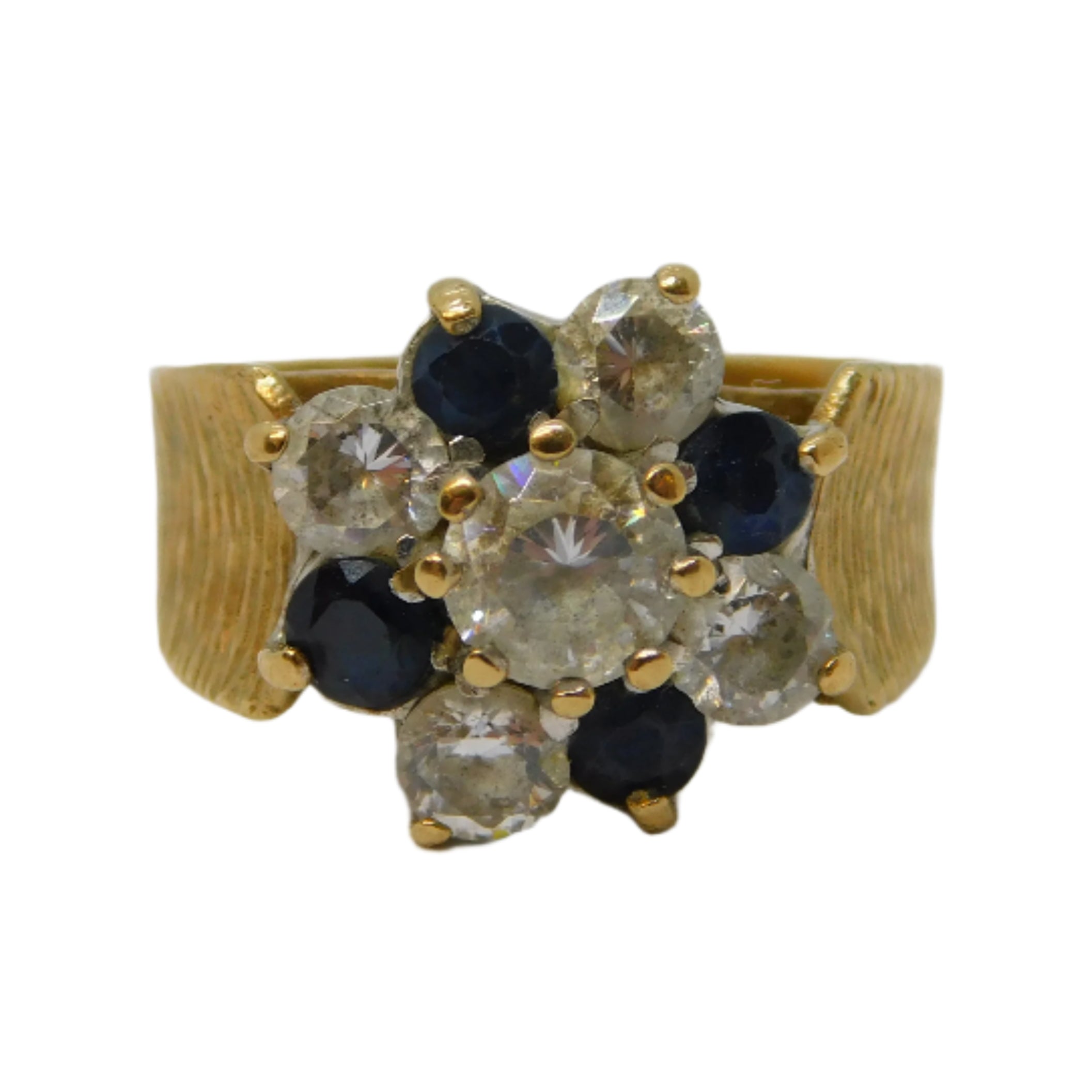 9ct Yellow Gold, Sapphire & Spinel Set Floral Cluster Ring Vintage 1974 London